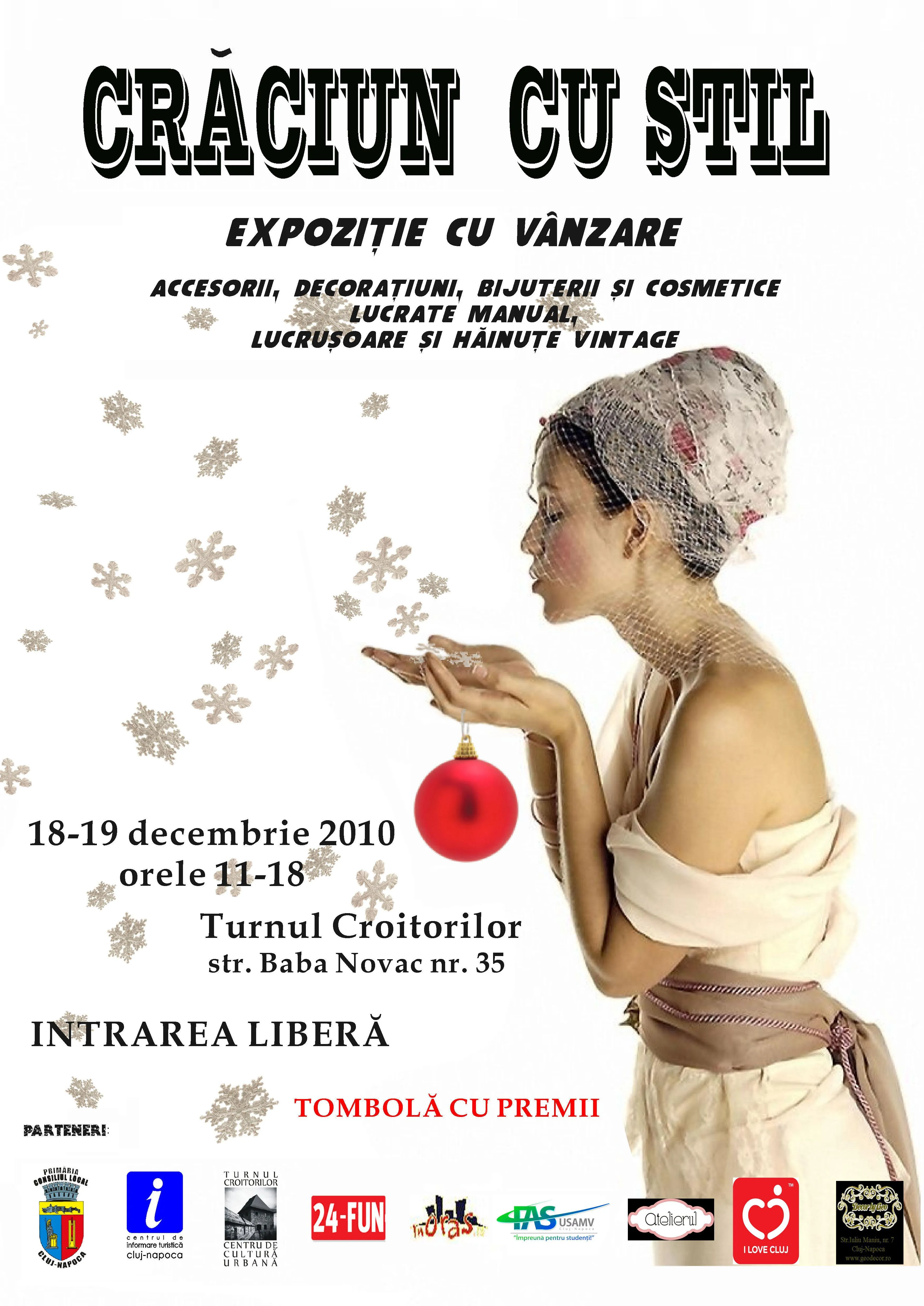 "In zilele de 18 si 19 decembrie, la Turnul Croitorilor, Centru de Cultura Urbana, va avea loc o expozitie inedita de sarbatori, acompaniata de colinde – 'Craciun cu Stil'. Decoratiuni, bijuterii si cosmetice hand made, accesorii si hainute vintage ii aşteapta pe clujenii care doresc sa achizitioneze cadouri pentru cei dragi, mici si mari", precizeaza reprezentantii primariei Cluj Napoca.