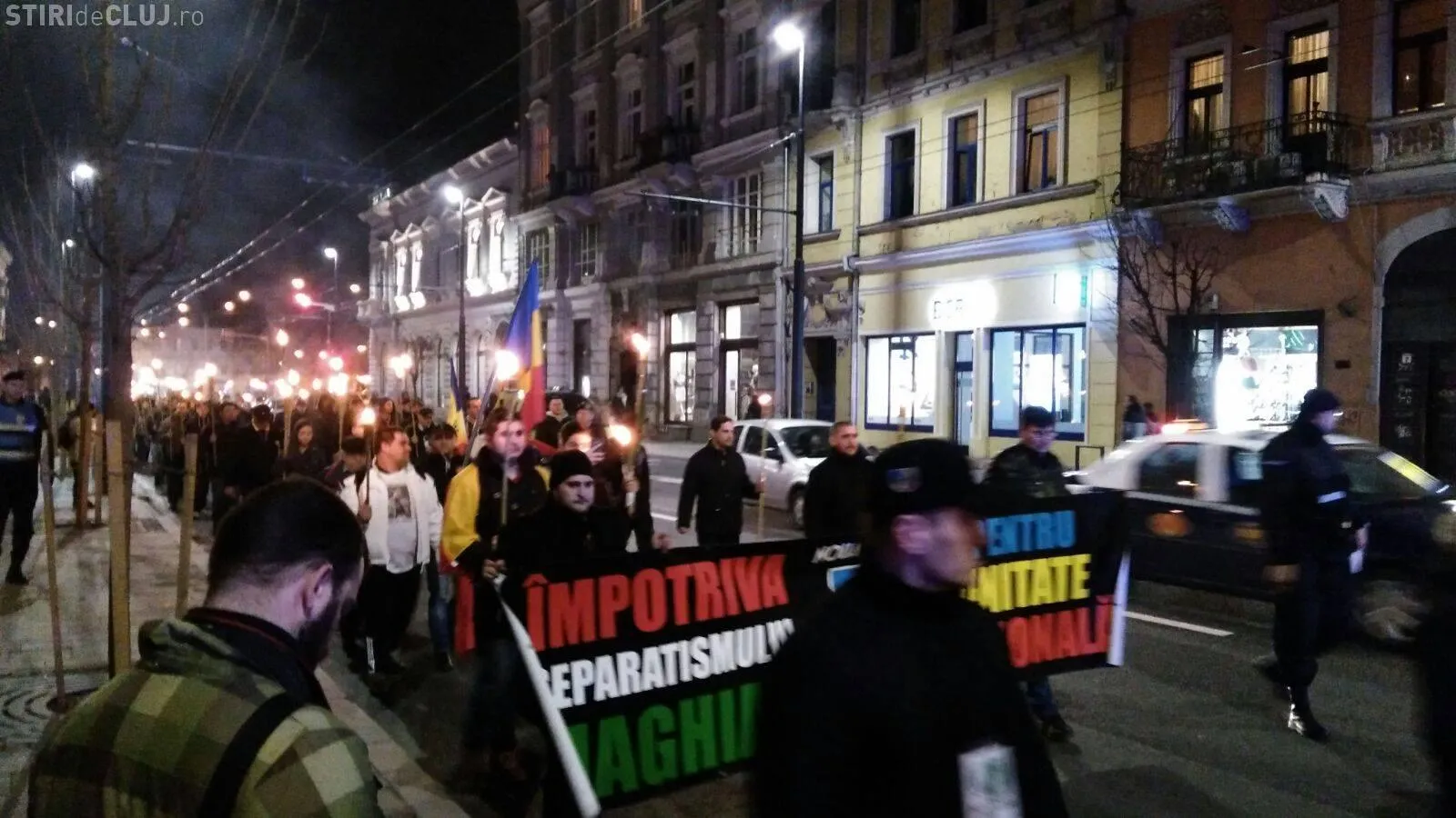Participanții la Marşul Memorial Avram Iancu s-au adunat sâmbătă seara, la ora 19.00, în iaţa Mihai Viteazu din Cluj-Napoca și au scandat ”Trăiască duhul lui Iancu”, ”Trăiască şi înflorească Moldova, Ardealul şi Ţara Românească”, ”Unitate naţională”, ”Harghita, Covasna, pământ românesc”, ”Avram Iancu, erou naţional”.