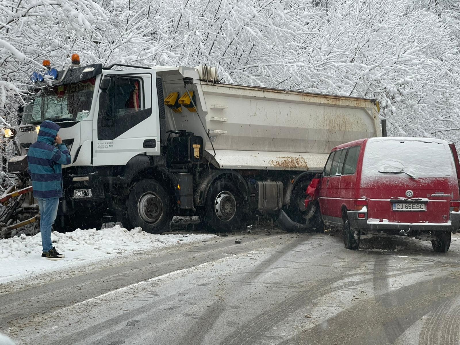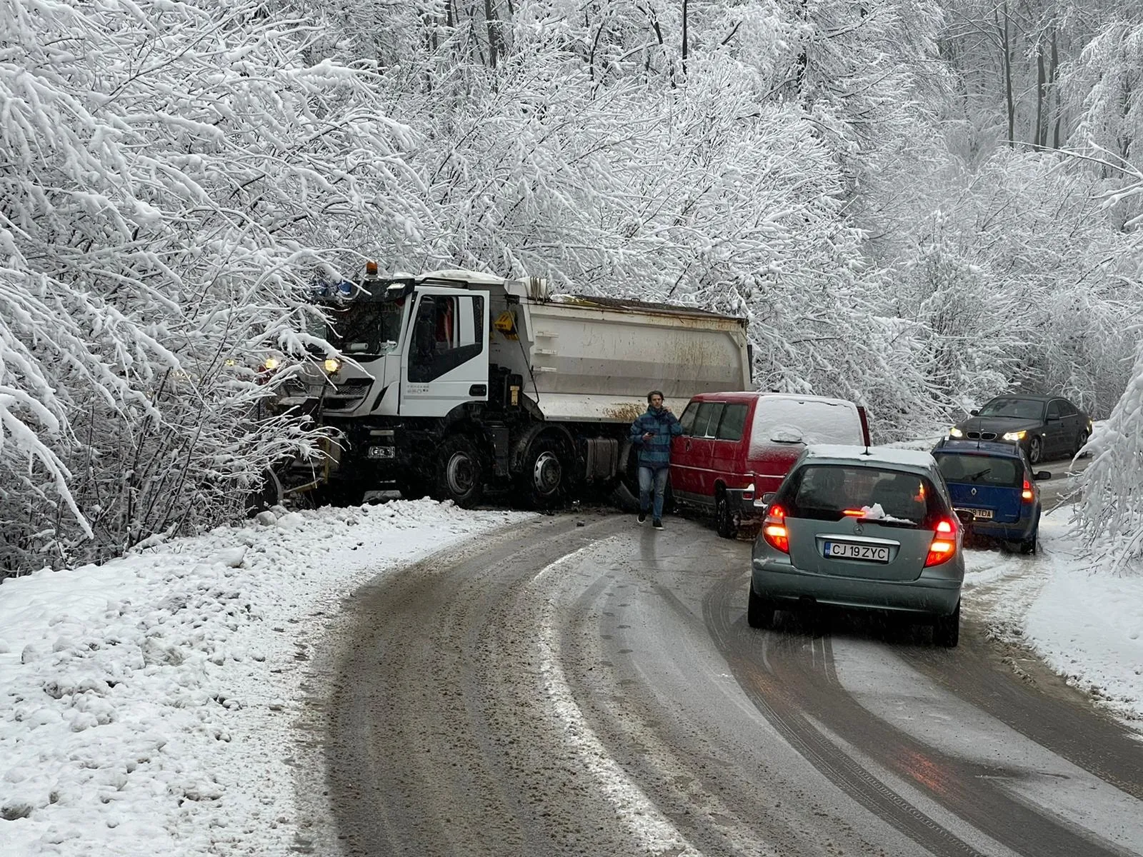 Traficul este blocat spre și dinspre Cluj-Napoca. Se pare că un șofer a lovit mașina de deszăpeziri.