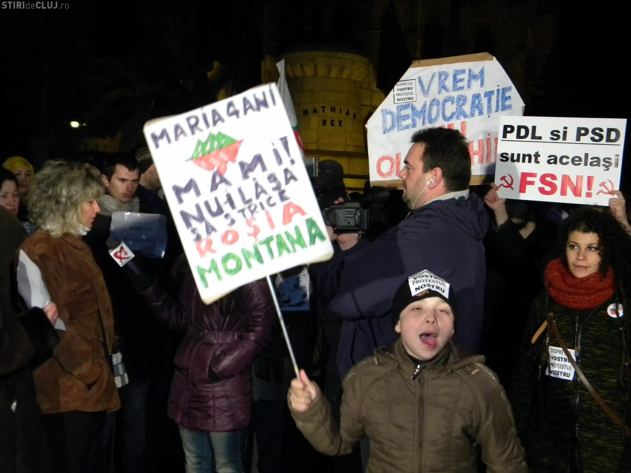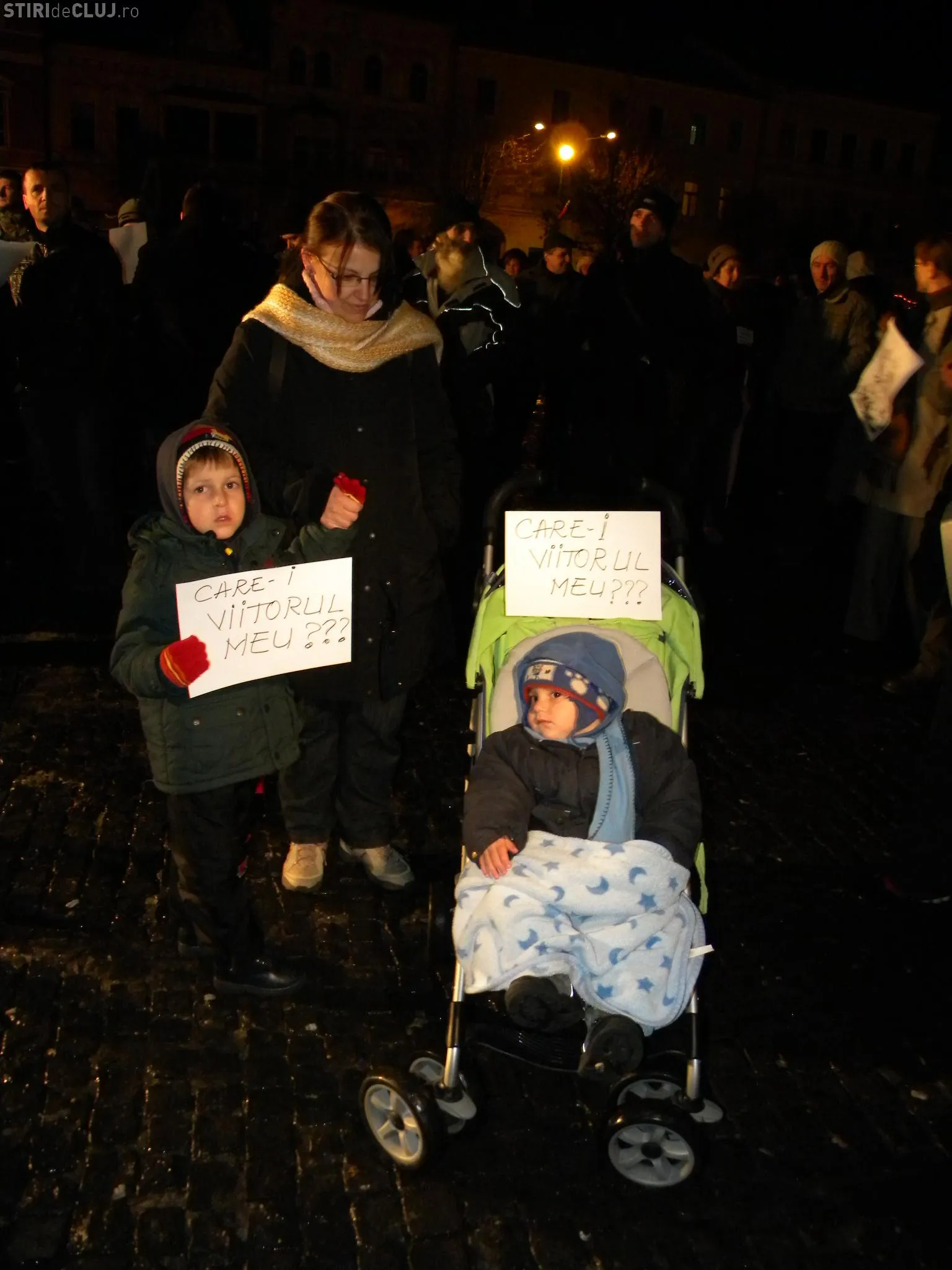 Familia Mare a iesit la protestul din Piata Unirii in formatie completa, aducandu-si si cei doi copii care tineau in maini pancarte pe care scria: "Care-i viitorul meu???".