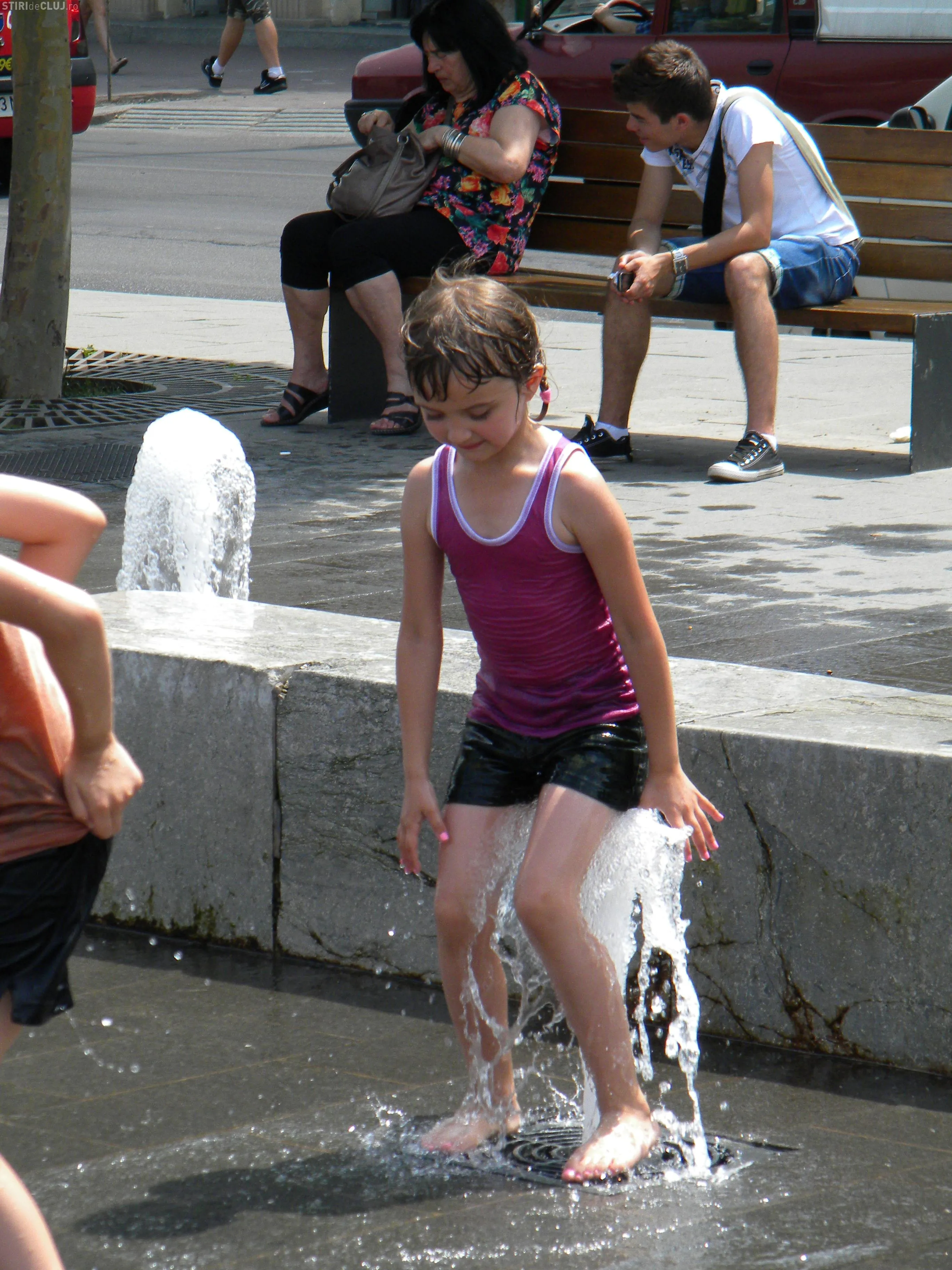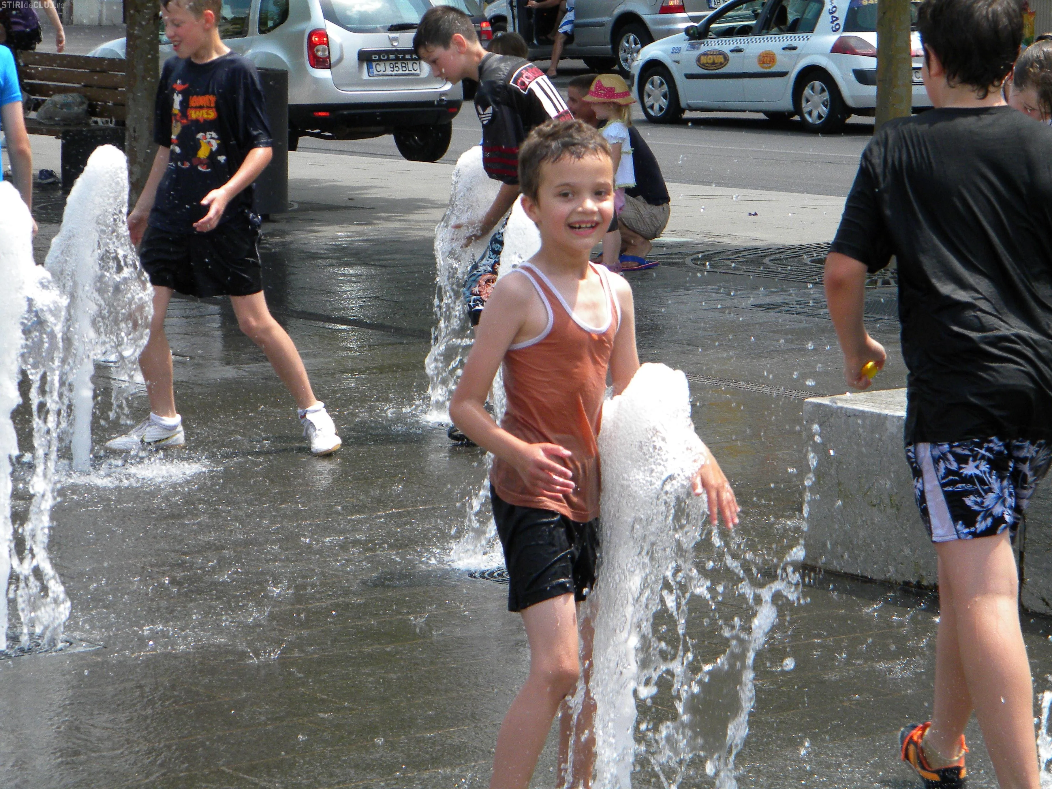 Căldura toridă i-a făcut pe părinți să cedeze presiunilor celor mici, care s-au putut juca în voie cu apa de la fântână.