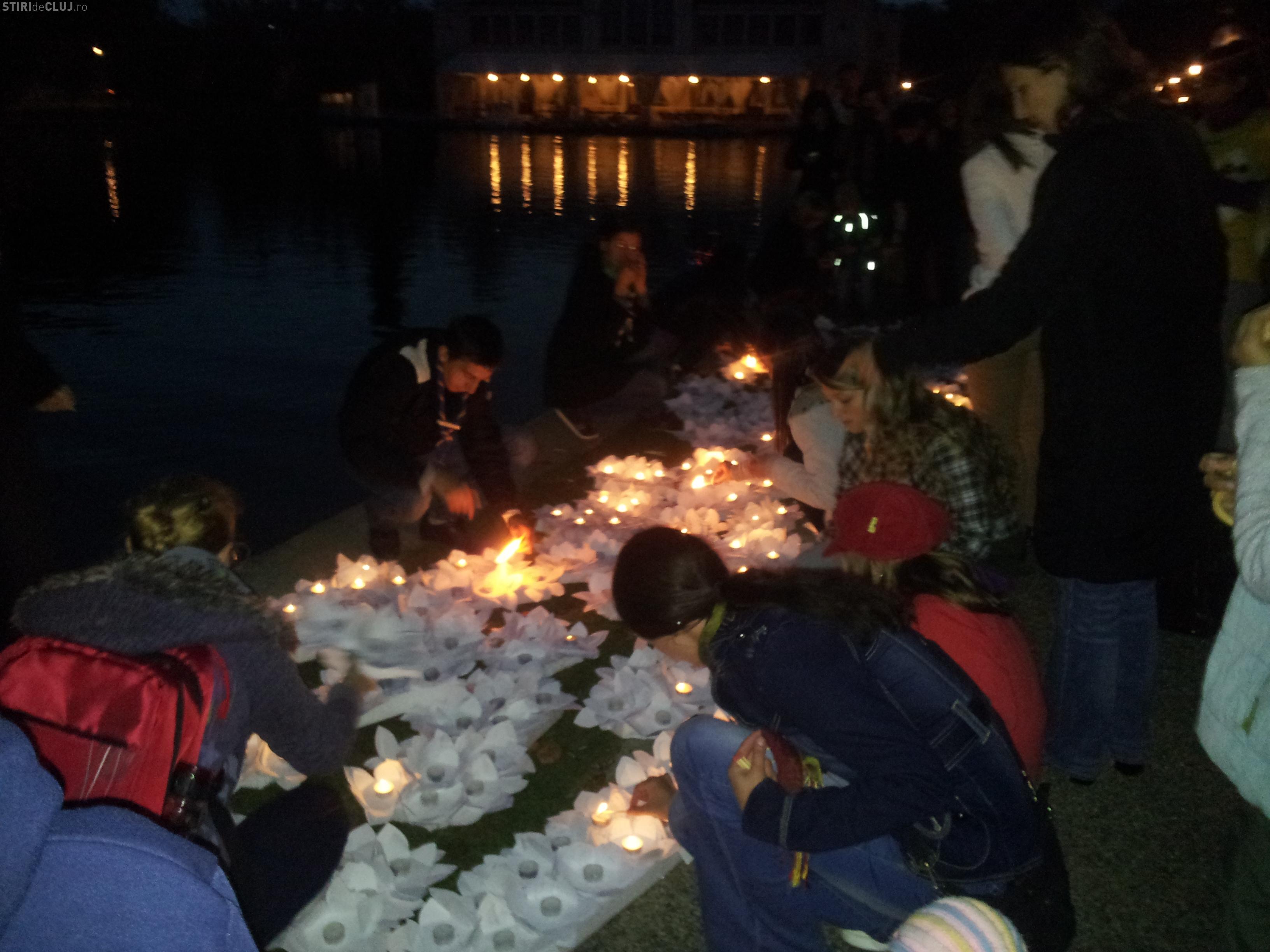 Sute de lampioane au fost lansate la apă pe Lacul Chios de clujeni, împreună cu organizatorii acțiunii TiMAF Cluj și Scout Cluj.