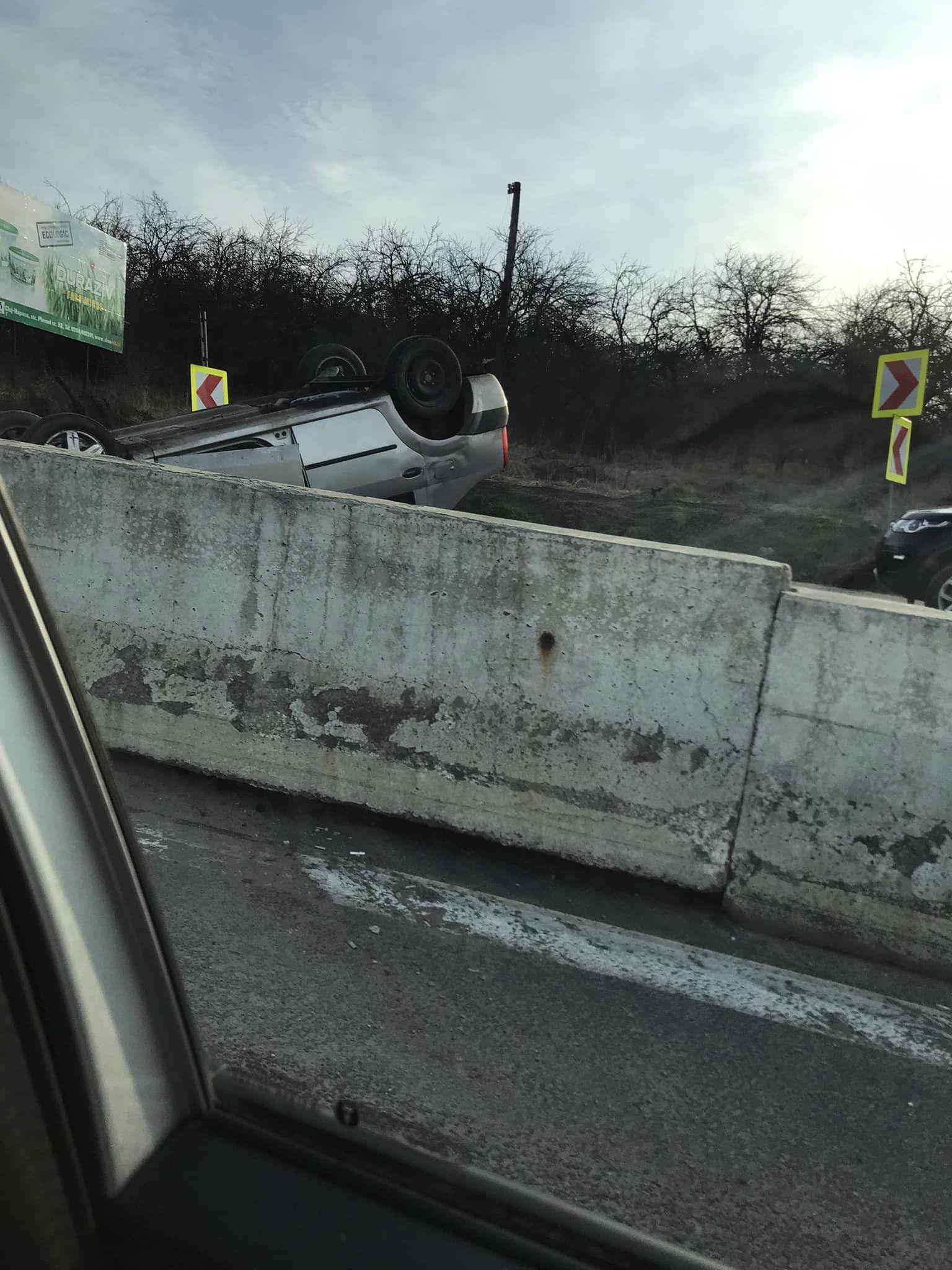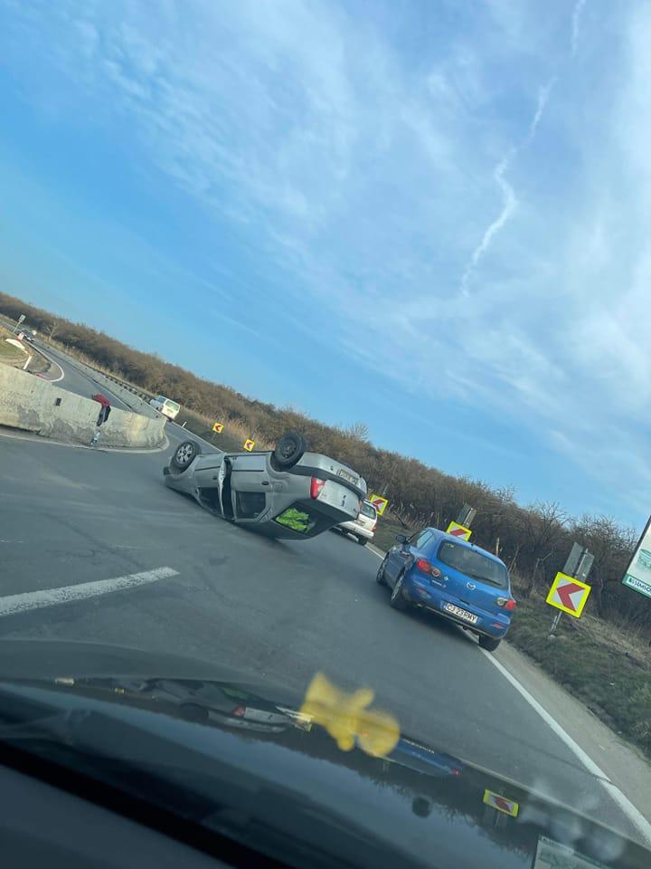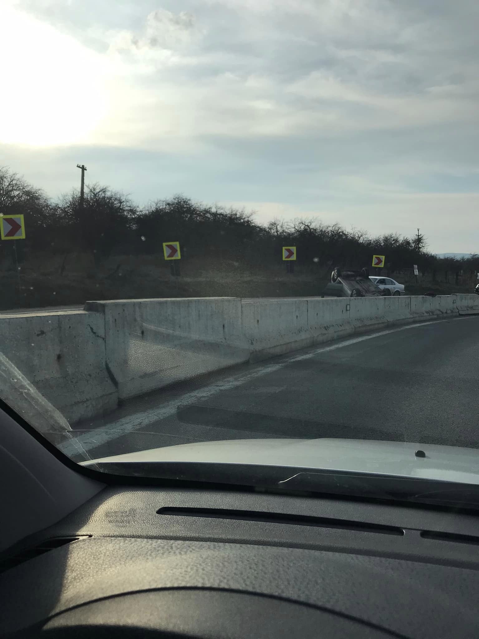 Un nou accident s-a produs pe Calea Turzii. O mașina s-a răsturnat, după ce a lovit parapetul de pe marginea drumului.