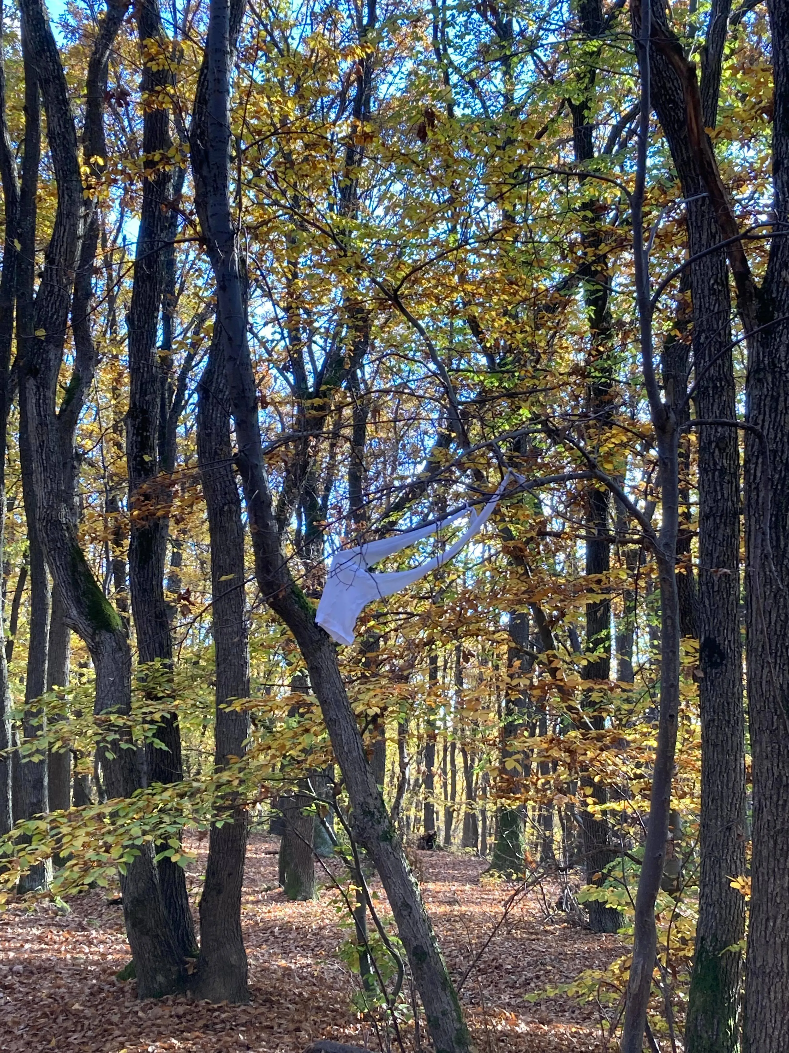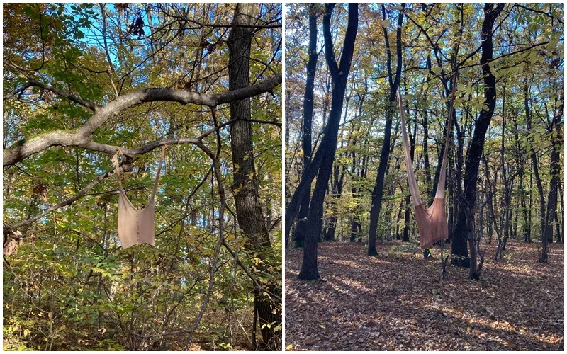 Crengile copacilor din Pădurea Făget au fost ”ornate” cu ciorapi de damă uzați, iar mulți oameni își pun întrebări ce caută acolo.
