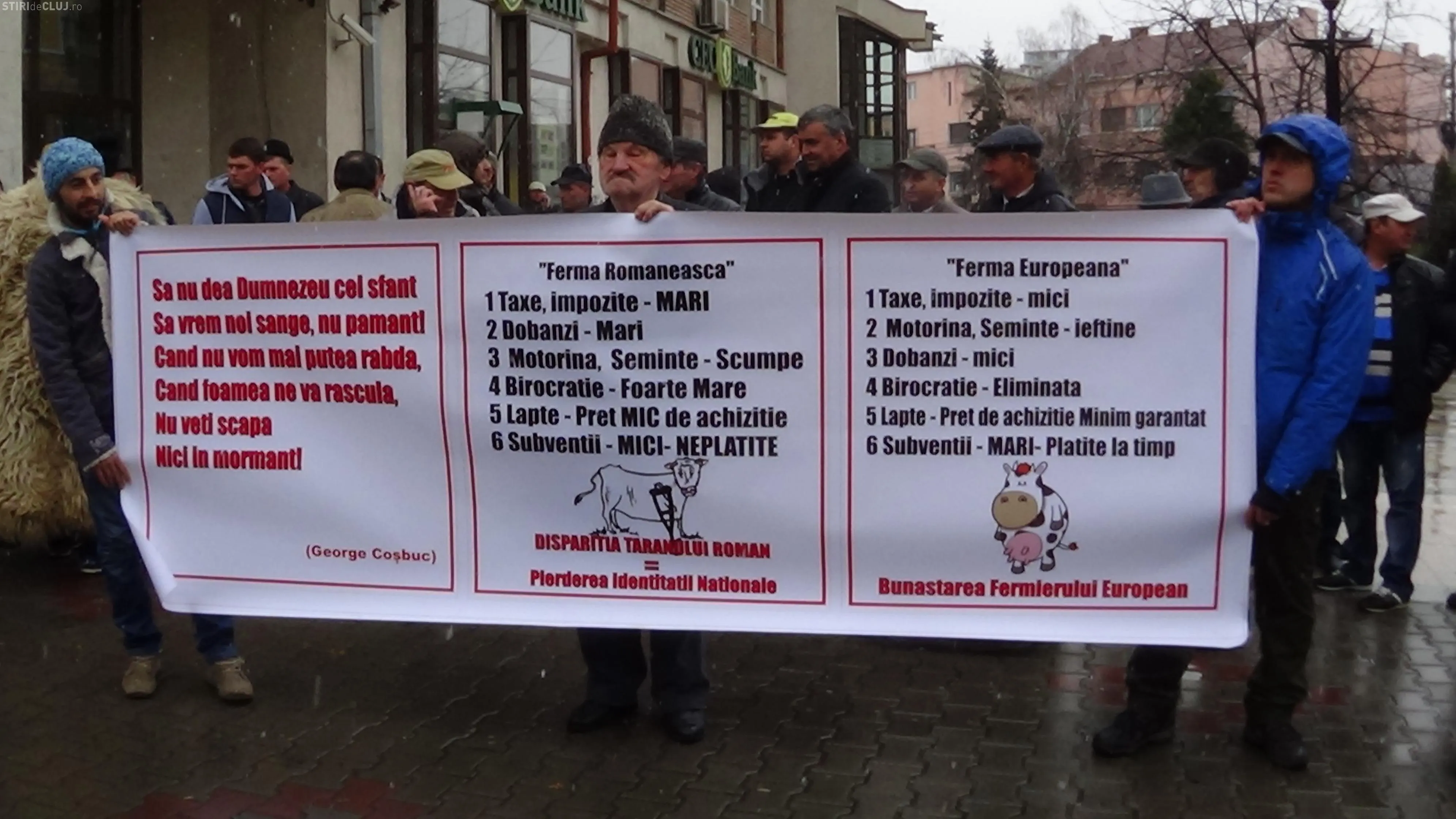Aproximativ 100 de fermieri clujeni s-au adunat, joi, în fața sediului Prefecturii pentru a protesta împotriva nedreptăților la care sunt supuși.