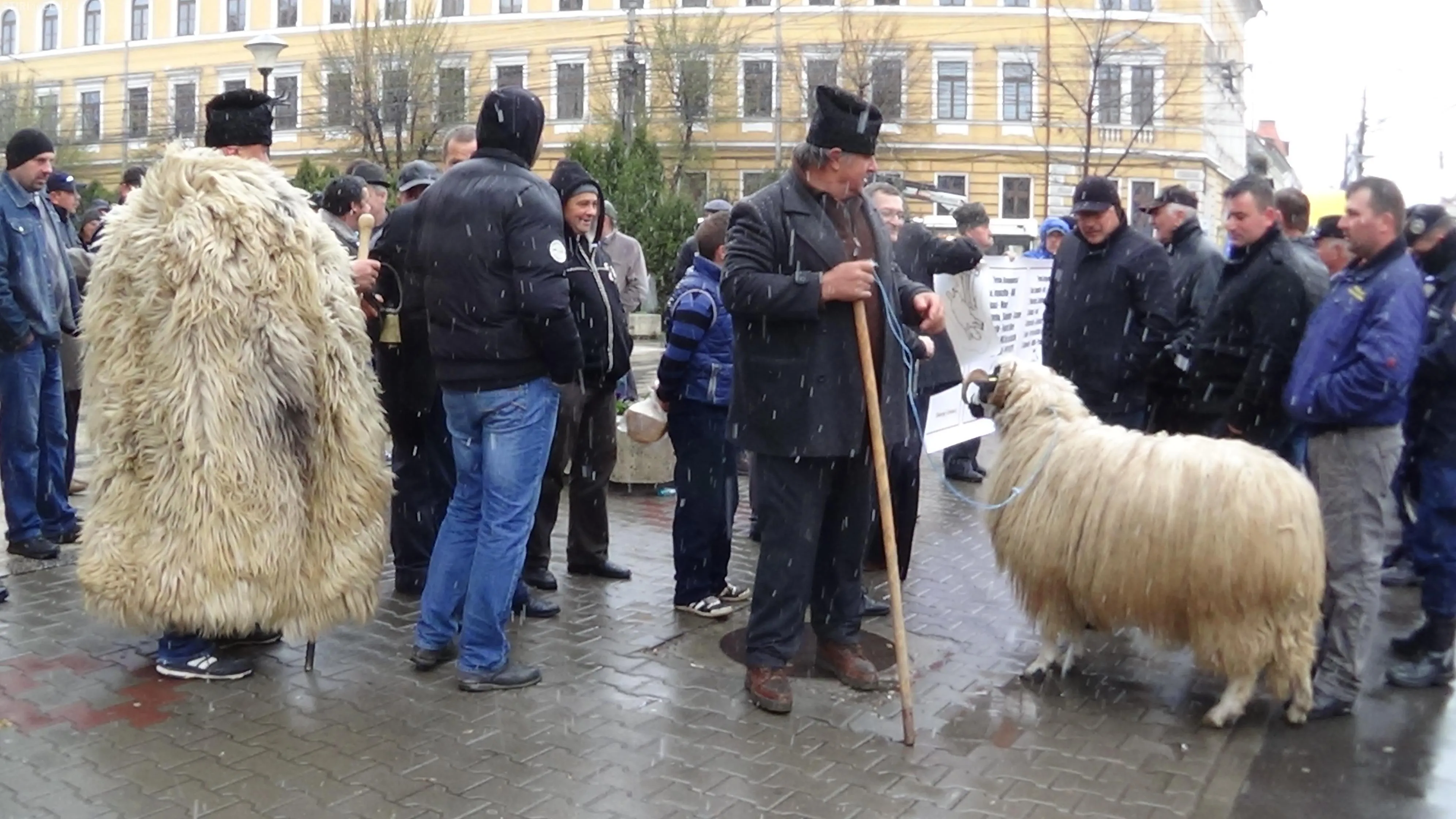 ”Nu a vrut să mă lase să vin singur. A venit să își ceară drepturile. Am avut 38 lei (n.red. subvenție pe cap de oaie) și acum avem 28 lei. Ne-au tăiat din bani. Eu acum am vrut să-l ascund pe berbec în pereți, ca ăla cu tablourile, dar n-a avut loc”, a spus Miluță Irimeș, stăpânul berbecului.