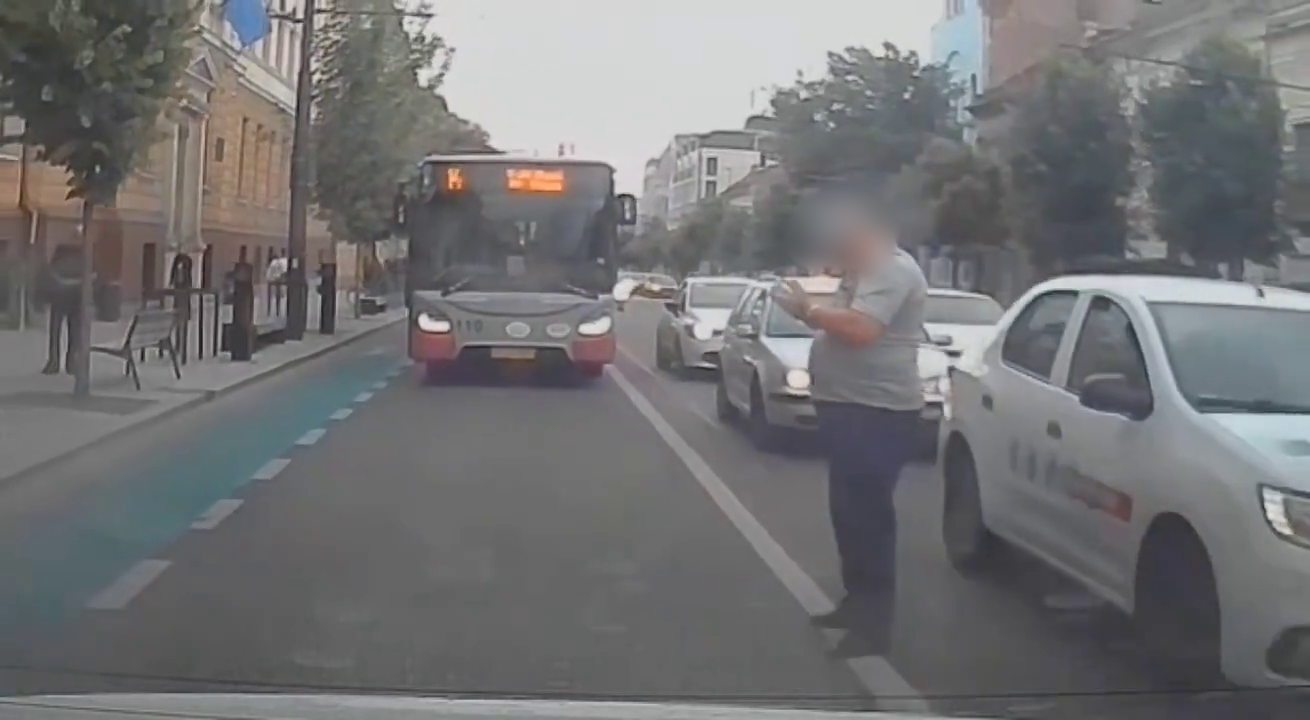 Taximetristul care l-a dat cu spray pe șoferul de la CTP, după un incident pe banda dedicată pentru mijloacele de transport de pe Bulevardul 21 Decembrie 1989, a filmat tot incidentul.