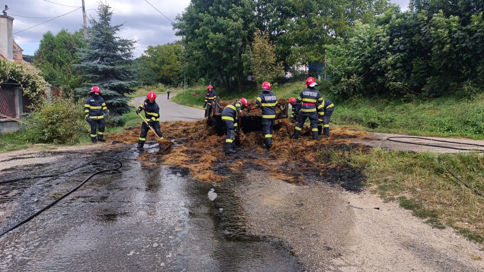 Flăcările au mistuit aproximativ 500 de kilograme de fân într-o comună din Cluj. Incendiul a pornit de la o remorcă