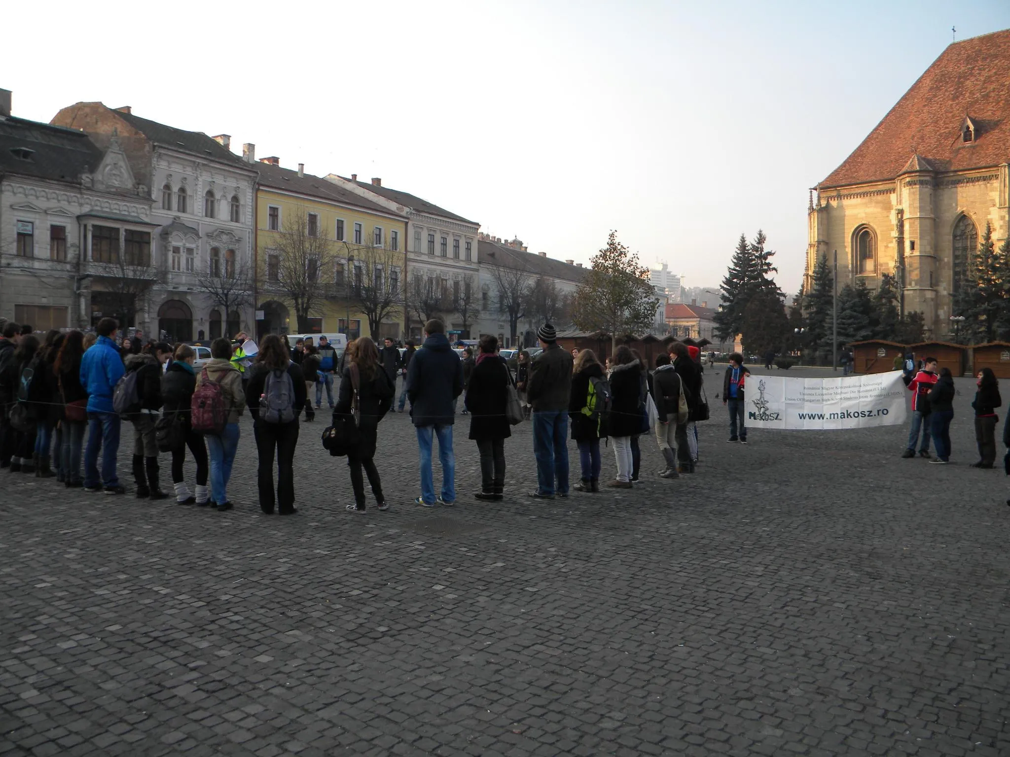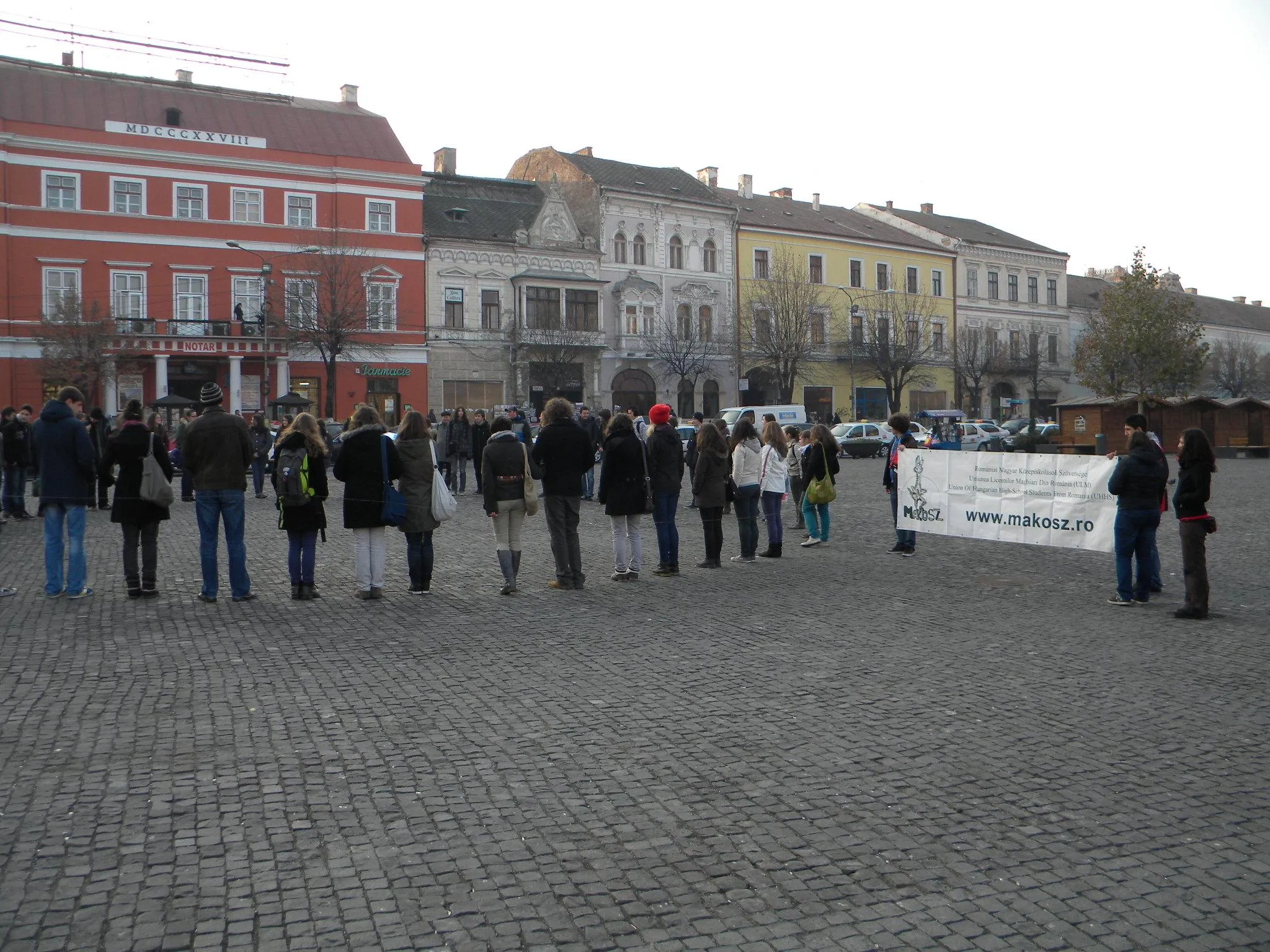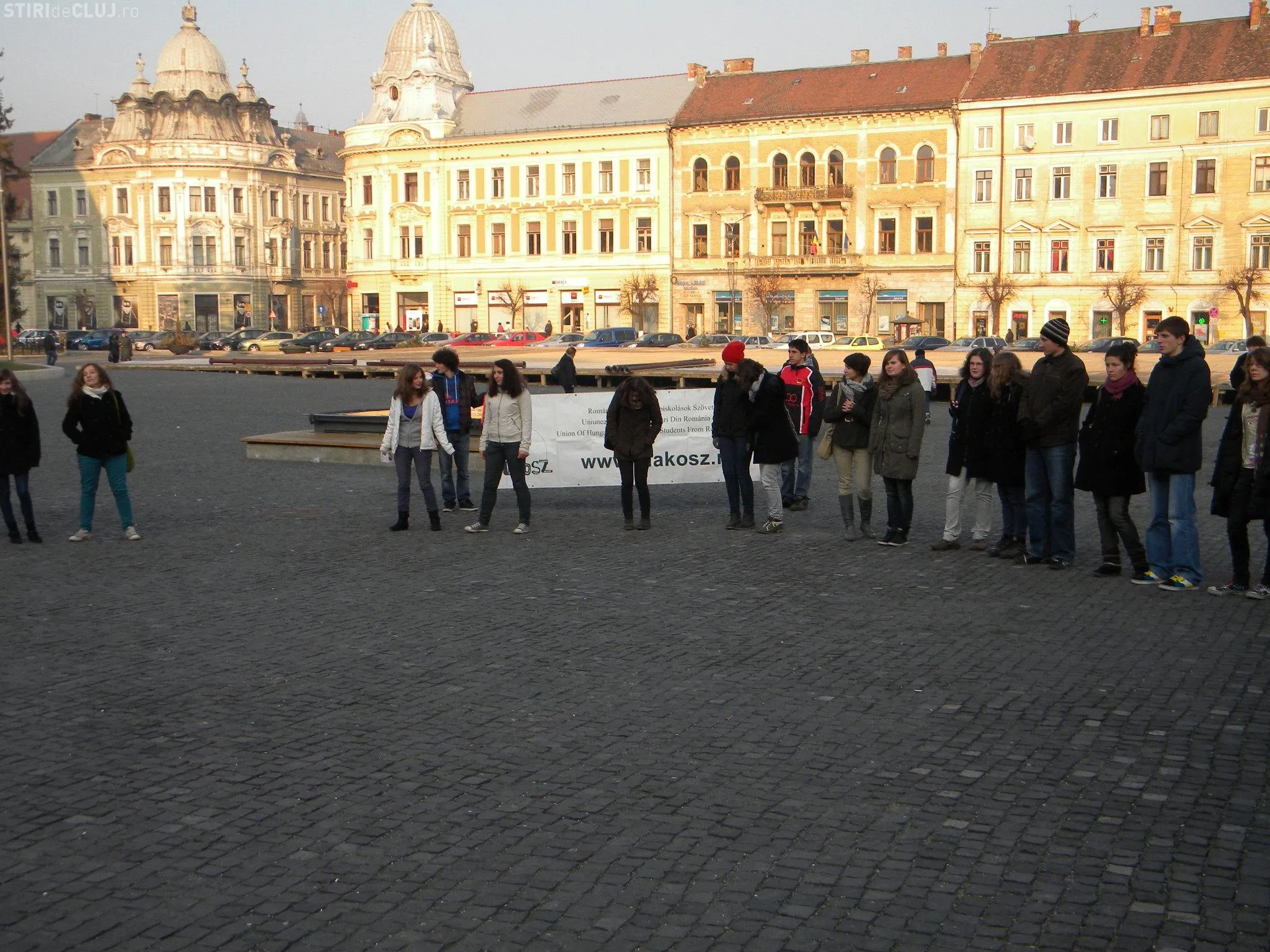 Flash mob al elevilor maghiari impotriva ministrului Funeriu, in Piata Unirii