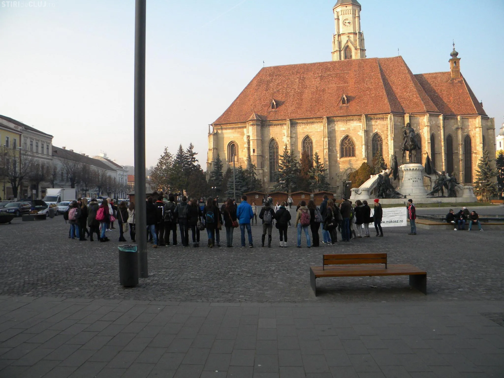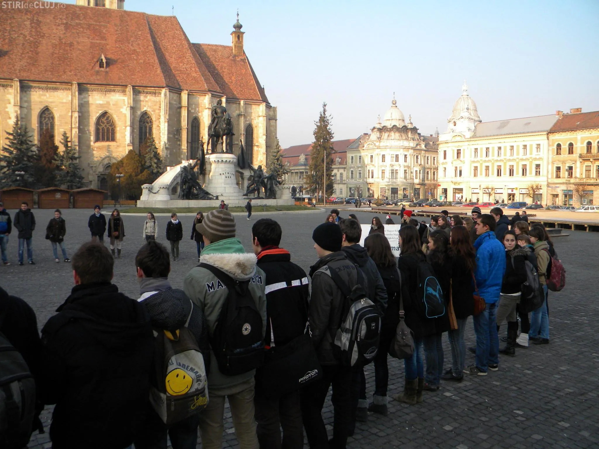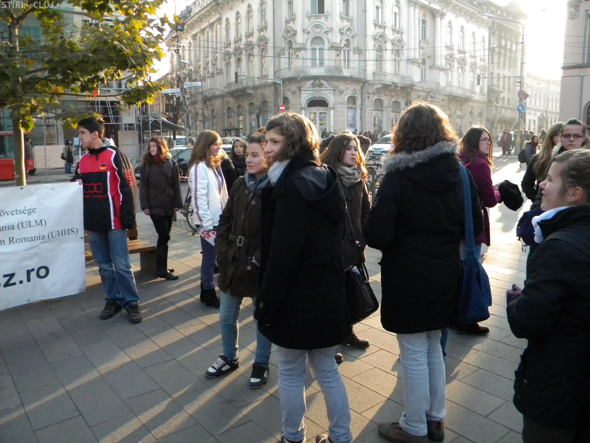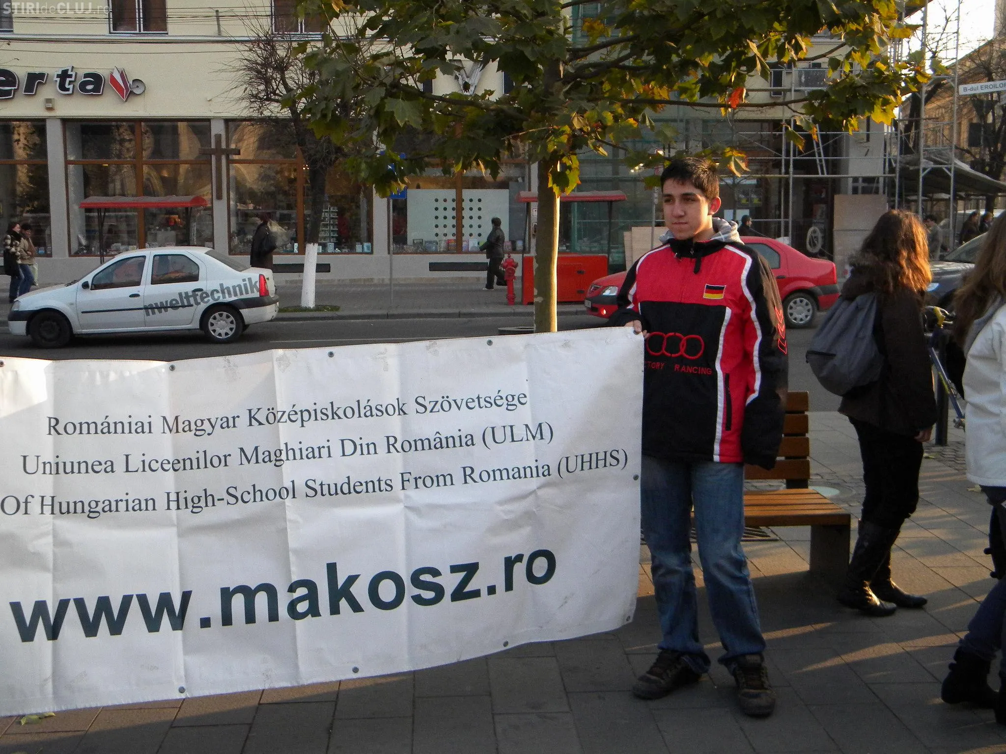 Consiliul elevilor maghiari din Cluj-Napoca au protestat joi, 17 noiembrie, in Piata Unirii, impotriva ministrului Educatiei, Daniel Funeriu, caruia ii cer sa descentralizeze sistemul educatiei si sa nu le ingradeasca drepturile.