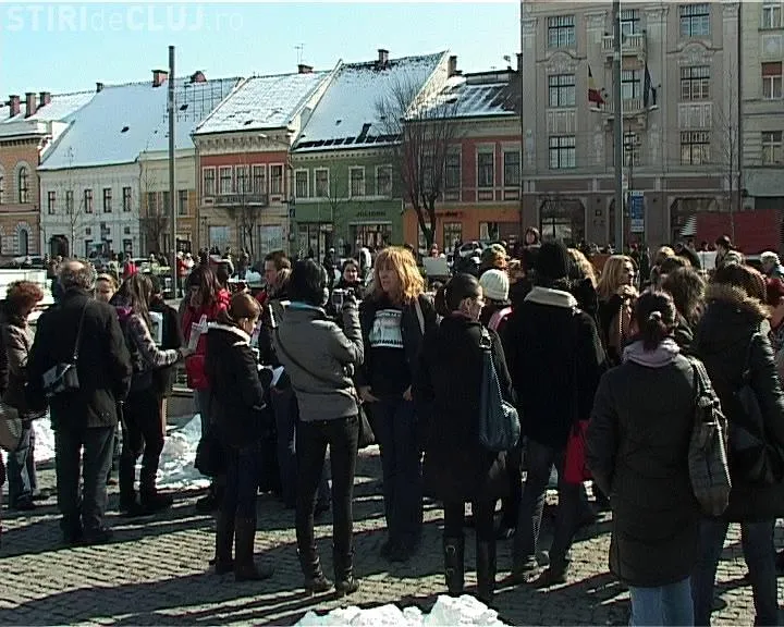 Zeci de clujeni au participat, marti, 1 martie, de la ora 12.00, la un protest organizat de Federatia Nationala pentru Protectia Animalelor (FNPA) organizat in Piata Unirii.