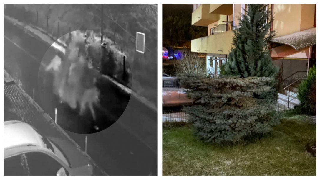 Doi tineri au fost filmați de camerele de supraveghere în timp ce fugeau cu un brad tăiat din fața unui bloc de pe Valea Gârbăului.