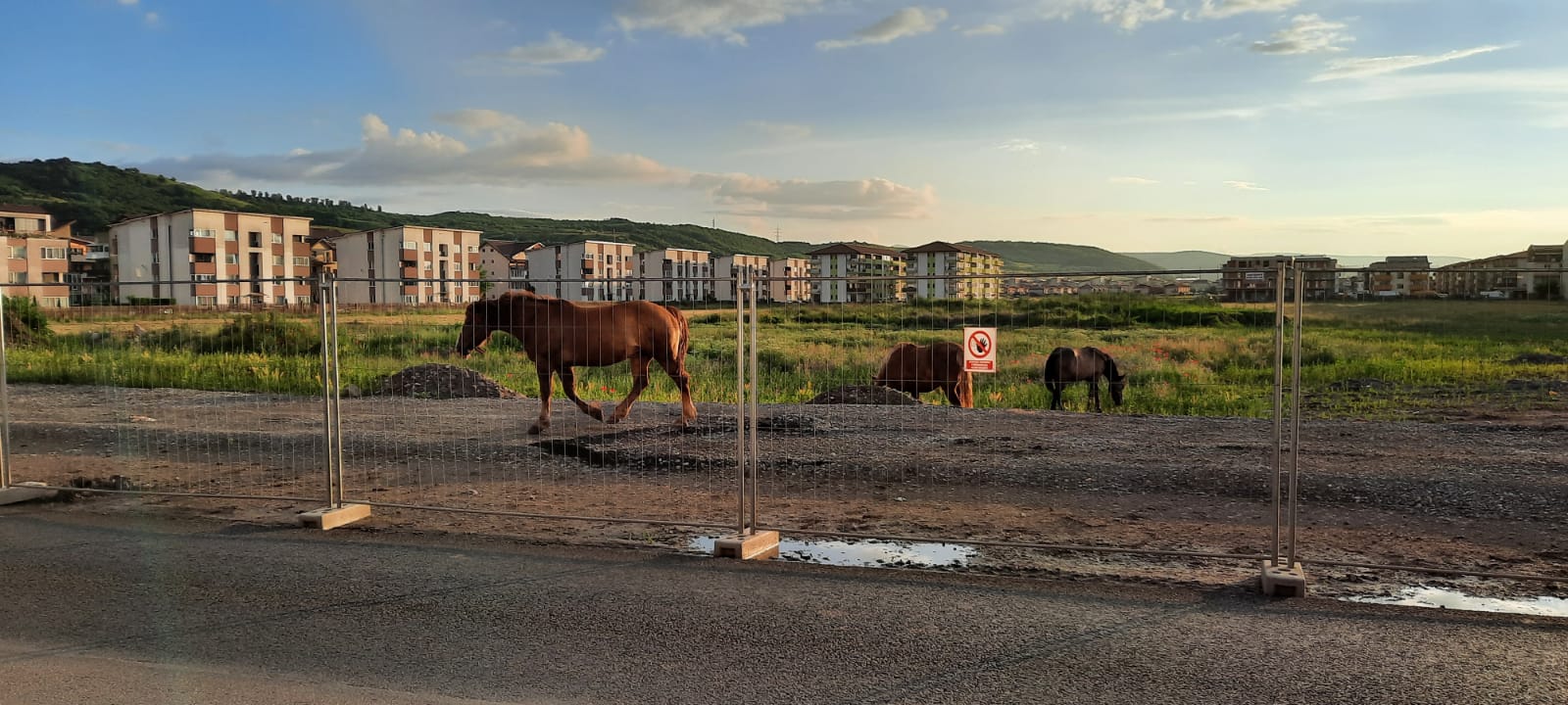 Sâmbătă seara, 3 cai „frumoși” pășteau liniștiți pe spațiul verde de lângă strada Eroilor, nesupravegheați! Animalele au fost văzute încercând să ajungă pe stradă, lovindu-se de nenumărate ori de gard.