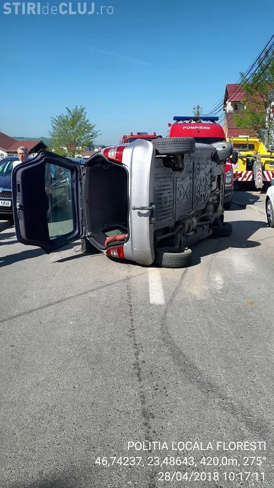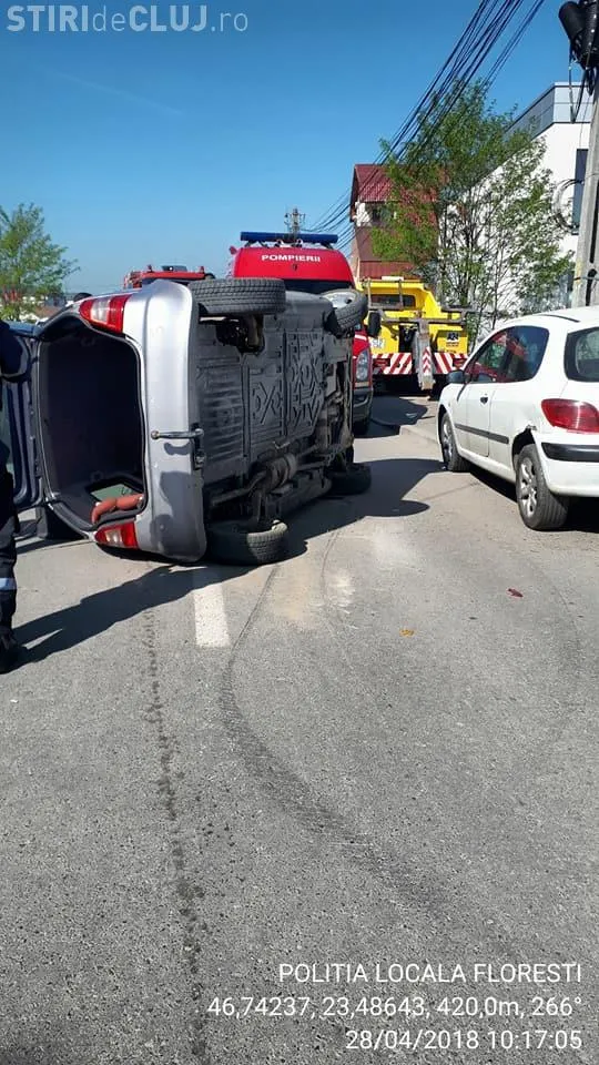 Un autoturism s-a răsturnat pe strada Ioan Rusu.