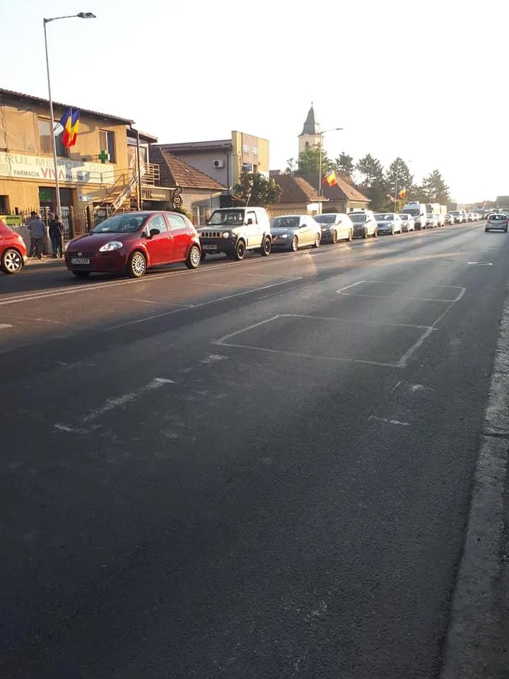 Coloana de mașini se întindea pe kilometri. Fotografia a fost realizată înainte de sensul giratoriu de la Primăria Florești, spre Gilău.