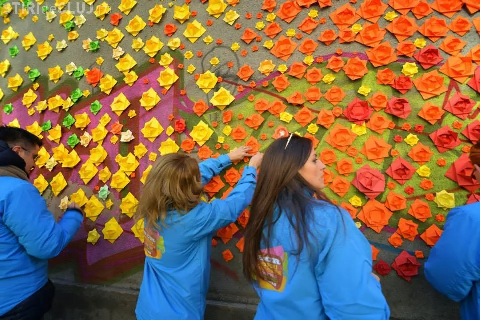 Florile de hârtie au fost lipite de volutari pe trei ziduri din Cluj-Napoca. ”Zidurile sunt elemente ce simbolizează separare, izolare, segregare. Am urmărit să "rupem" în mod simbolic barierele de comunicare și intelegere. Am conlucrat cu comunitatea clujeană în crearea manifestelor. Prin activarea celor trei ziduri, dar și prin evenimentele conexe ce se desfășoară astăzi la Casa Tiff, sperăm să creăm un cadru de dialog "online și offline" cu tematica europeană promovată de mișcarea internațională "No Hate Speech", au adăugat orgaizatorii.