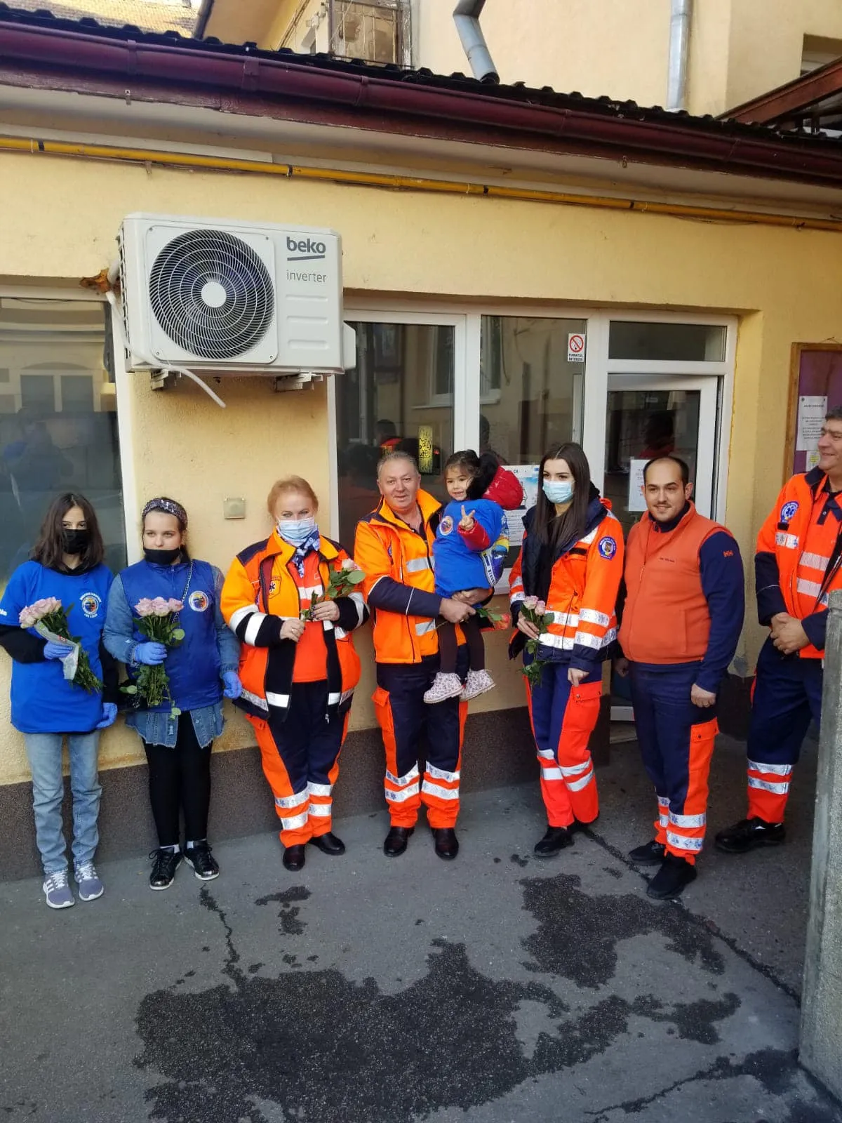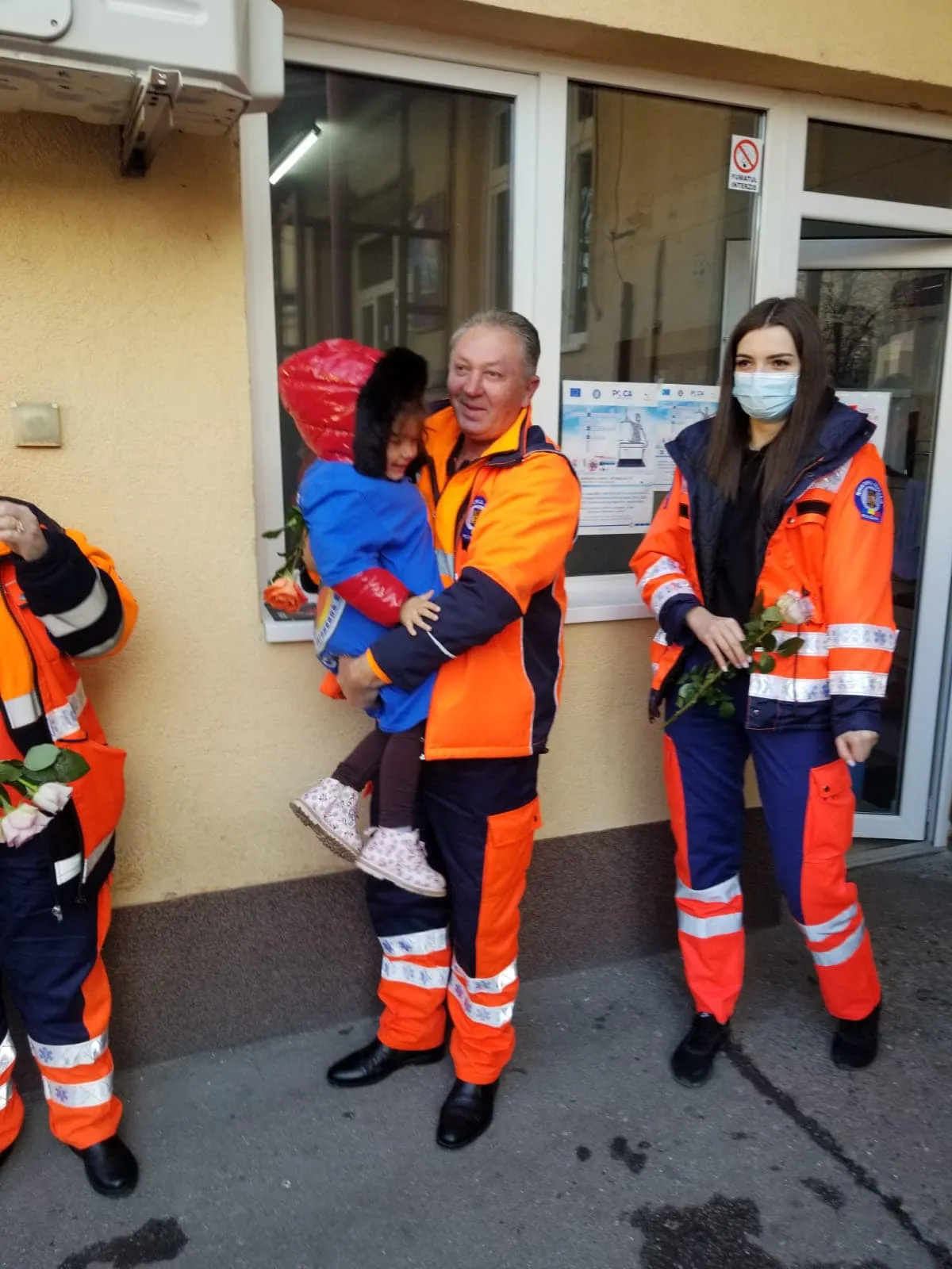 Cadrele medicale i-au primit cu bucurie pe cei care le-au dus flori, voluntarii Grupului Diaspora Europeană.