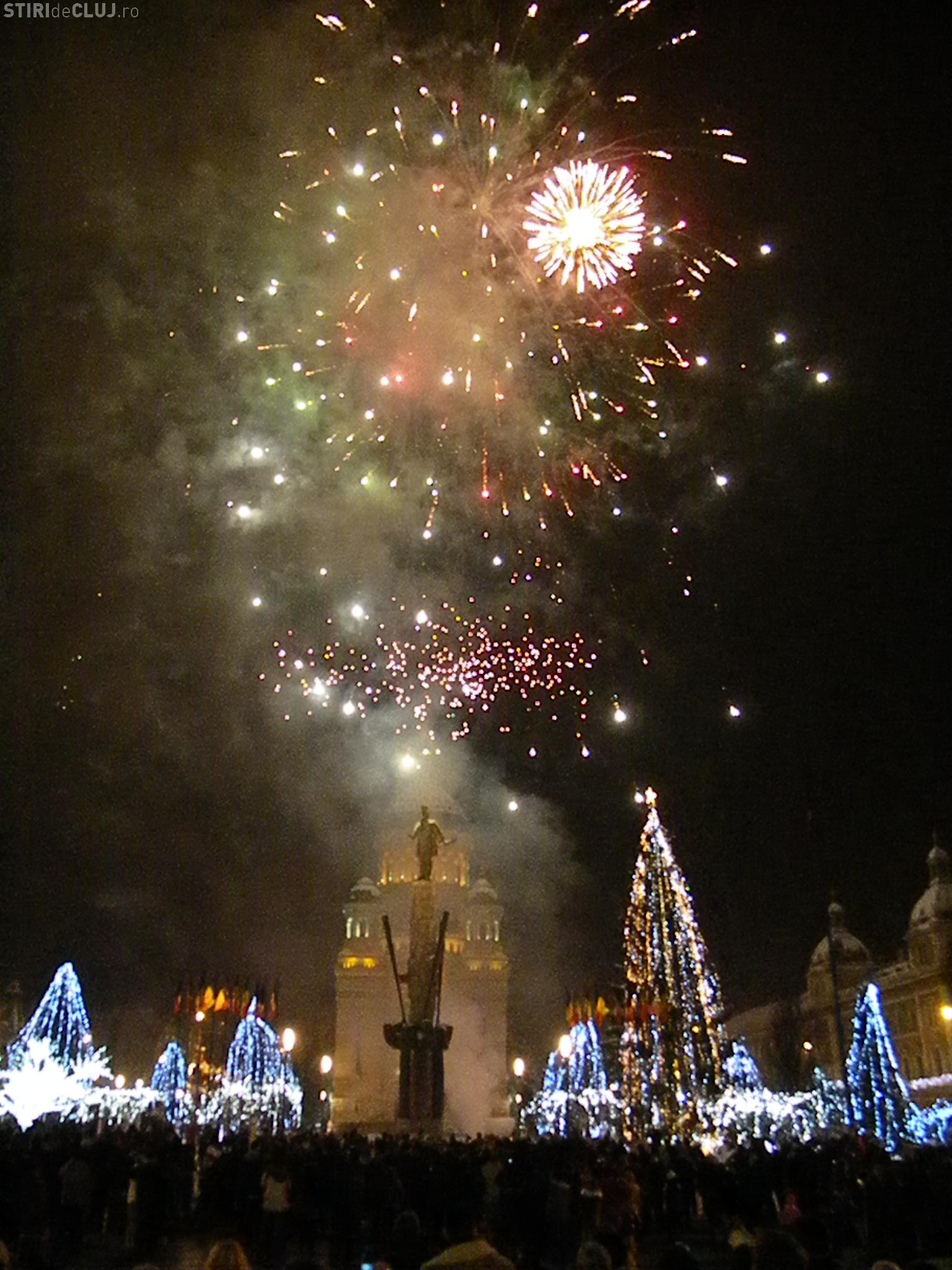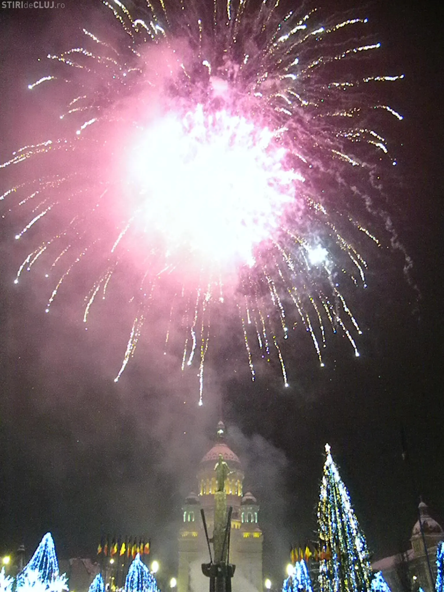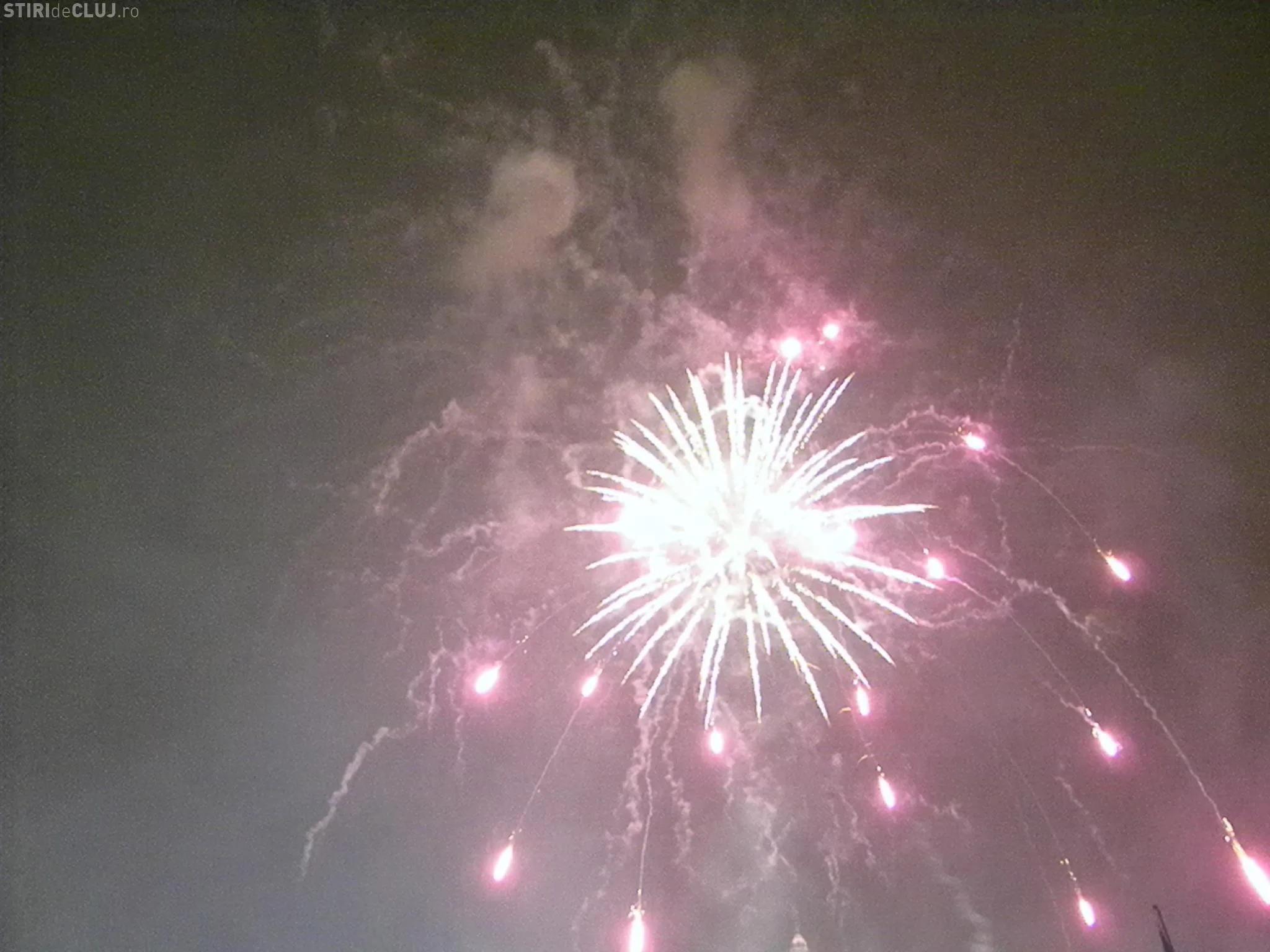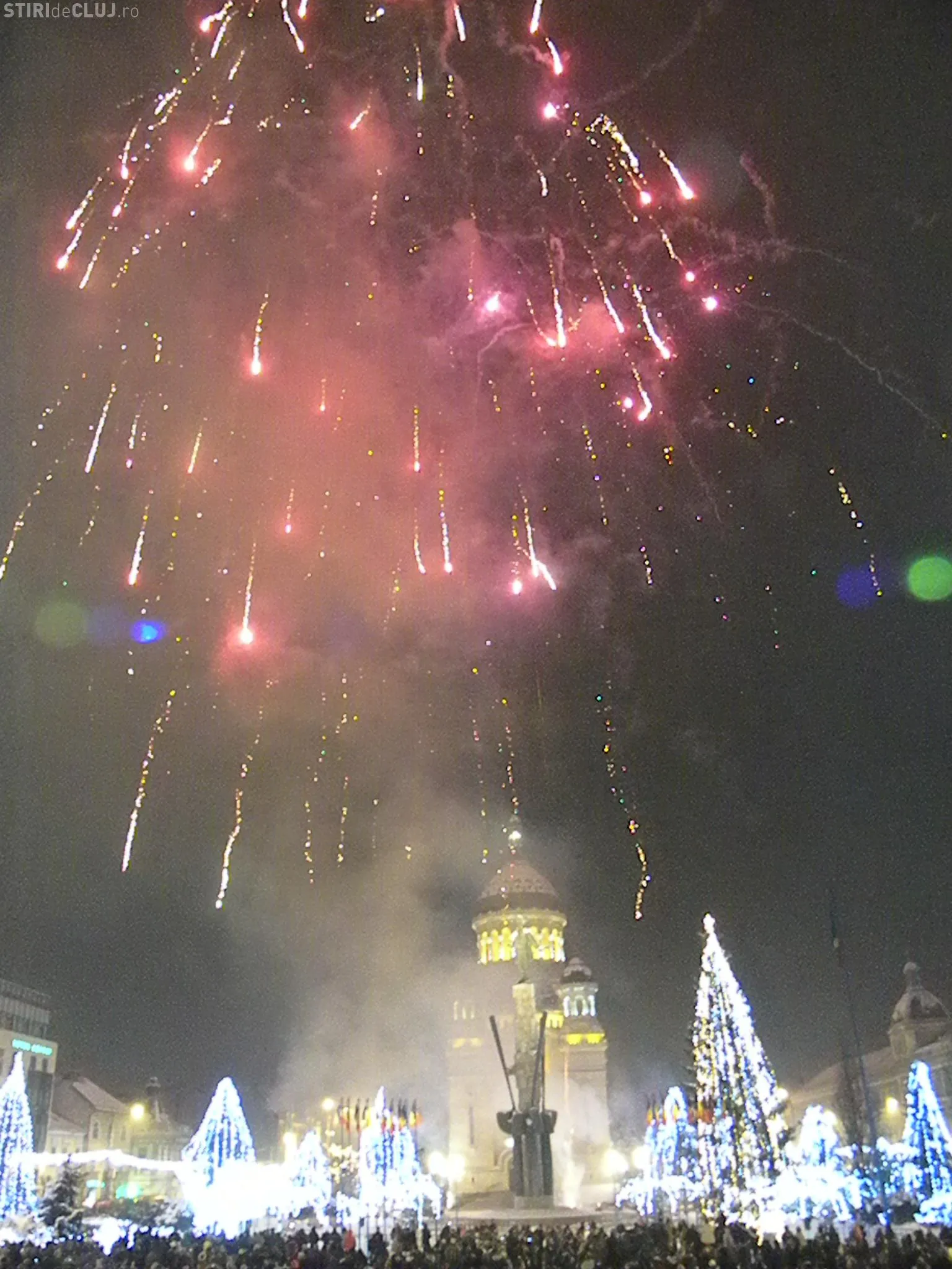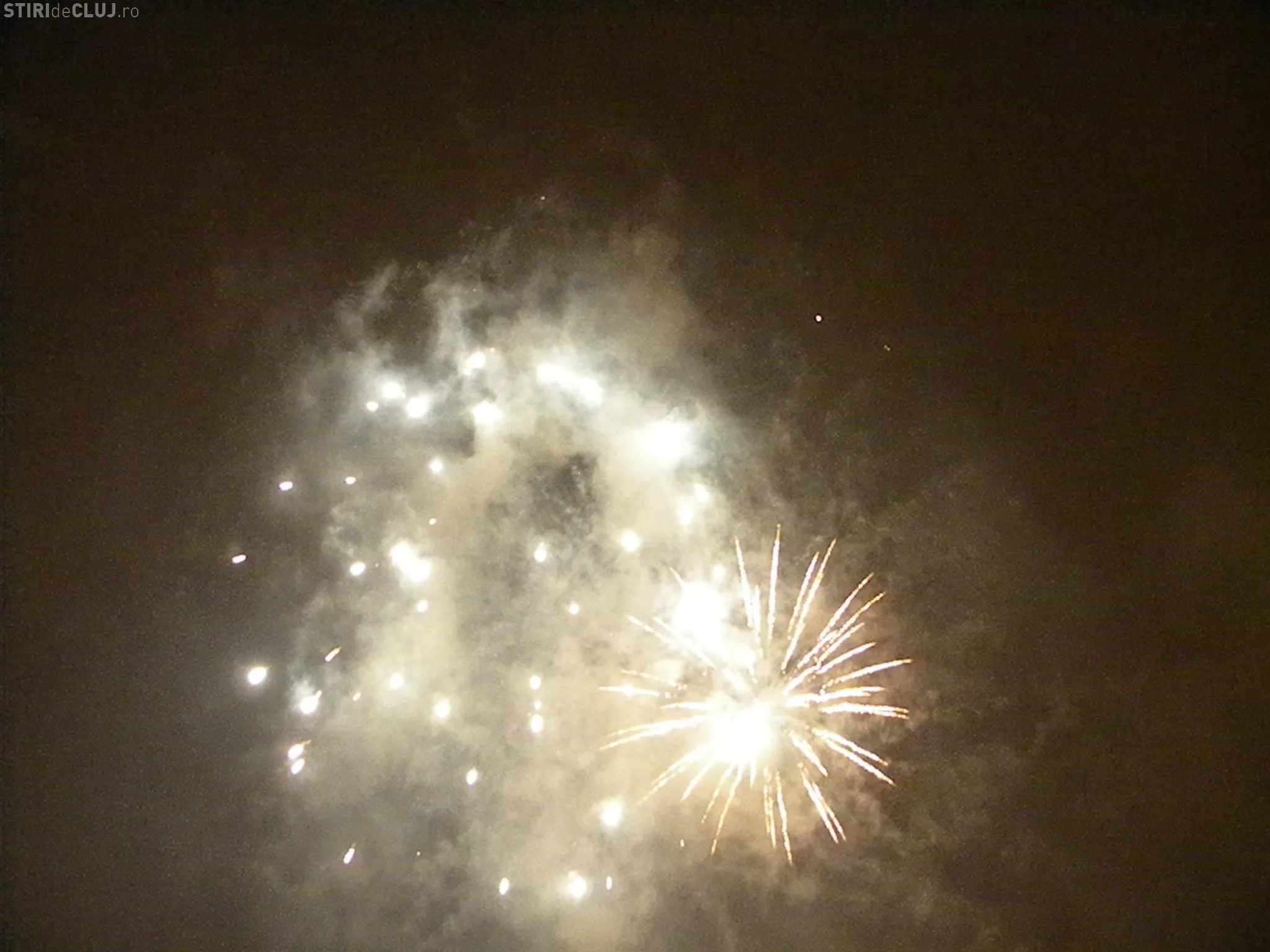 Spectacolul pirotehnic a inceput la miezul noptii si a durat 15 minute. Clujenii au numarat secundele pana la trecerea in noul an, dupa care au admirat focul de artificii.