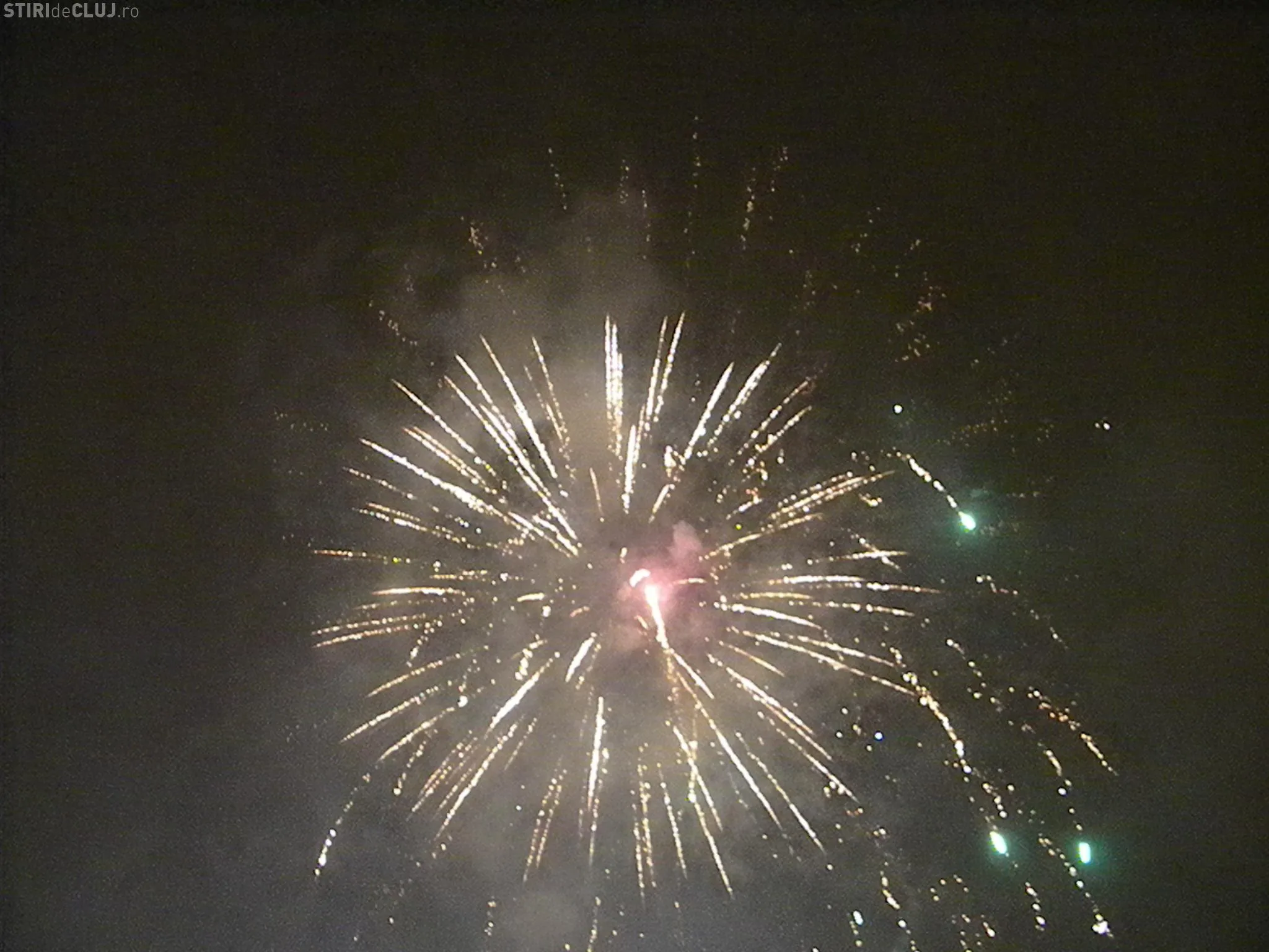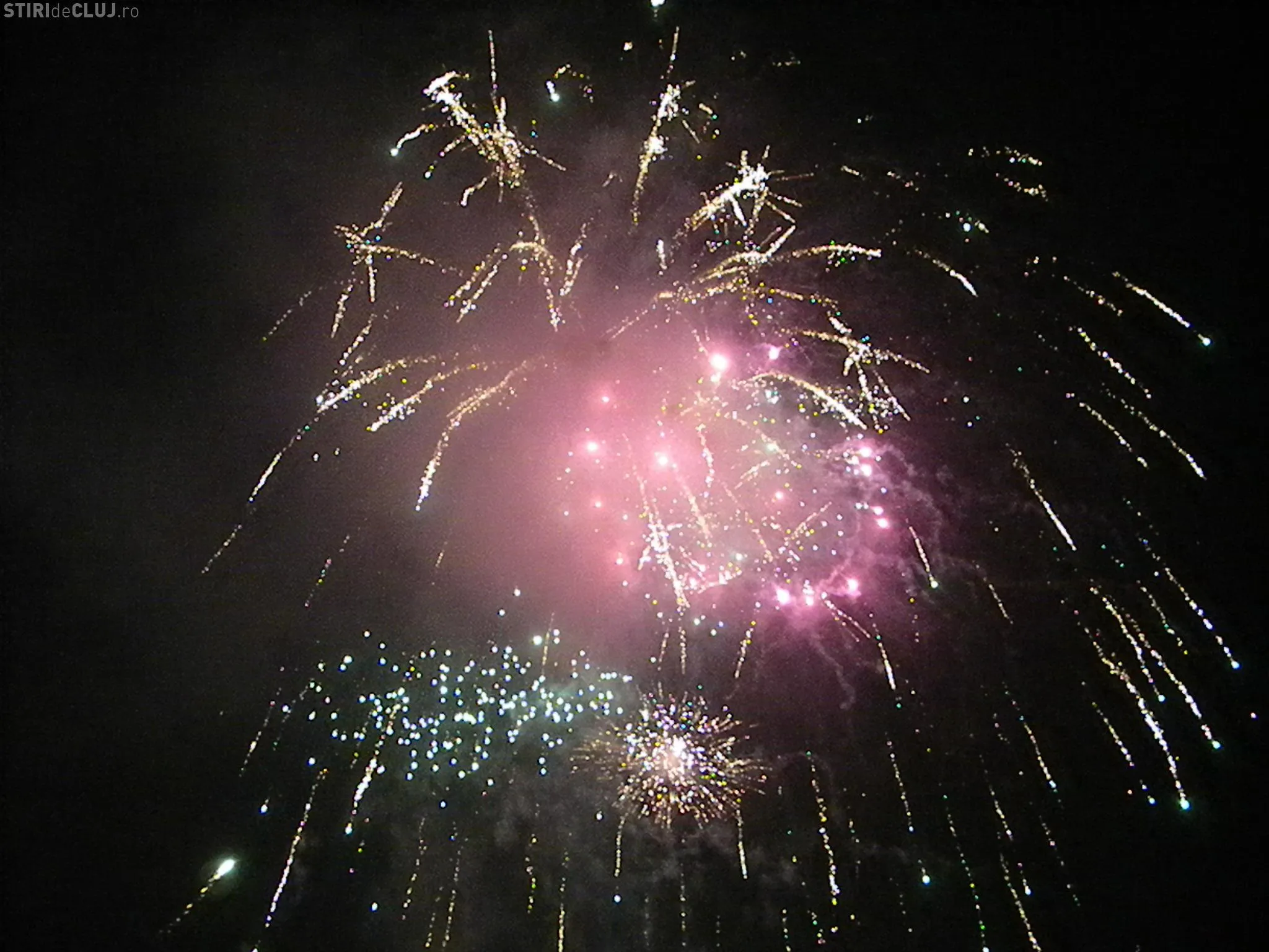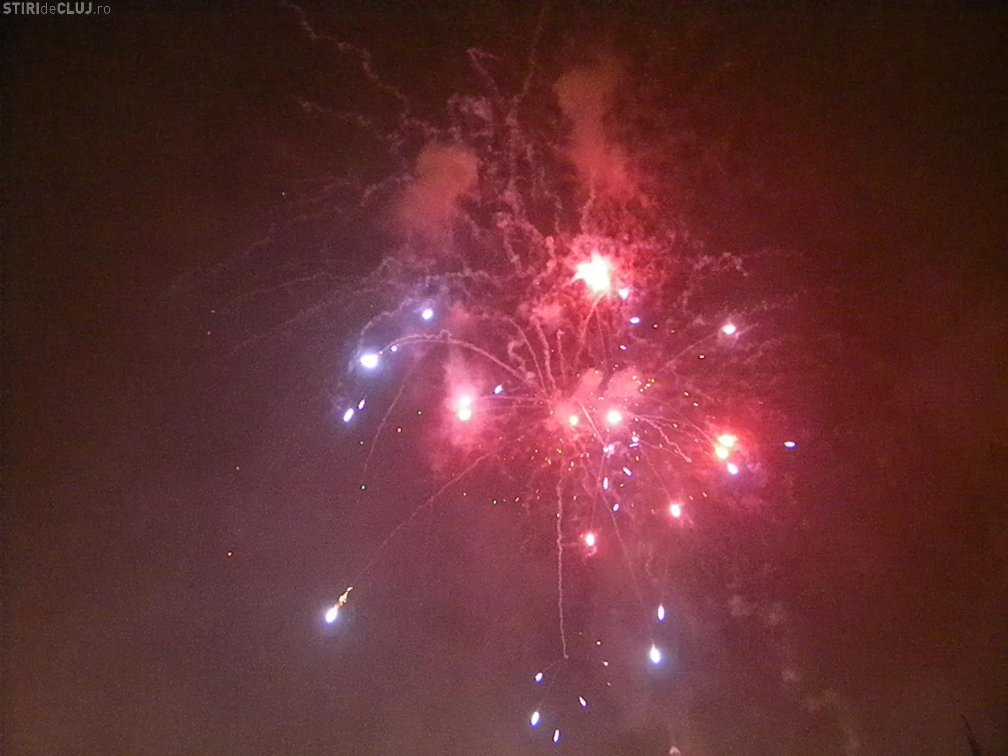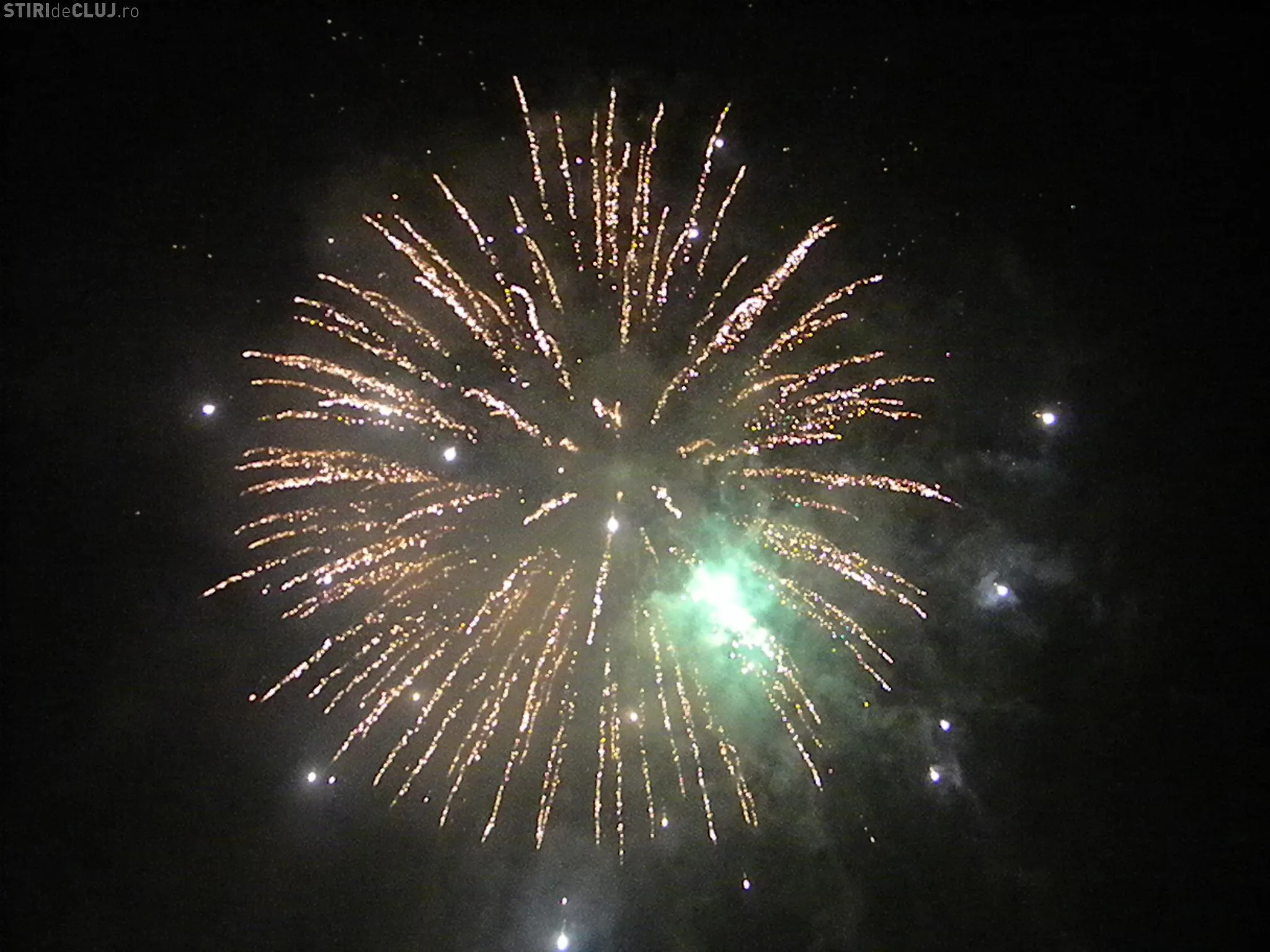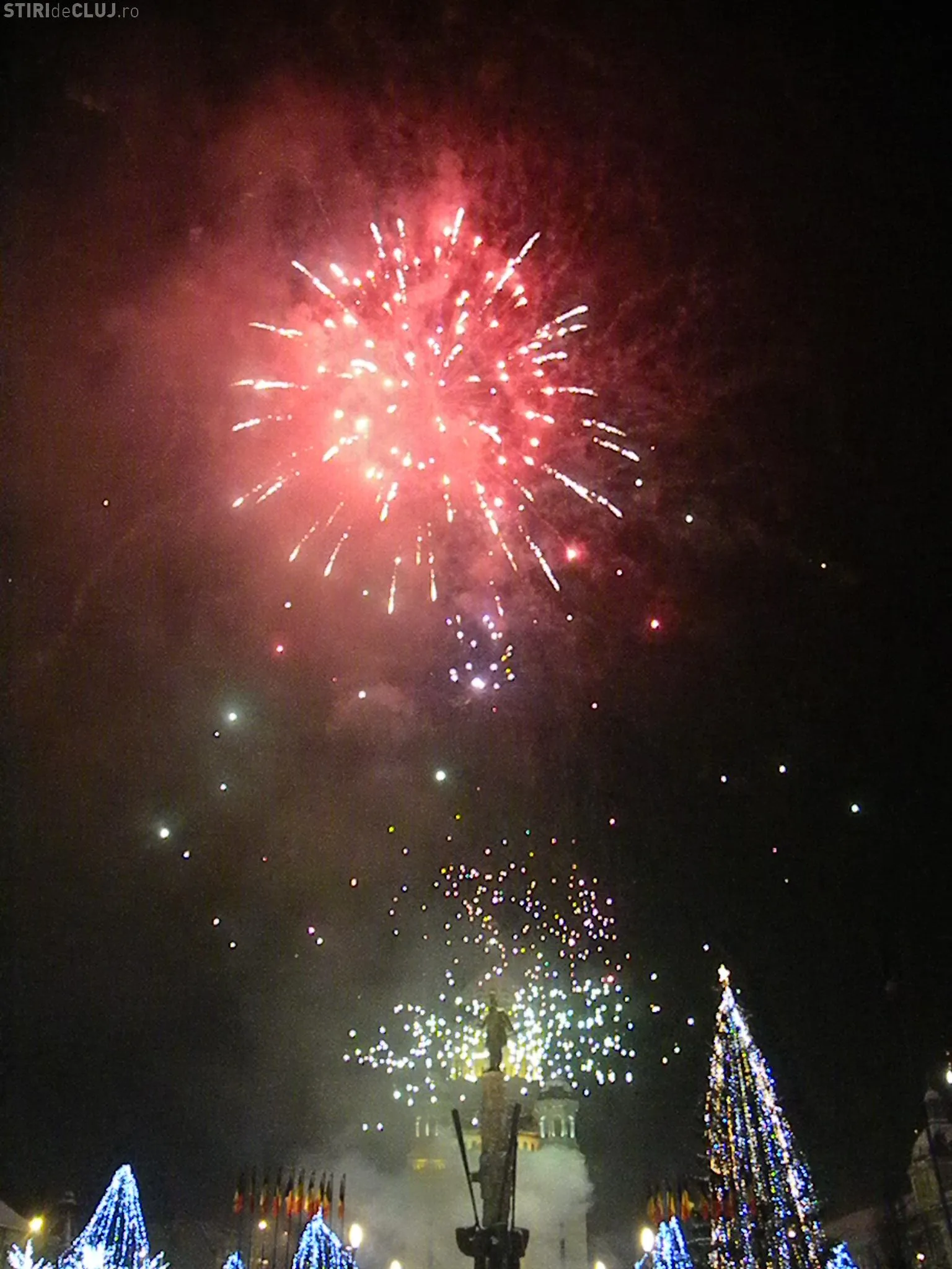Spectacolul pirotehnic a inceput la miezul noptii si a durat 15 minute. Clujenii au numarat secundele pana la trecerea in noul an, dupa care au admirat focul de artificii.