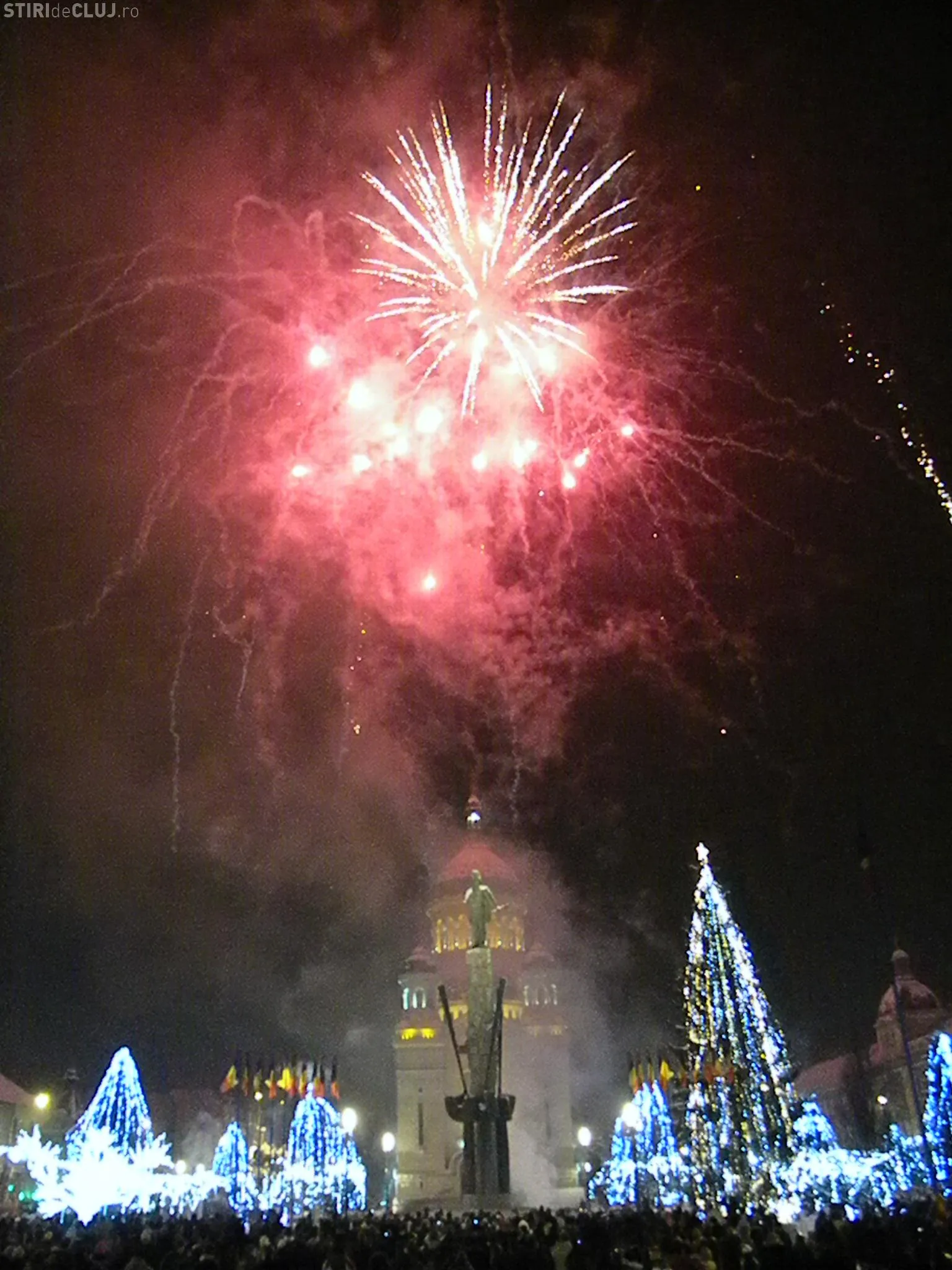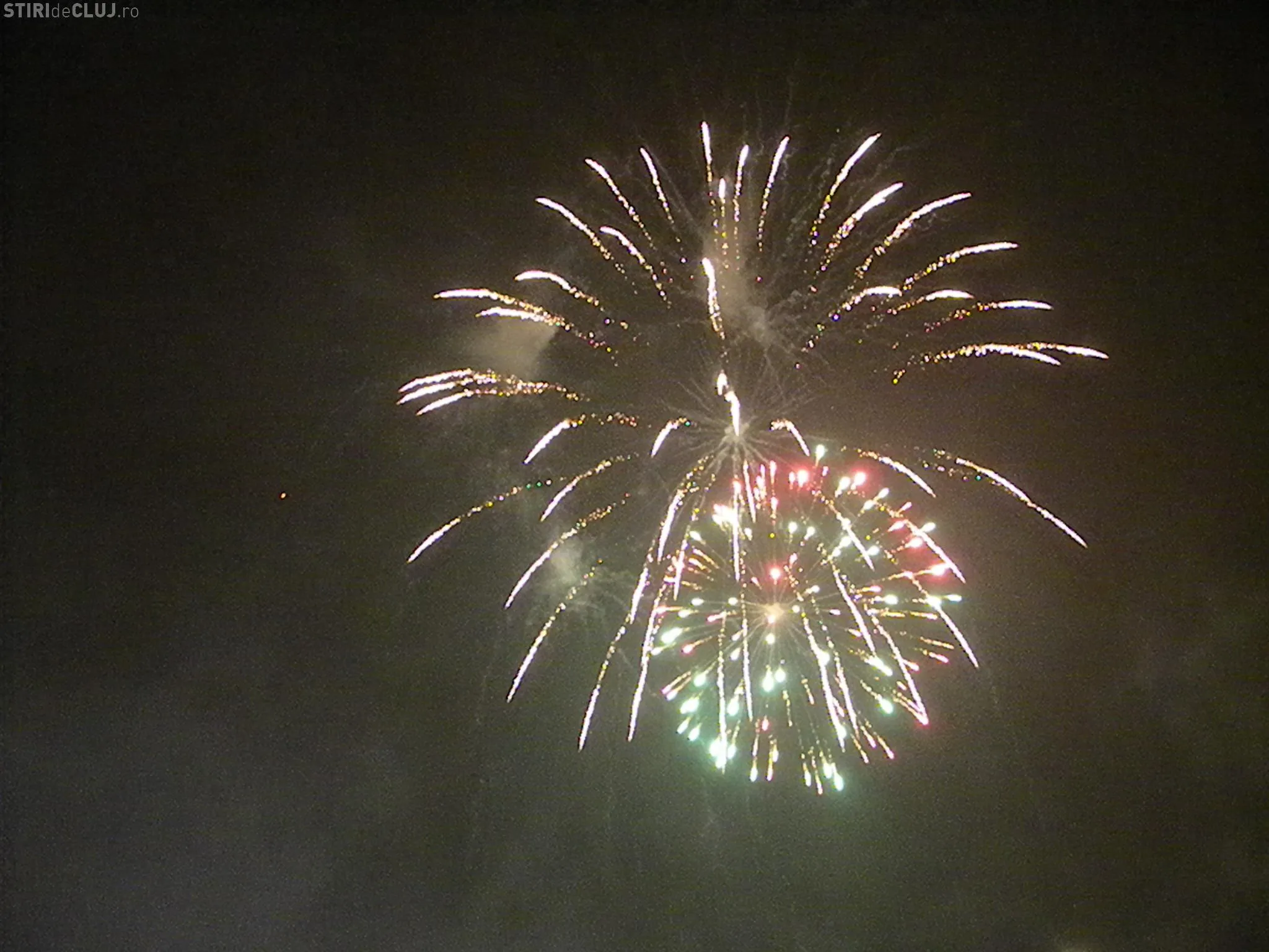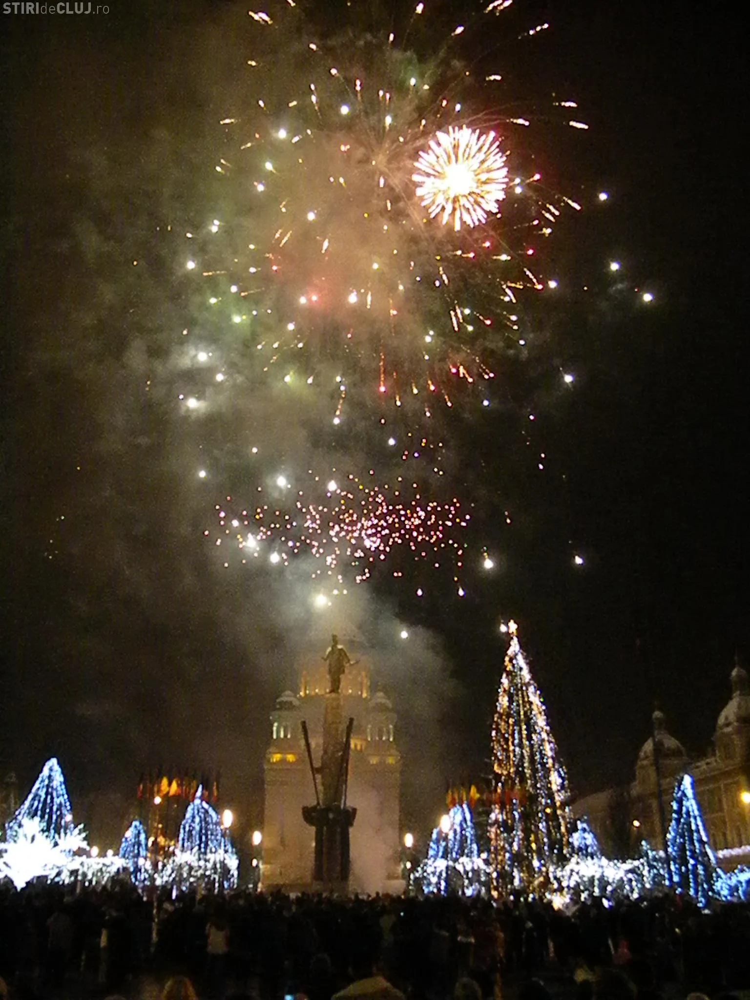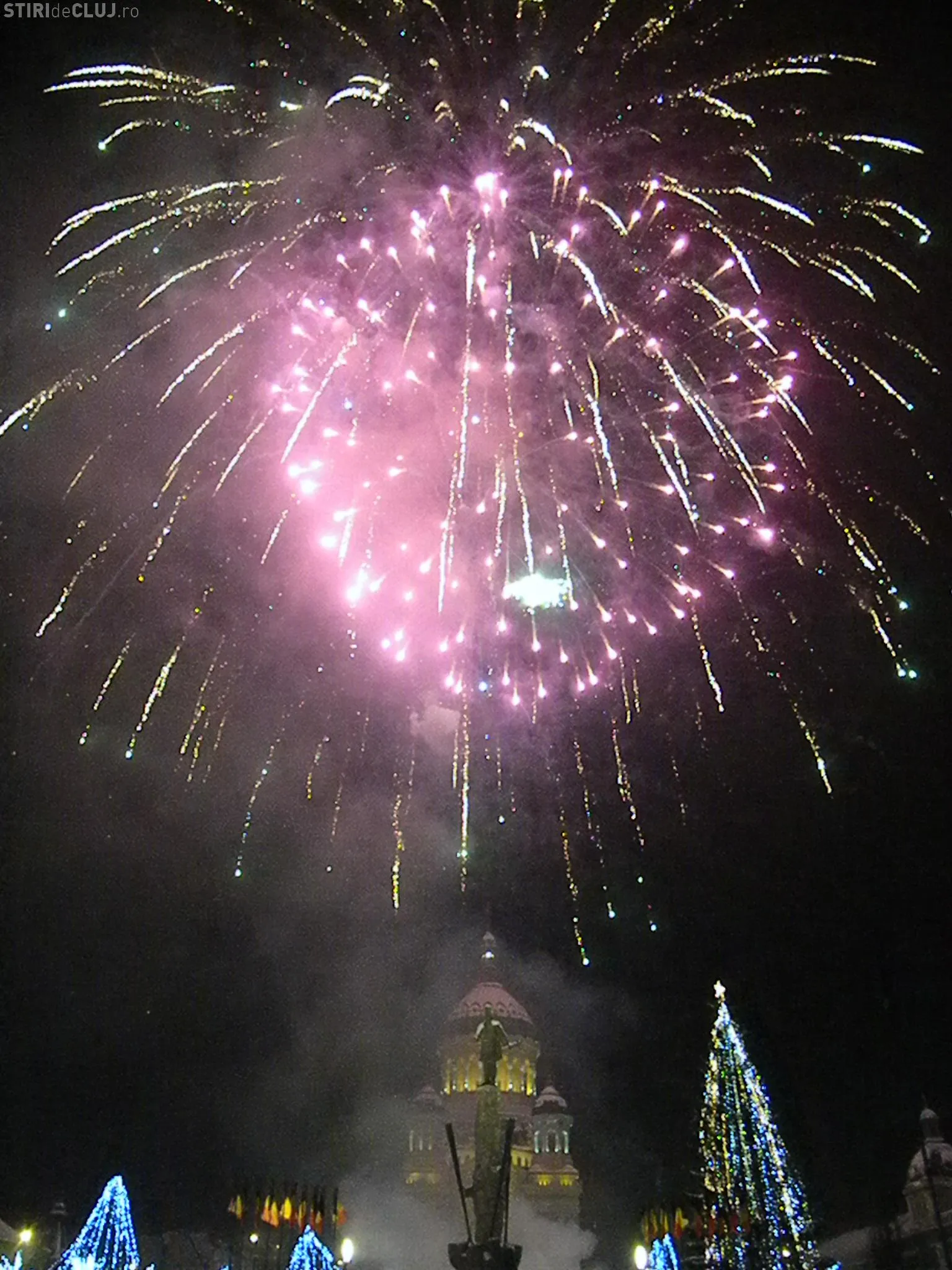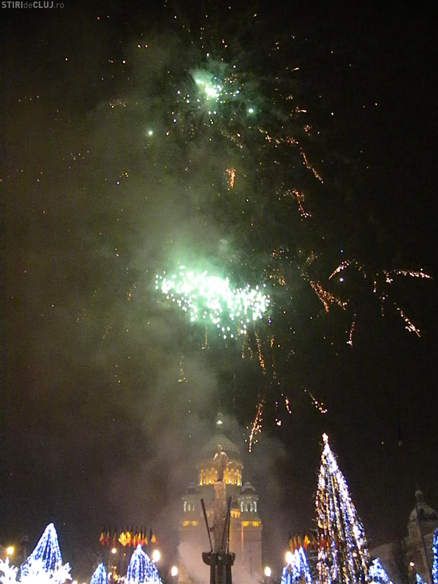 Spectacolul pirotehnic a inceput la miezul noptii si a durat 15 minute. Clujenii au numarat secundele pana la trecerea in noul an, dupa care au admirat focul de artificii.