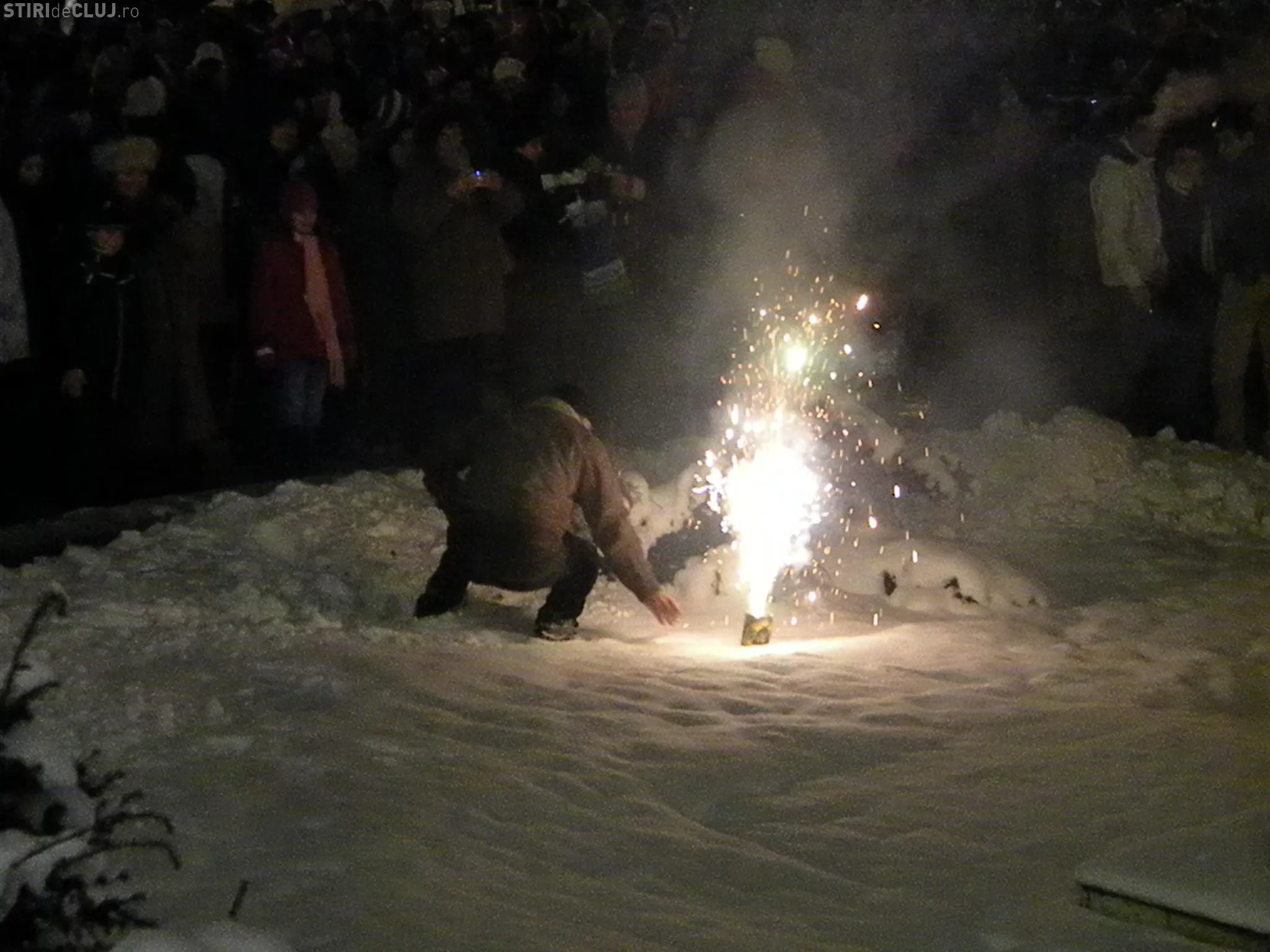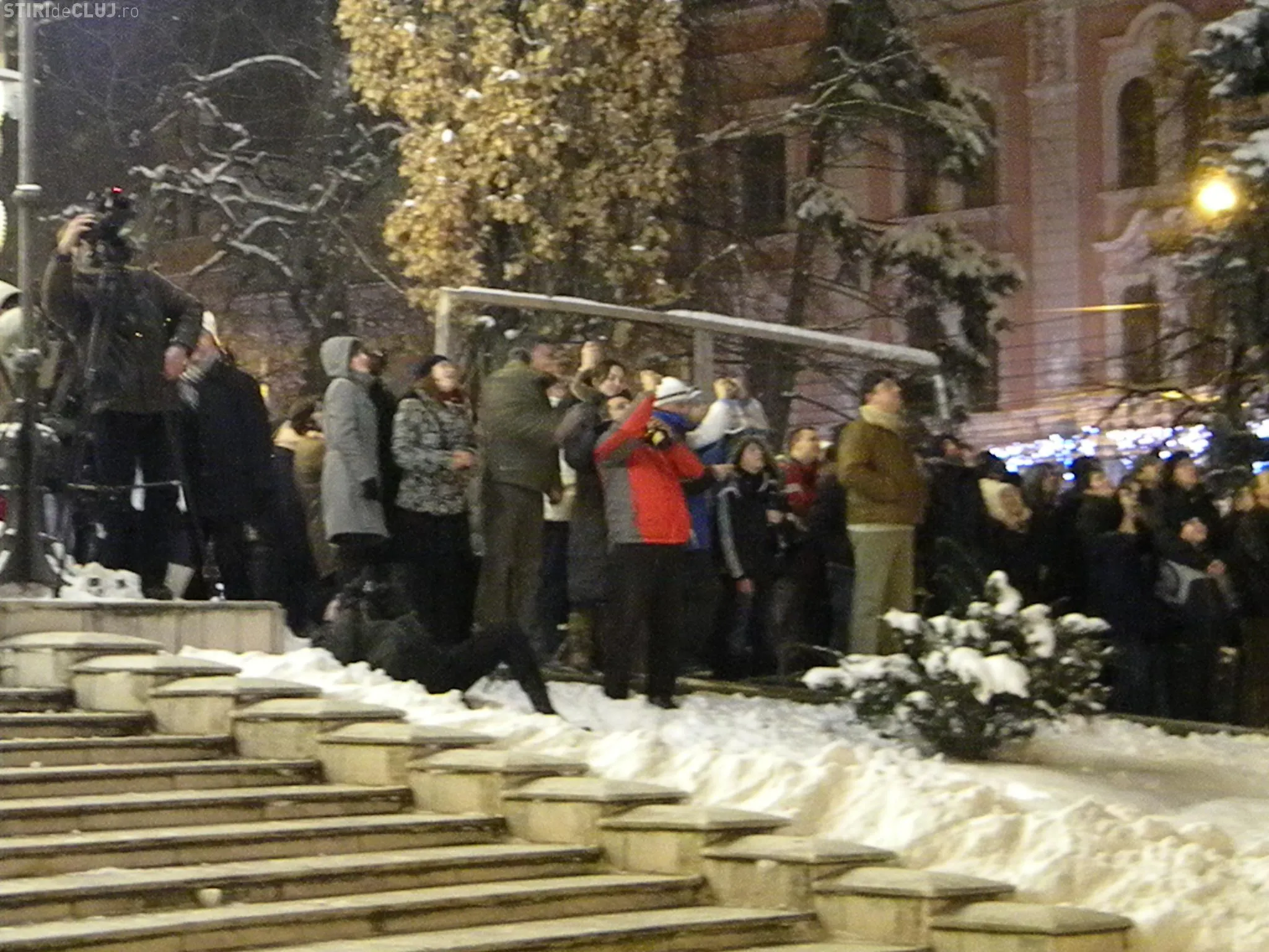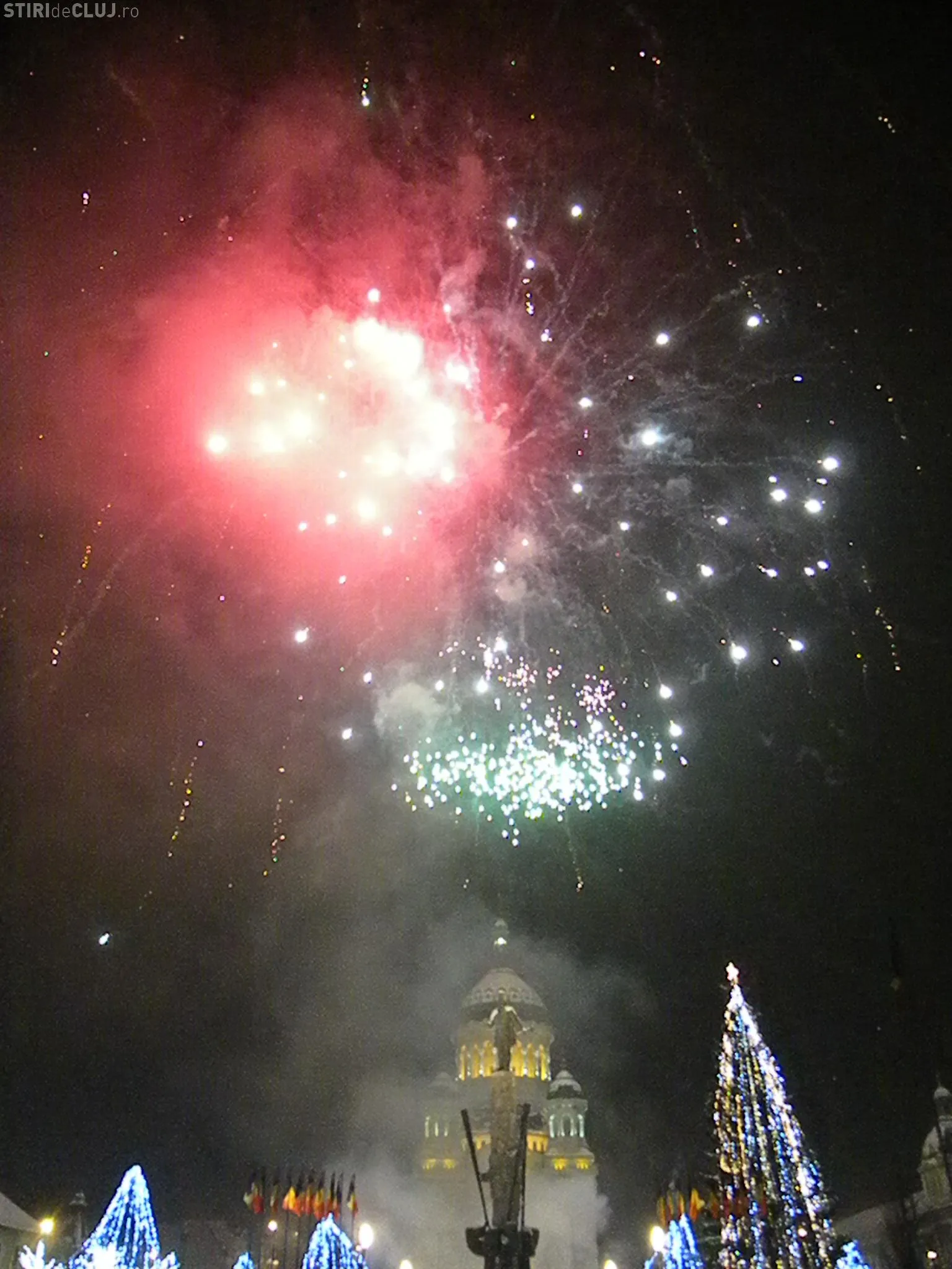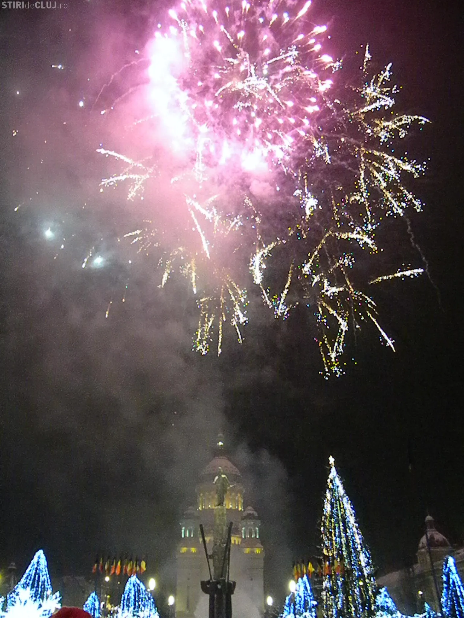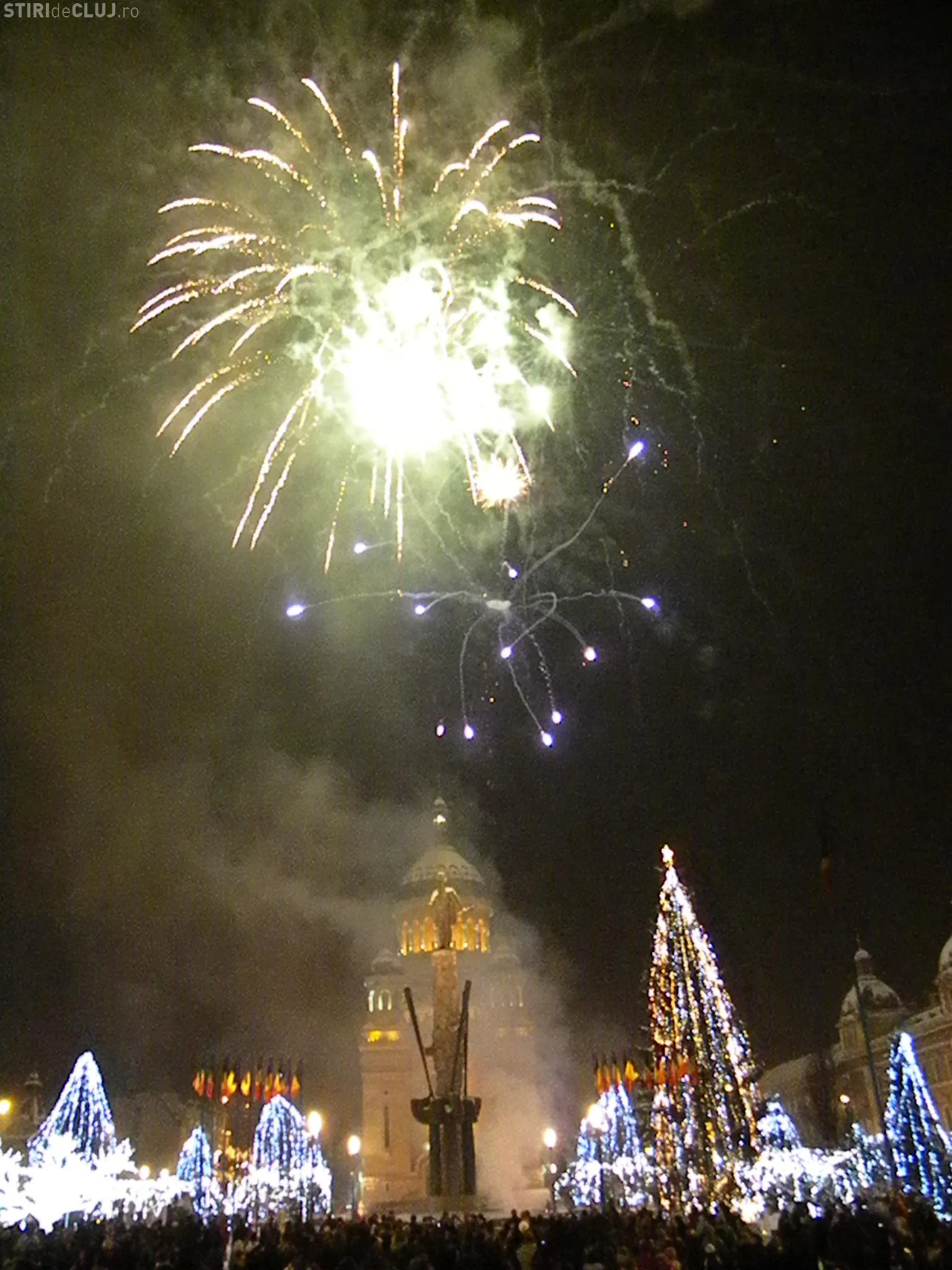 Spectacolul pirotehnic a inceput la miezul noptii si a durat 15 minute. Clujenii au numarat secundele pana la trecerea in noul an, dupa care au admirat focul de artificii.