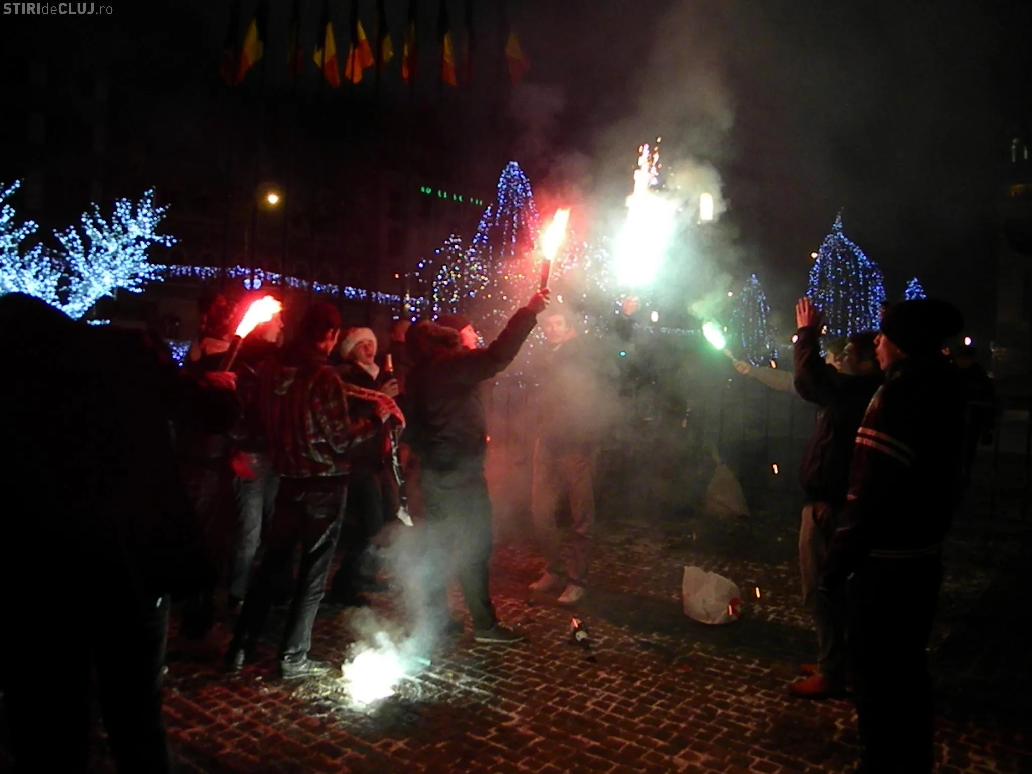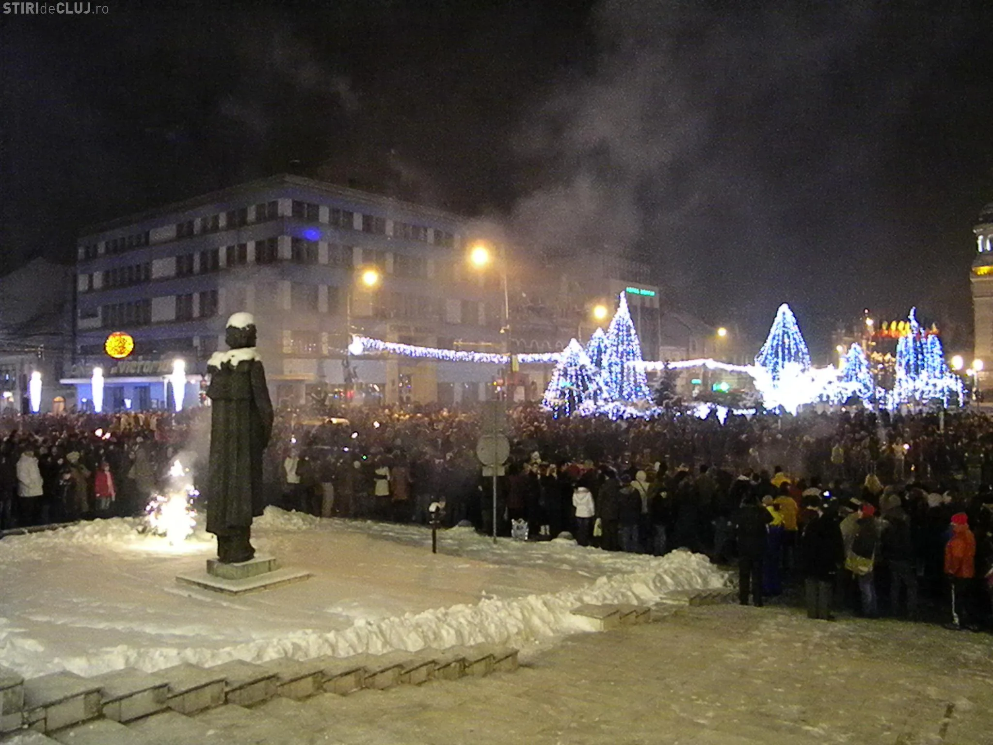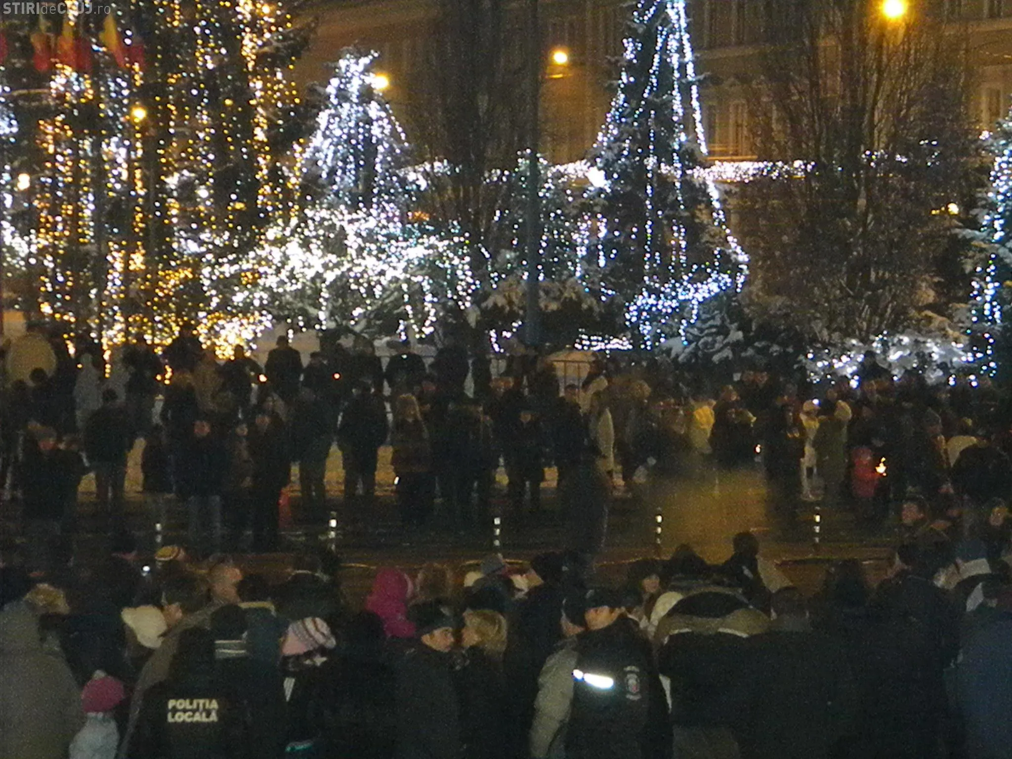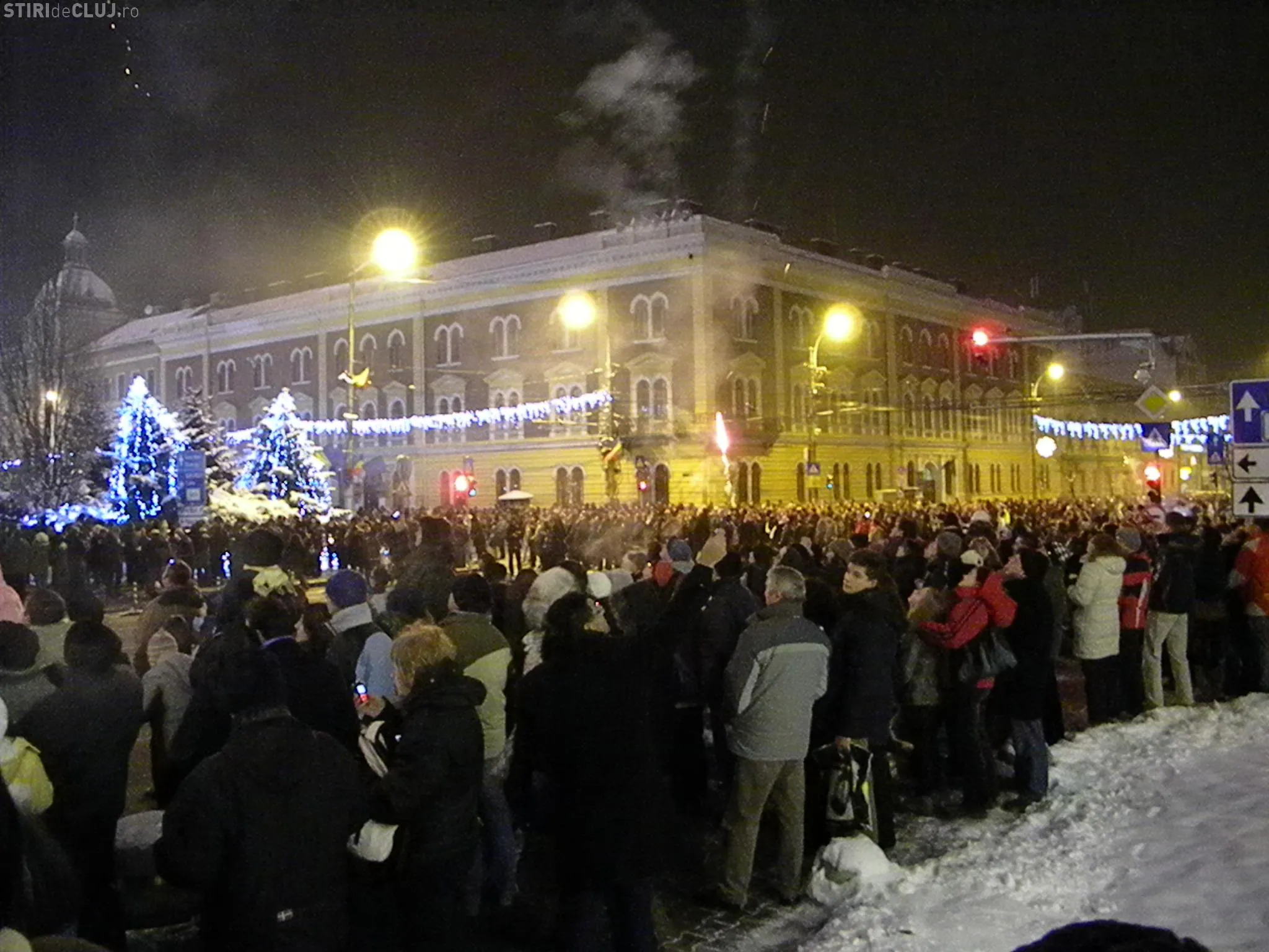 5.000 de clujeni de toate varstele s-au adunat in noaptea de Revelion in Piata Avram Iancu pentru a vedea focul de artificii si pentru a inchina o cupa de sampanie.