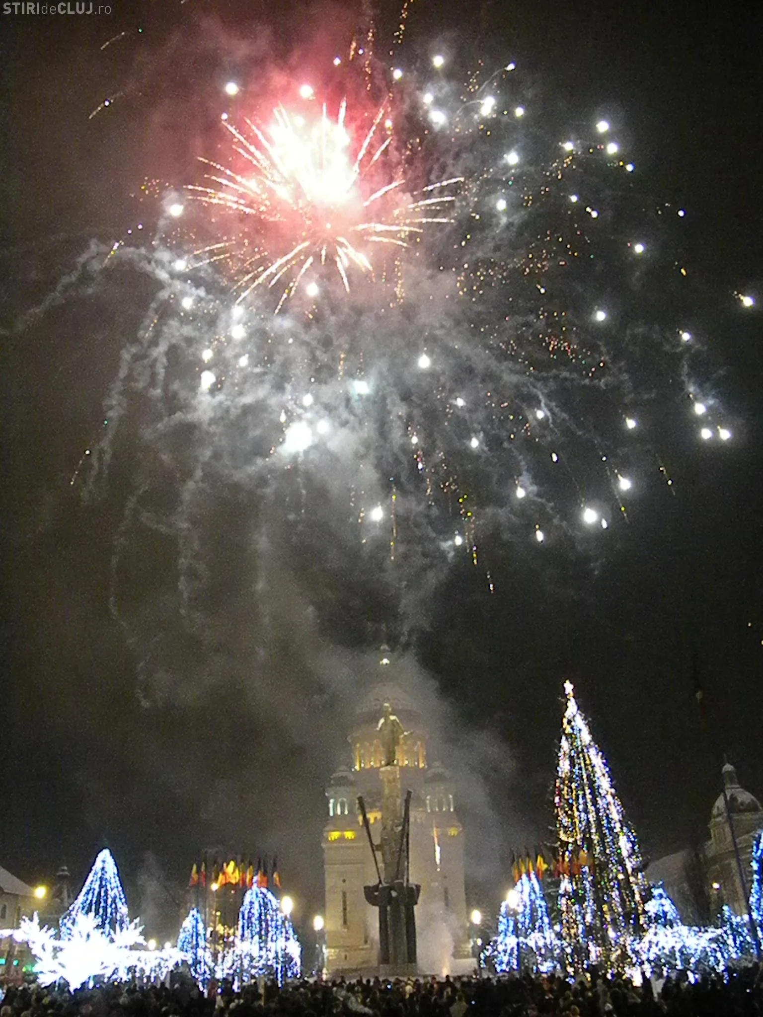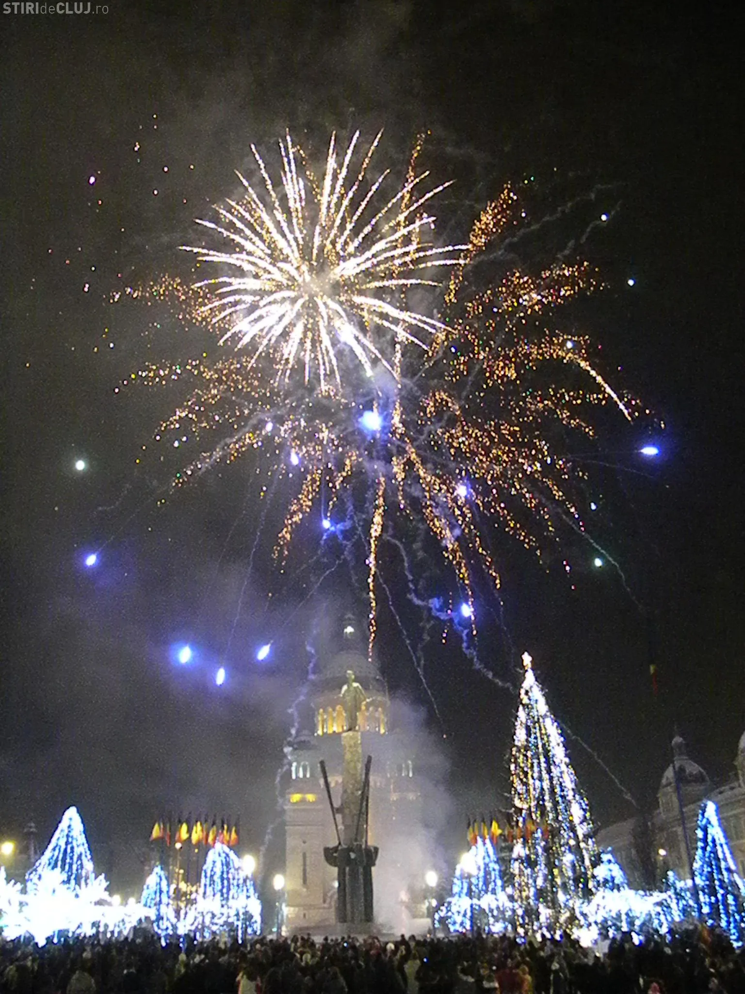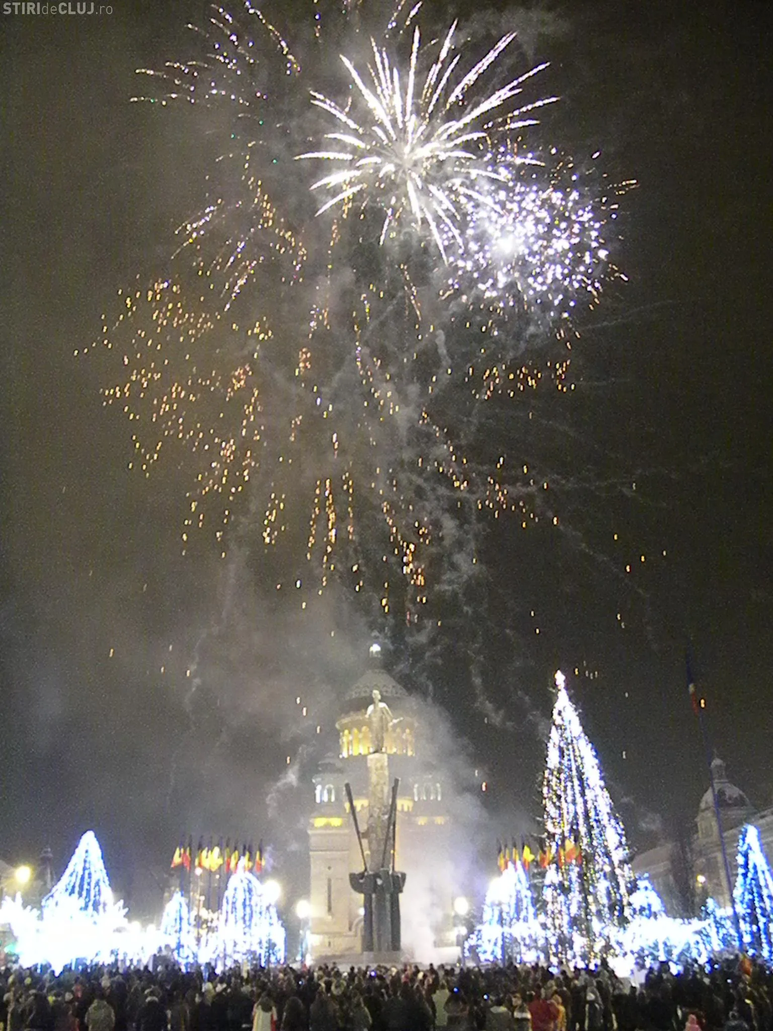 Focuri de artificii in Piata Avram Iancu in noaptea de Revelion! 5.000 de clujeni au spus "La Multi Ani" - VIDEO si FOTO