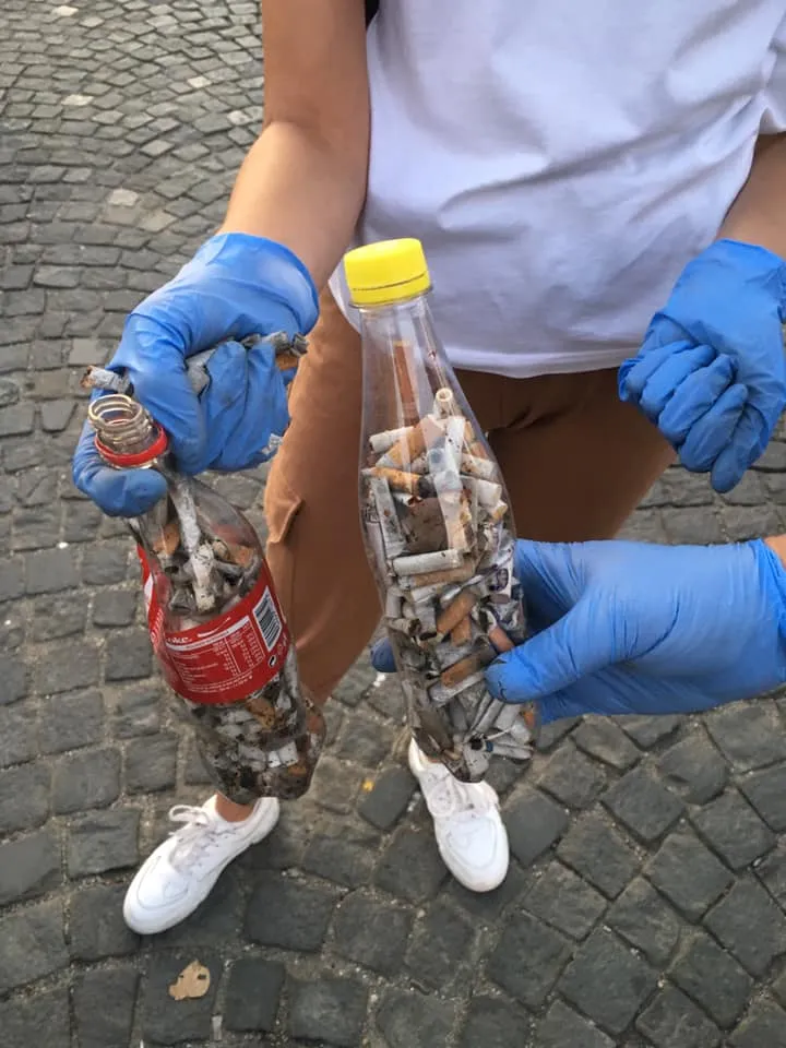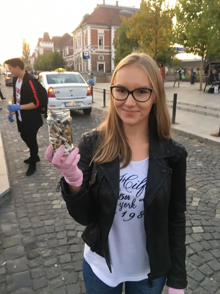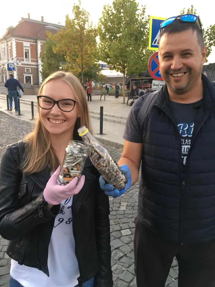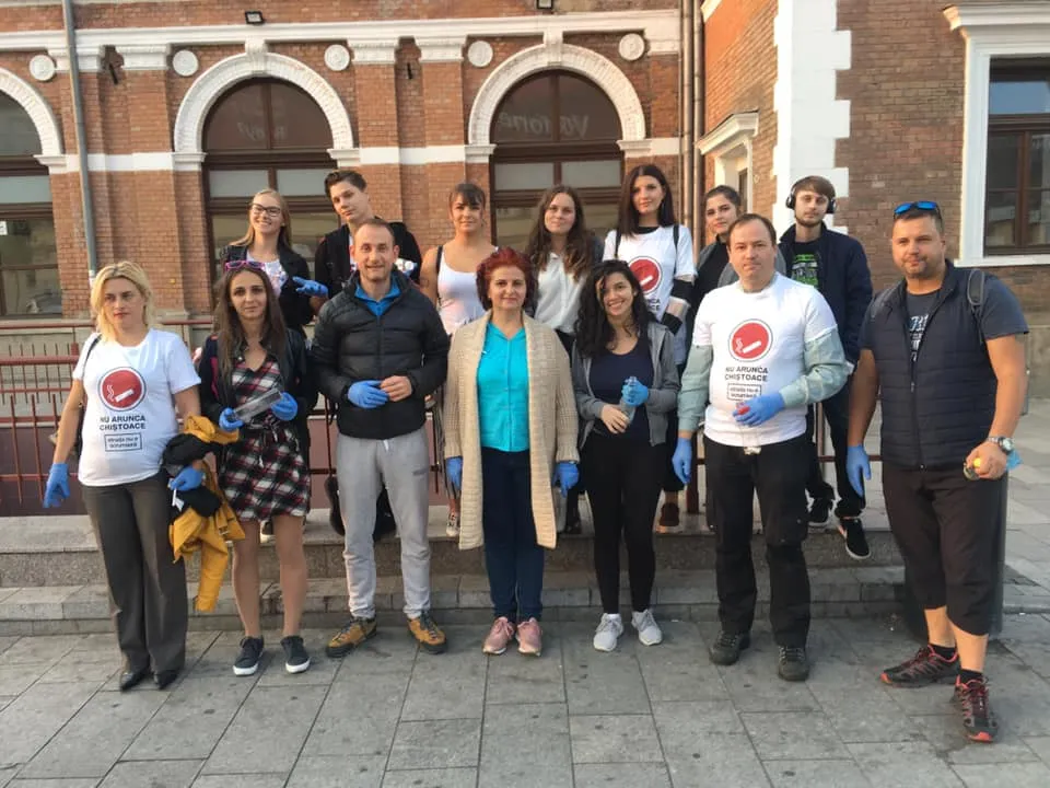 Acțiunea de strângere a chiștoacelor a fost anunțată pe Facebook și a strâns un grup de voluntari care joi a făcut curat în Piața Gării.