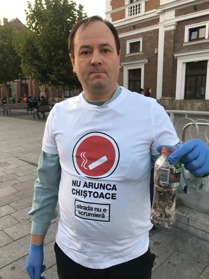 Fostul președinte al Consiliului Județean Cluj, Mihai Seplecan, a adunat chiștoace și alte gunoaie în Piața Gării din Cluj-Napoca, în cadrul unei acțiuni inițiate de clujeni.