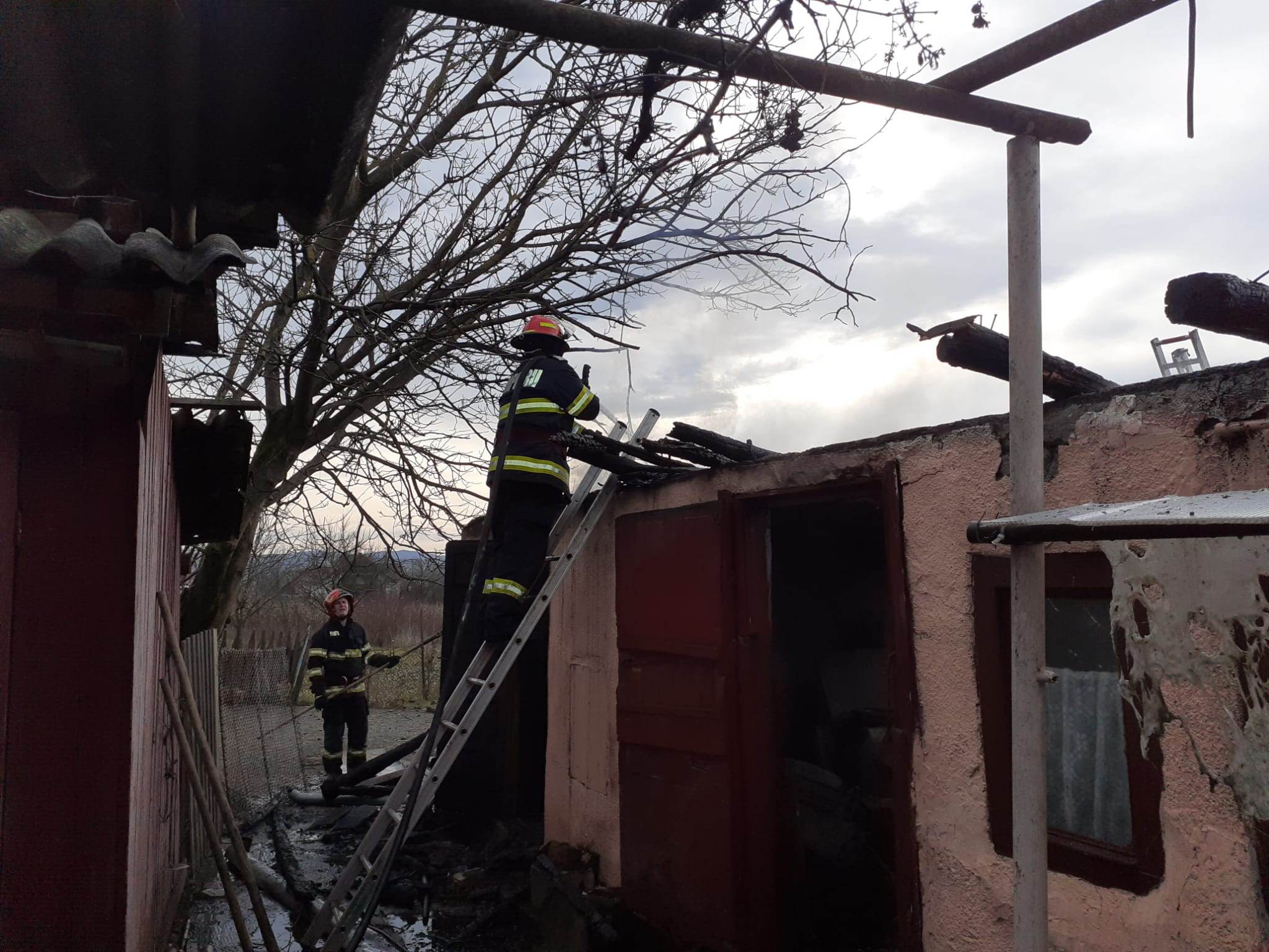 FOTO. A ars o anexă gospodărească în comuna Cuzdrioara. Incendiul a pornit de la o afumătoare amenajată necorespunzător