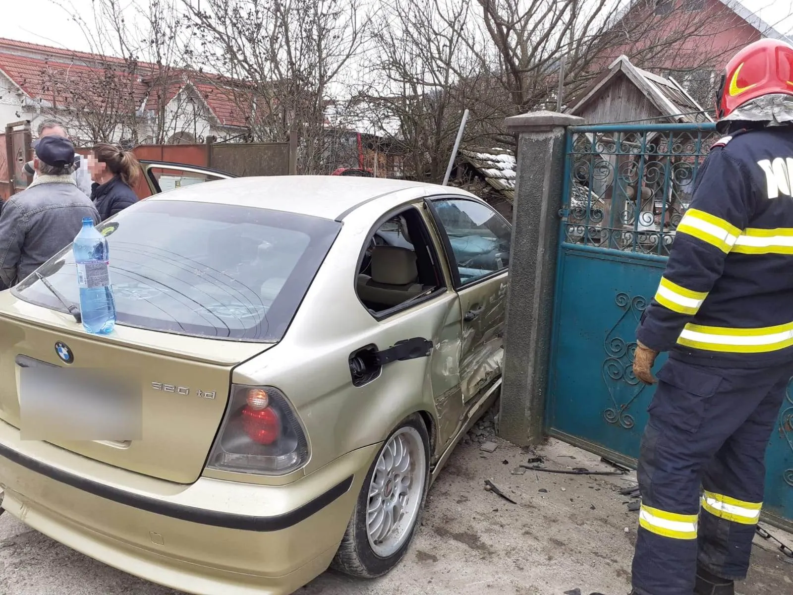 FOTO. Accident cu 3 mașini în Fizeșu Gherlii, Cluj! Un șofer a intrat cu BMW-ul în curtea omului