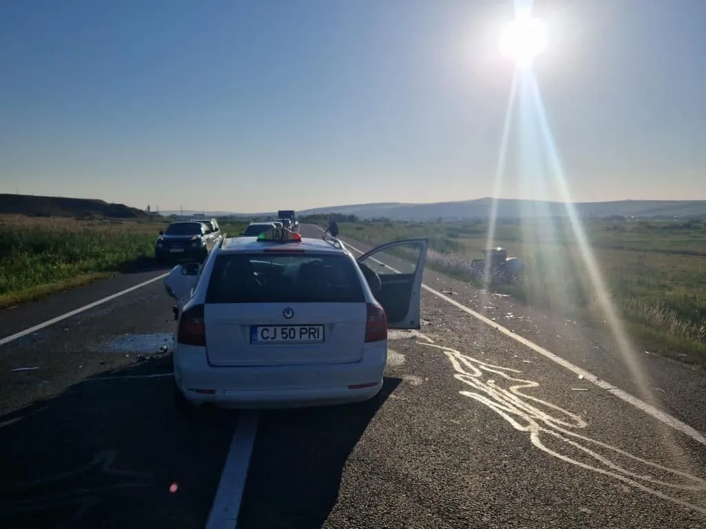 „Autoturismul condus de un bărbat de 37 de ani, din municipiul Cluj-Napoca, în direcția Cluj a intrat în coliziune cu cel condus din sensul opus de un bărbat în vârstă de 45 de ani, din Ungaria. În urma impactului a rezultat rănirea conducătorului auto de 37 de ani, care a fost transportat la unitatea medicală. Rezultatele testărilor cu aparatul etilotest – negative”, potrivit IPJ Cluj.