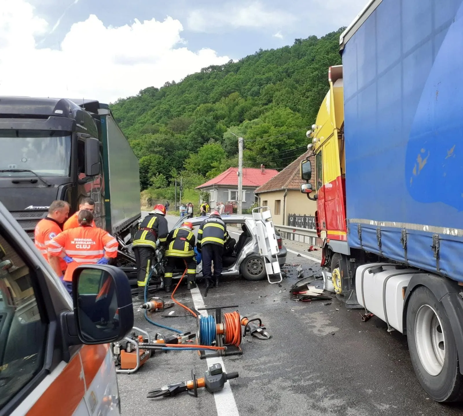 „Pompierii din cadrul Detașamentului Huedin intervin în aceste momente cu două autospeciale și un echipaj SMURD pentru a descarcera și a acorda primul ajutor calificat în urma unui accident rutier produs între localitățile Ciucea și Poieni. La această intervenție a fost dislocat și un echipaj medical SAJ. La fața locului au găsit două autocamioane, un microbuz, o autoutilitară și un autoturism avariate, iar în autoturism se afla încarcerată o femeie în vârstă de cca 50 de ani, care nu mai prezenta semnale vitale. Pompieri au descarcerat de urgență victima și au început, alături de echipajul SAJ, manevrele de resuscitare”, anunță ISU Cluj.