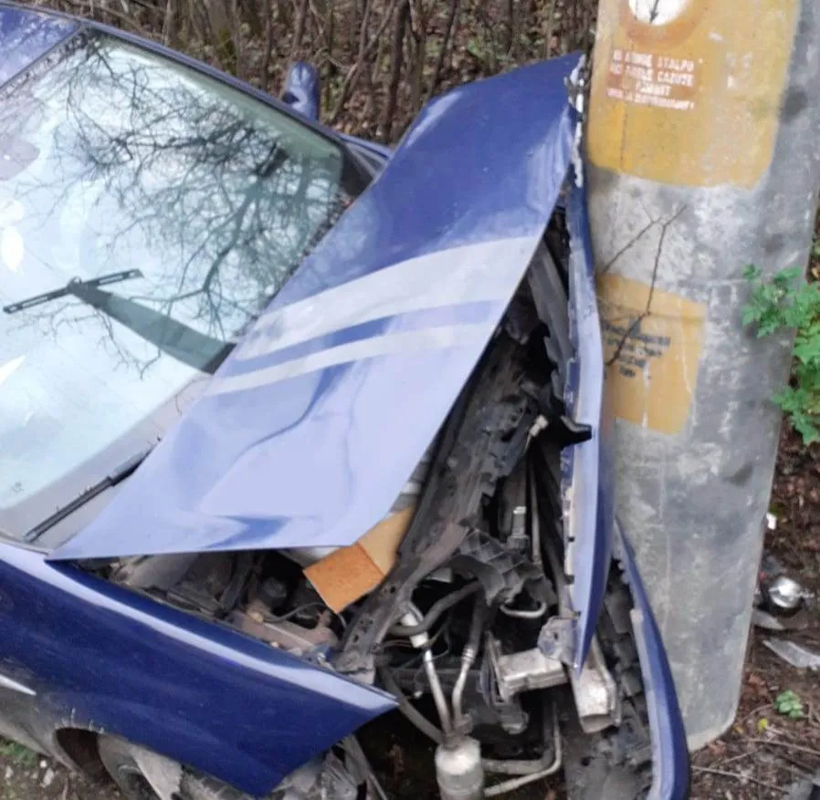 FOTO. Accident în comuna Iara! O mașină a ieșit de pe carosabil și s-a izbit într-un stâlp