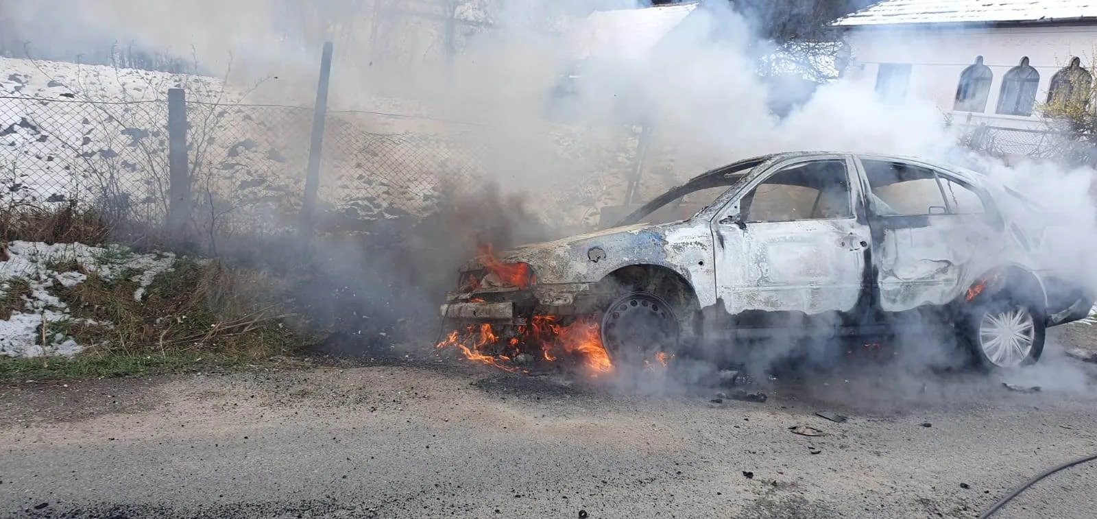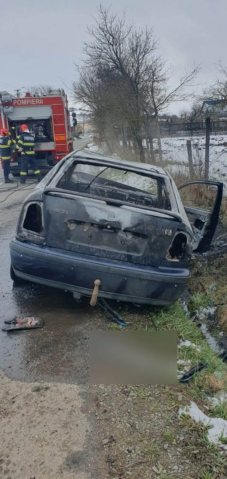 Bărbatul este transportat în aceste momente la spital. În paralel, pompierii au lichidat incendiul care a pornit, cel mai probabil, din cauza unei defecțiuni la compartimentul motor, nu în urma vreunui impact. Autoturismul a fost distrus aproape în totalitate. Forțele ISU se retrag la unitate.