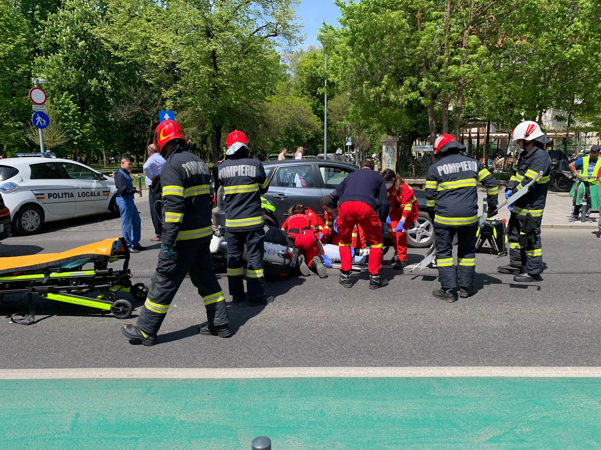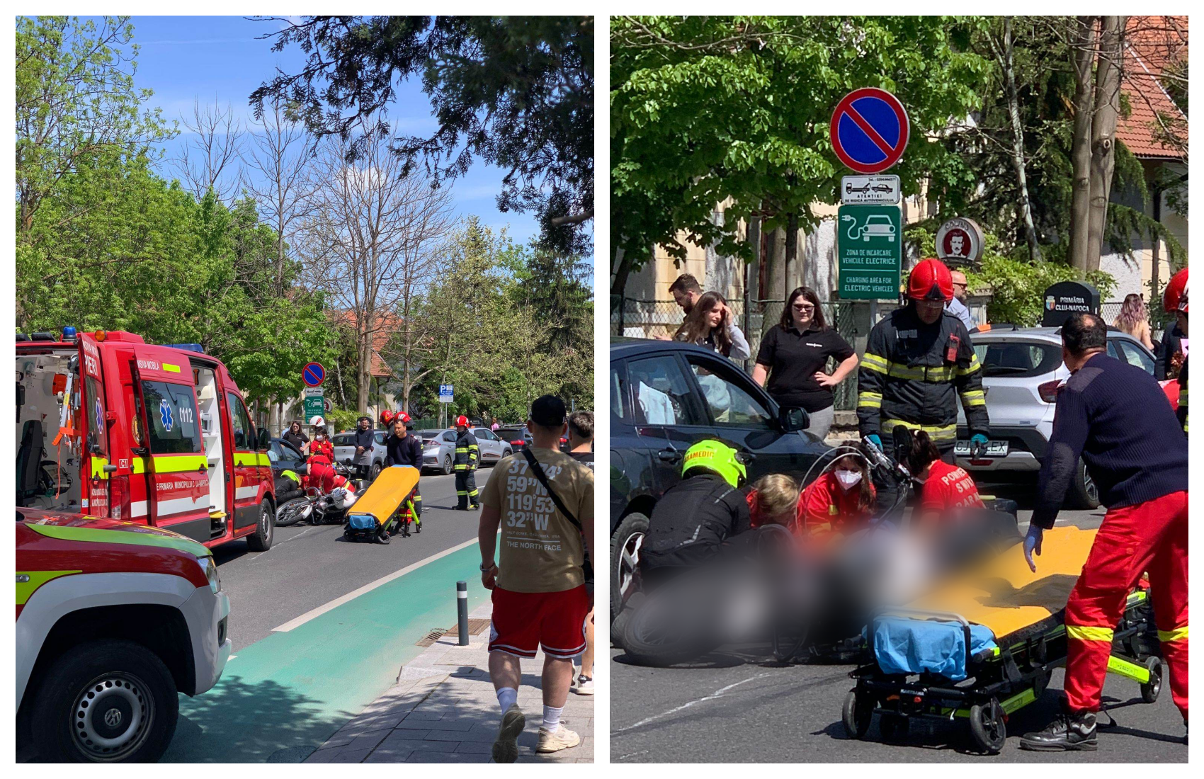 FOTO. Accident lângă Parcul Central din Cluj, între o motocicletă și o mașină! O femeie a fost rănită, intervine SMURD