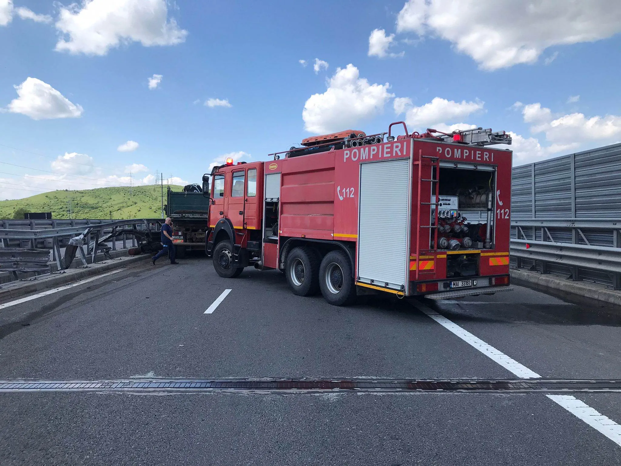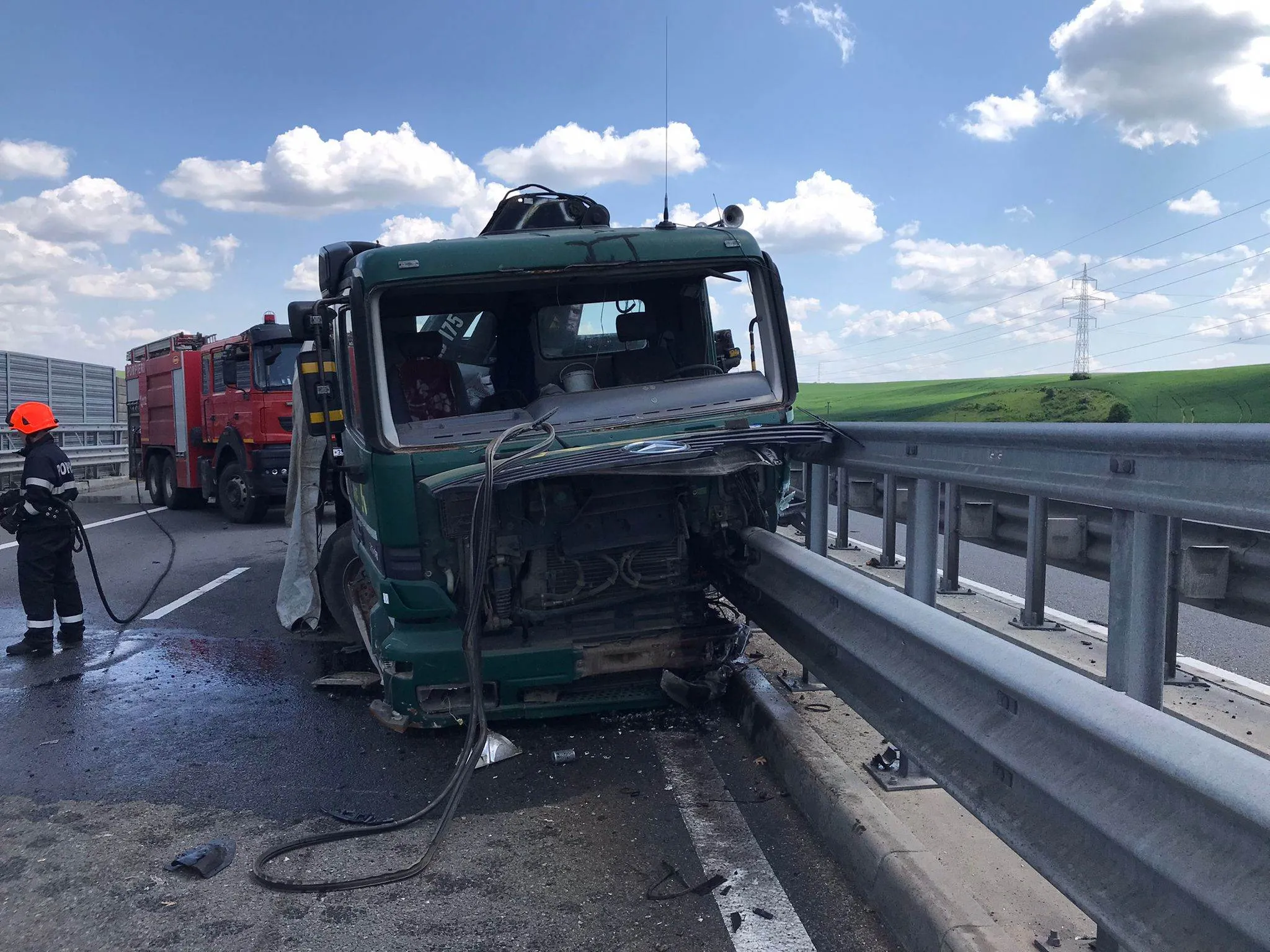 FOTO. Accident pe A10 Sebeș - Turda! Un camion s-a făcut praf, intervine SMURD