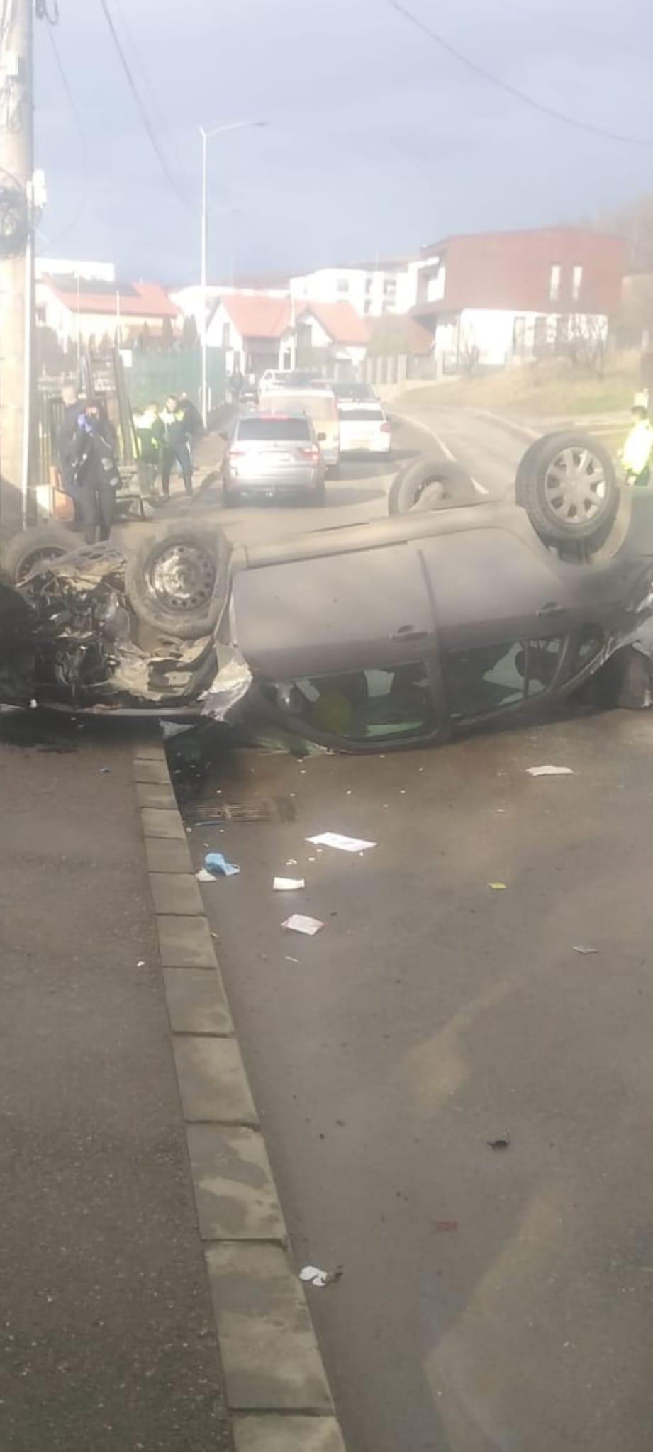 „Autoturism răsturnat pe strada Oașului din mun. Cluj-Napoca. Scurgeri de combustibil.”, anunță ISU Cluj.