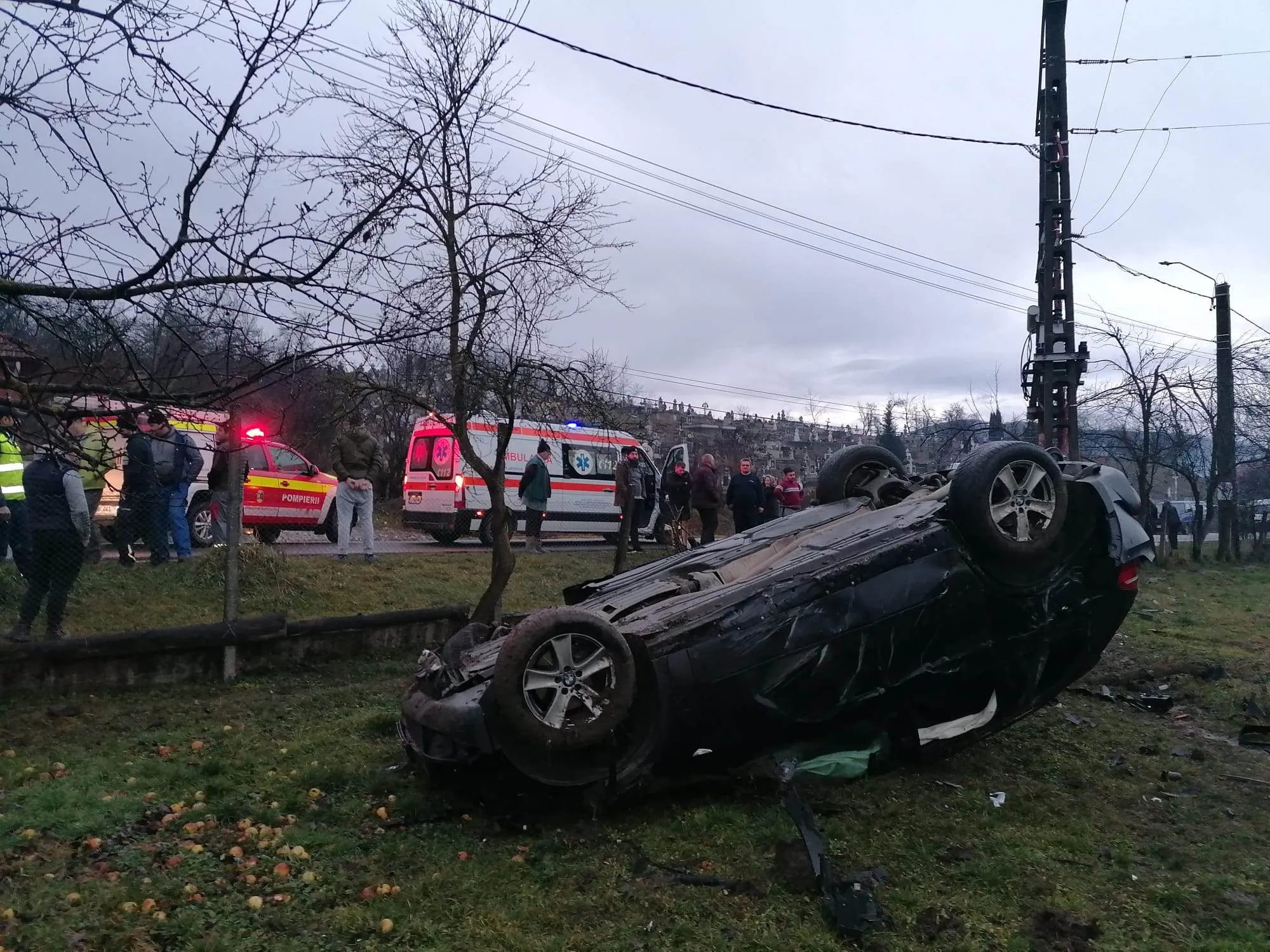 FOTO. Accident teribil în comuna Cășeiu, Cluj! O mașină s-a răsturnat, două victime, între care și un copil, au fost găsite inconștiente