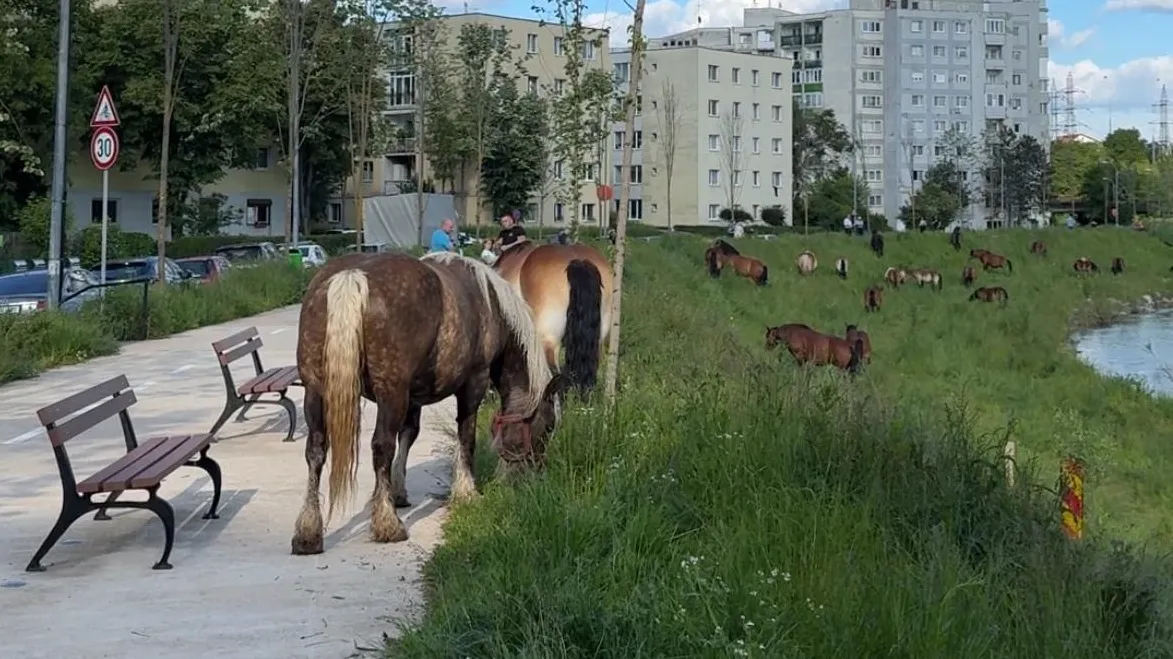 „Nici la sate nu au voie animalele să pască lângă case. La noi au ieșit căluții la păscut pe mal, între blocuri scumpe și printre mașini de lux. Calitatea vieții la 3000€/mp.”