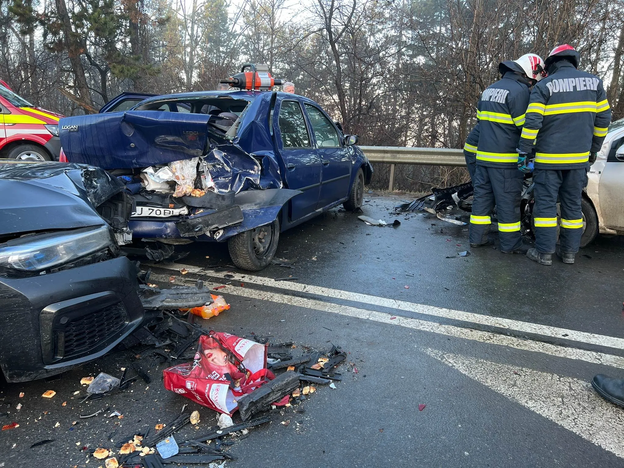 „Pompierii din cadrul Detașamentului 1 Cluj-Napoca au intervenit în această dimineață la un accident rutier petrecut în comuna Feleacu. Apelul de urgență a venit în jurul orei 09:05 și a anunțat un eveniment rutier în care au fost implicate trei autoturisme. Ajunși la fața locului, salvatorii au constatat faptul că trei autoturisme erau puternic avariate, iar din cauza impactului a fost avariat parțial un alt autovehicul. Într-o mașină se aflau încarcerate trei persoane, care au fost extrase în siguranță de către pompieri și predate echipajelor medicale.