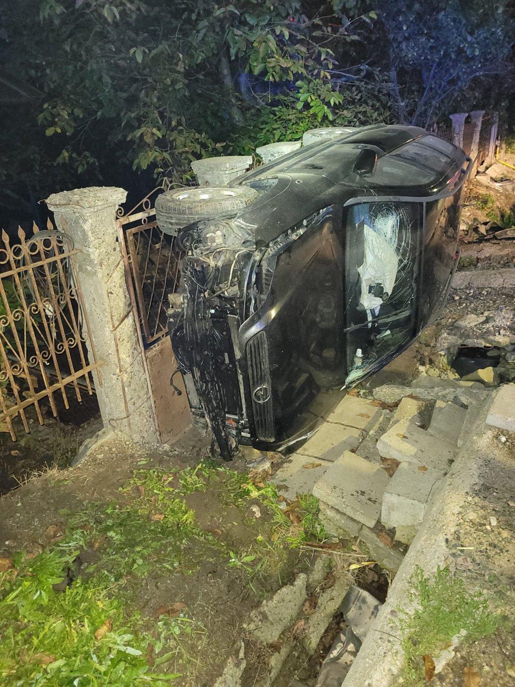 O mașină a ajuns pe gardul unei case, iar conducta de gaze din fața imobilului a fost avariată grav, duminică noaptea, în localitatea Feleacu, județul Cluj.