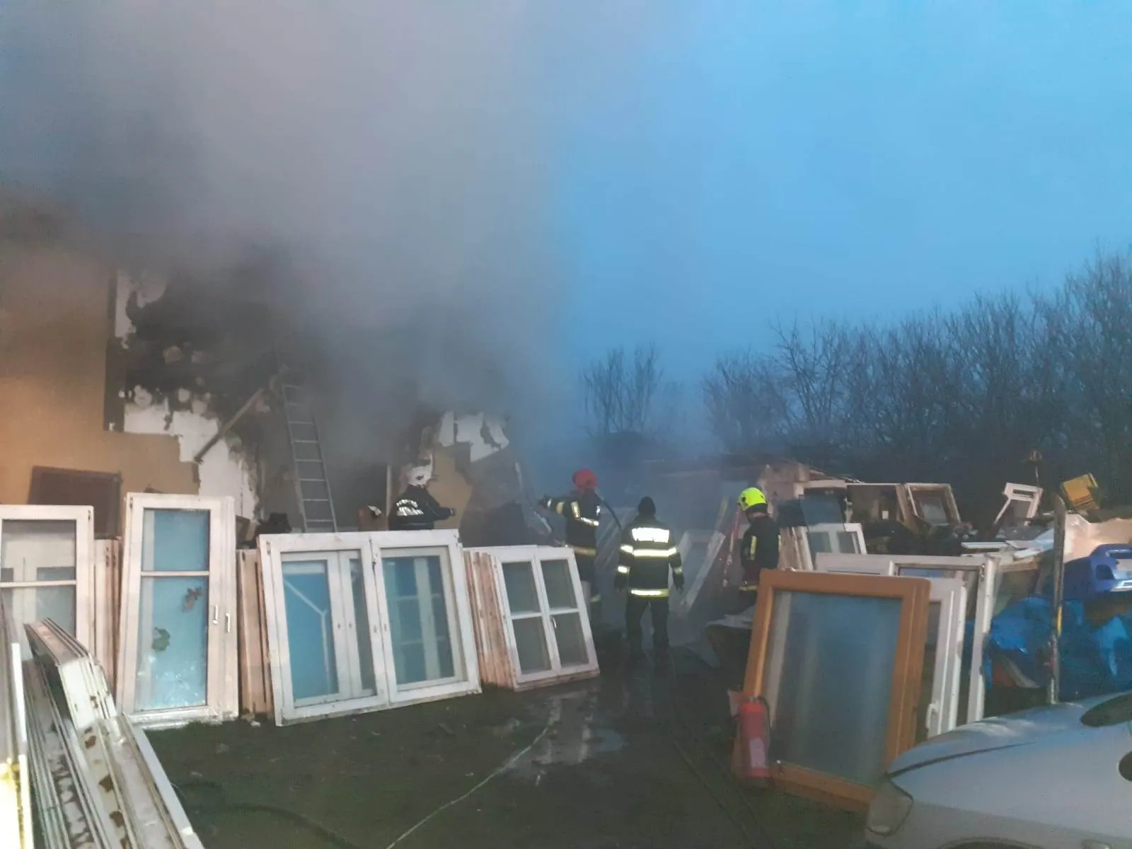 FOTO. Dimineață de foc în Gherla! Pompierii luptă cu un incendiu care a cuprins în totalitate un depozit