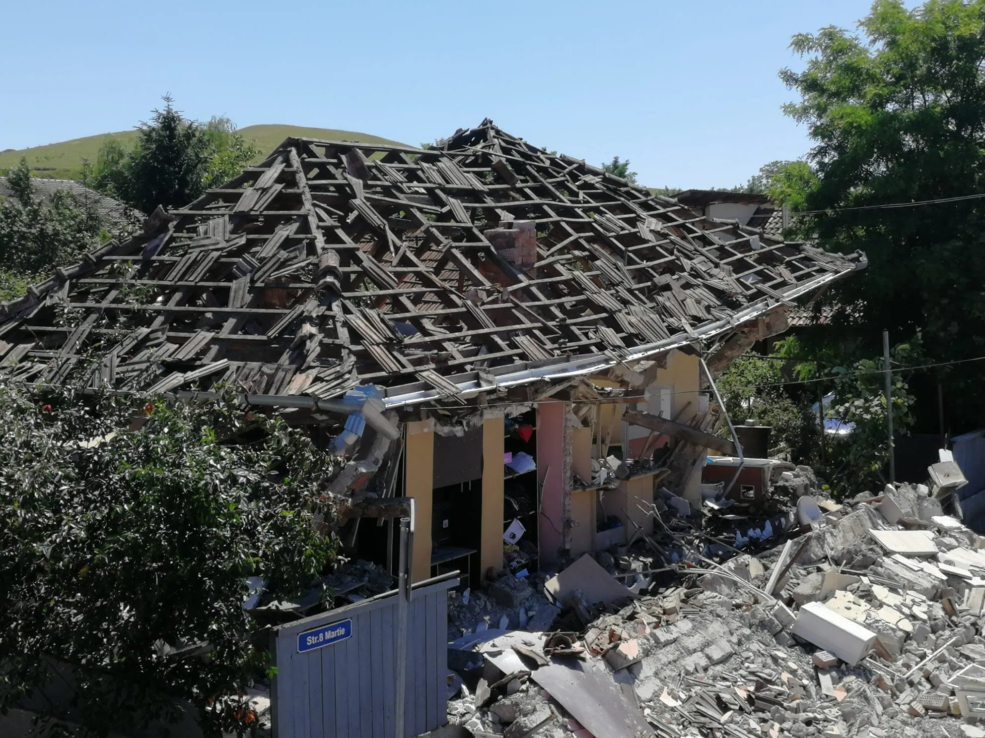În momentul sosirii la fața locului salvatorii au constatat faptul că imobilul fusese distrus în mare parte de explozie, fiind afectată și structura de rezistență a acestuia. Explozia, produsă cel mai probabil în urma unei acumulări de gaze, nu a fost urmată de incendiu.