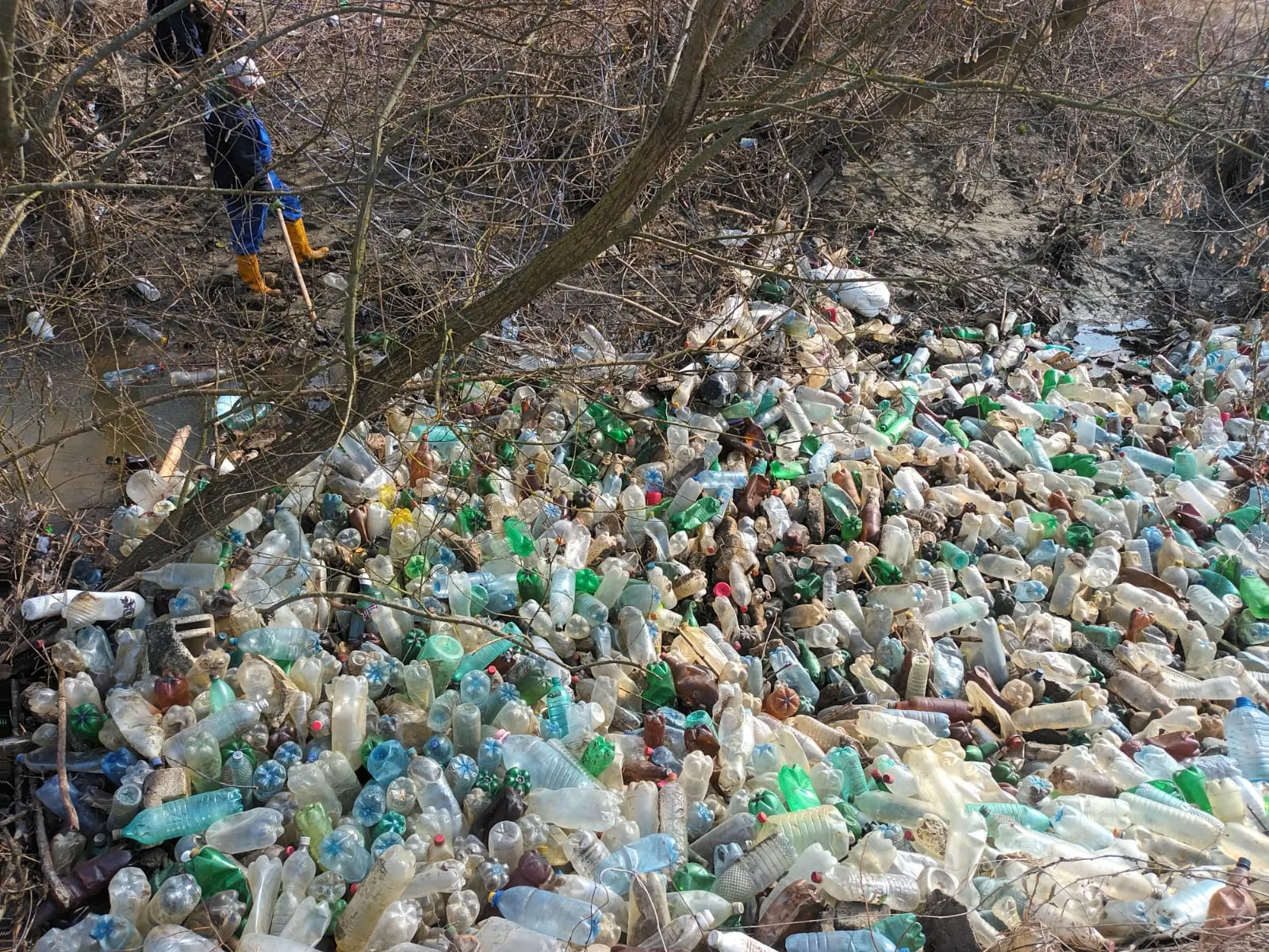 FOTO. Imagini care nu fac cinste Clujului! 50 de saci plini cu PET-uri au colectat angajații Apelor Române pe Valea Fizeșului
