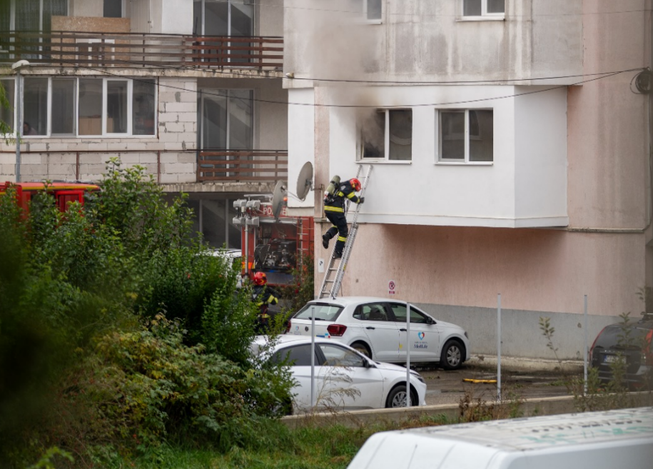 La fața locului au intervenit două autospeciale de stingere și autoscara ISU, iar imaginile trimise de cititor oferă detalii rare din munca pompierilor – de la urcarea pe scară și accesul în apartament, până la stingerea efectivă a incendiului.