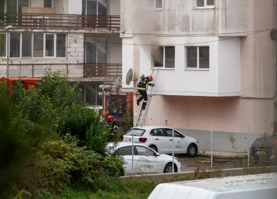 Imagini spectaculoase cu pompierii intervenind la incendiul din Florești, Cluj: acțiune pe balconul unui apartament