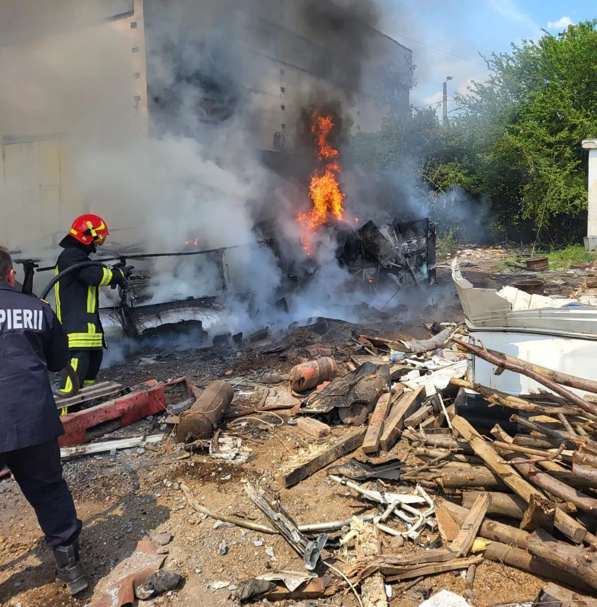 „Pompierii din cadrul Detașamentului Turda în colaborare cu Serviciul Voluntar pentru Situații de Urgență din Primăria Câmpia Turzii au intervenit pentru stingerea flăcărilor care au cuprins un autobuz dezafectat și o hală situată pe strada Laminoriștilor din Câmpia Turzii.