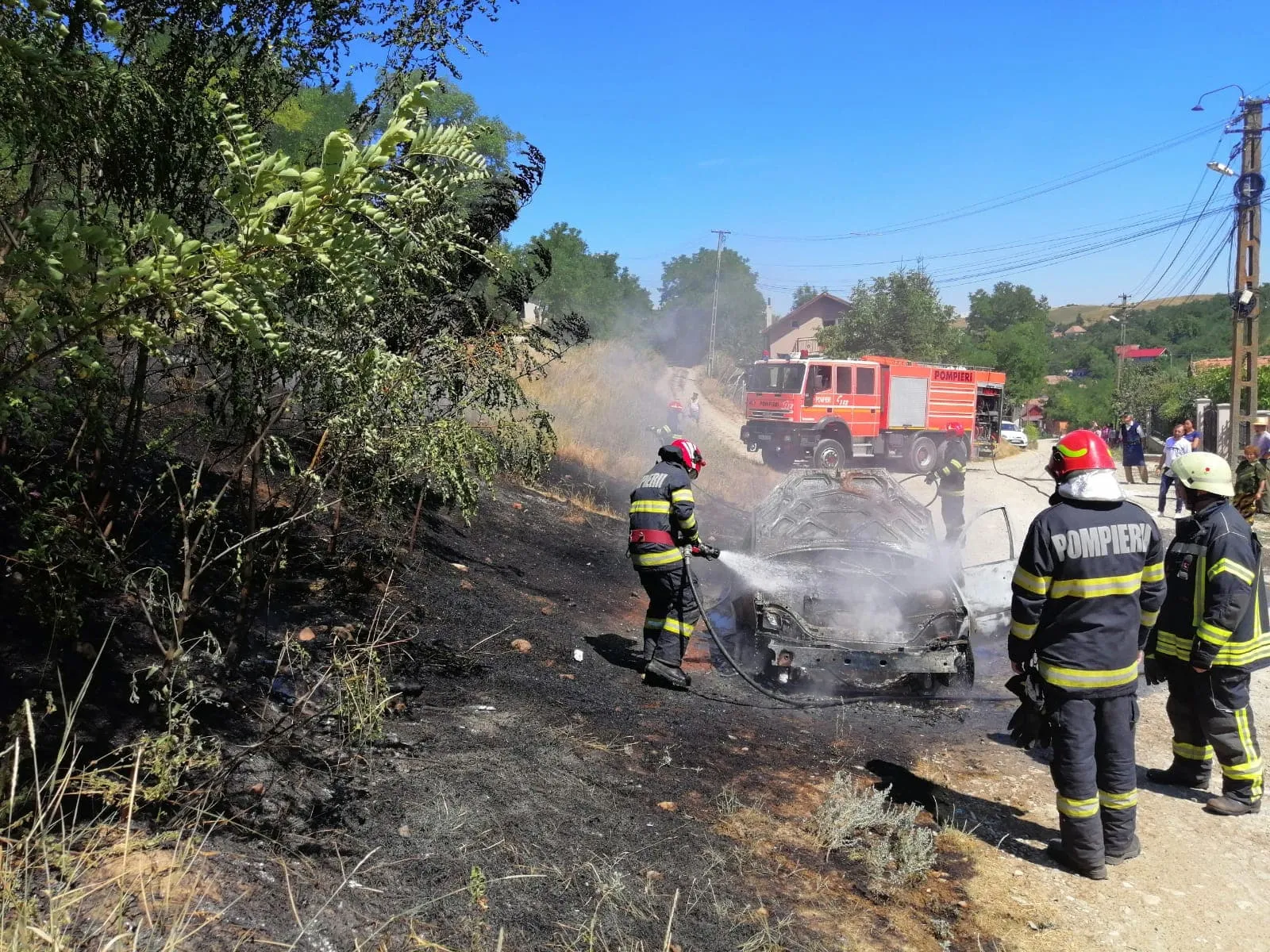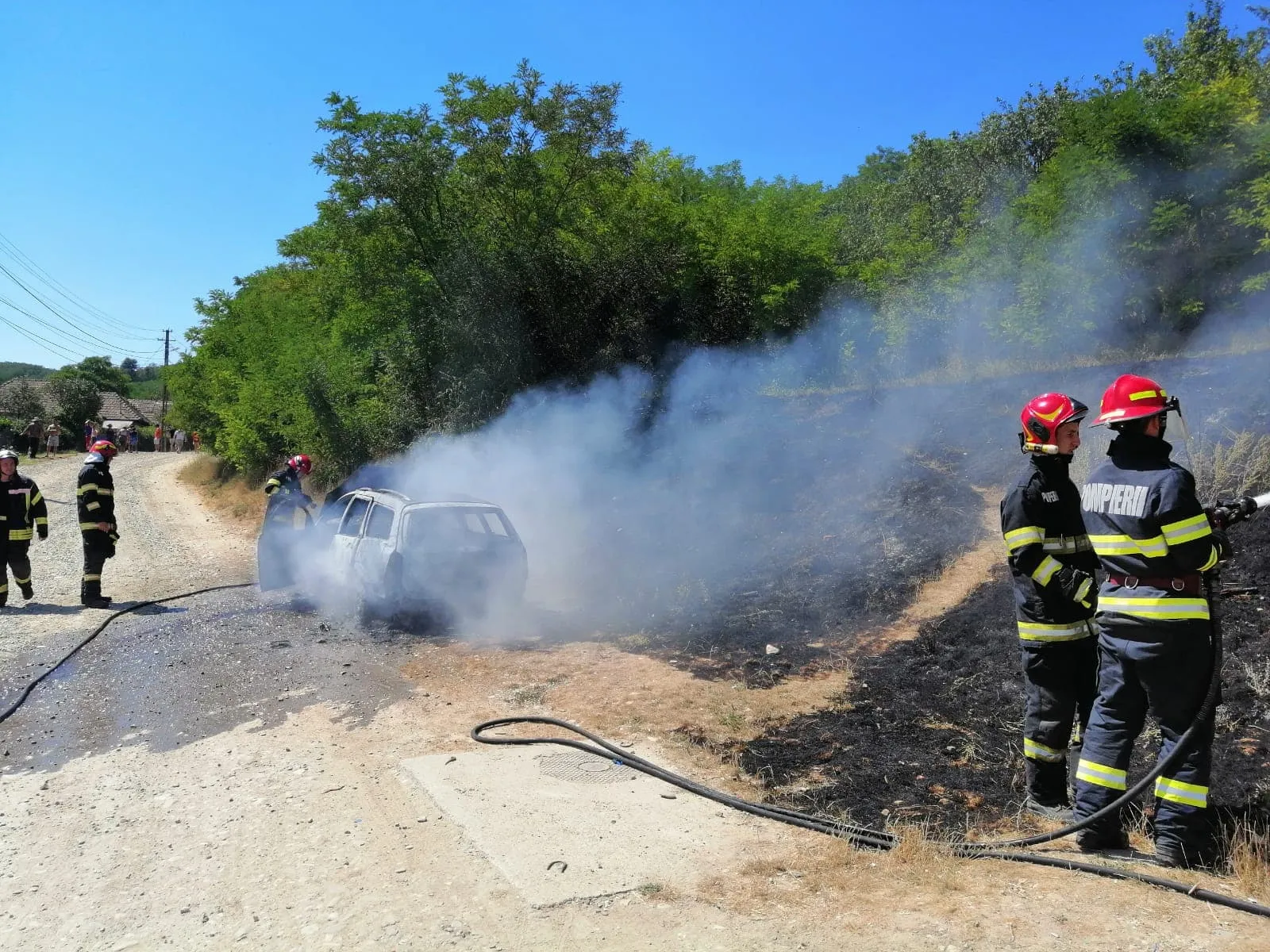 FOTO. O mașină a luat foc în comuna Cojocna! Au intervenit pompierii clujeni