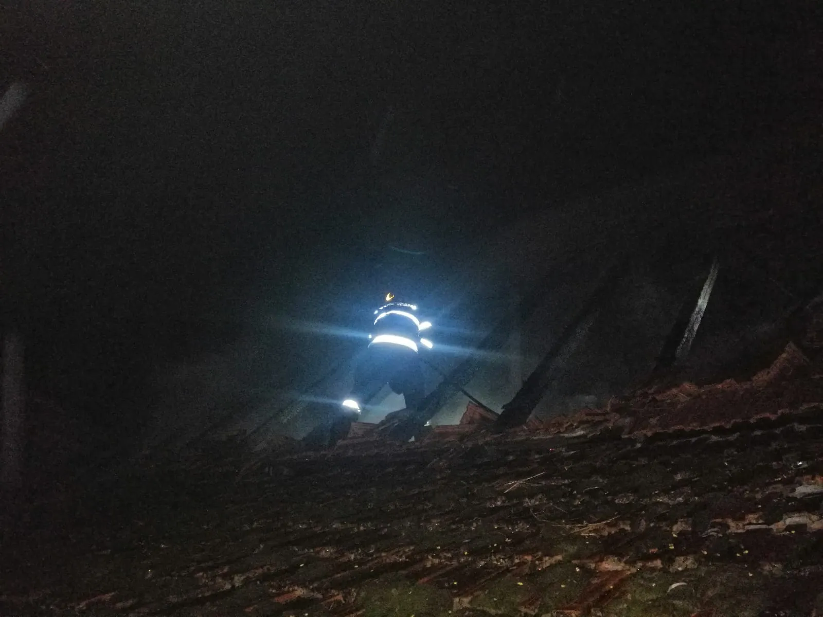 Când au ajuns la fața locului, acoperișul întregii structuri de 70 mp și o stivă de lemne de aproximativ 50 mp erau cuprinse de flăcări.
